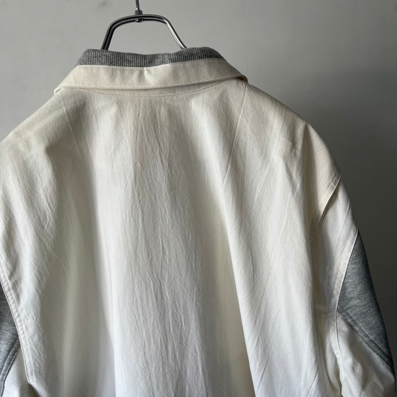 大判なポケットが映えるホワイトカラーのボディにラフな杢グレーのスウェット生地での切り替え