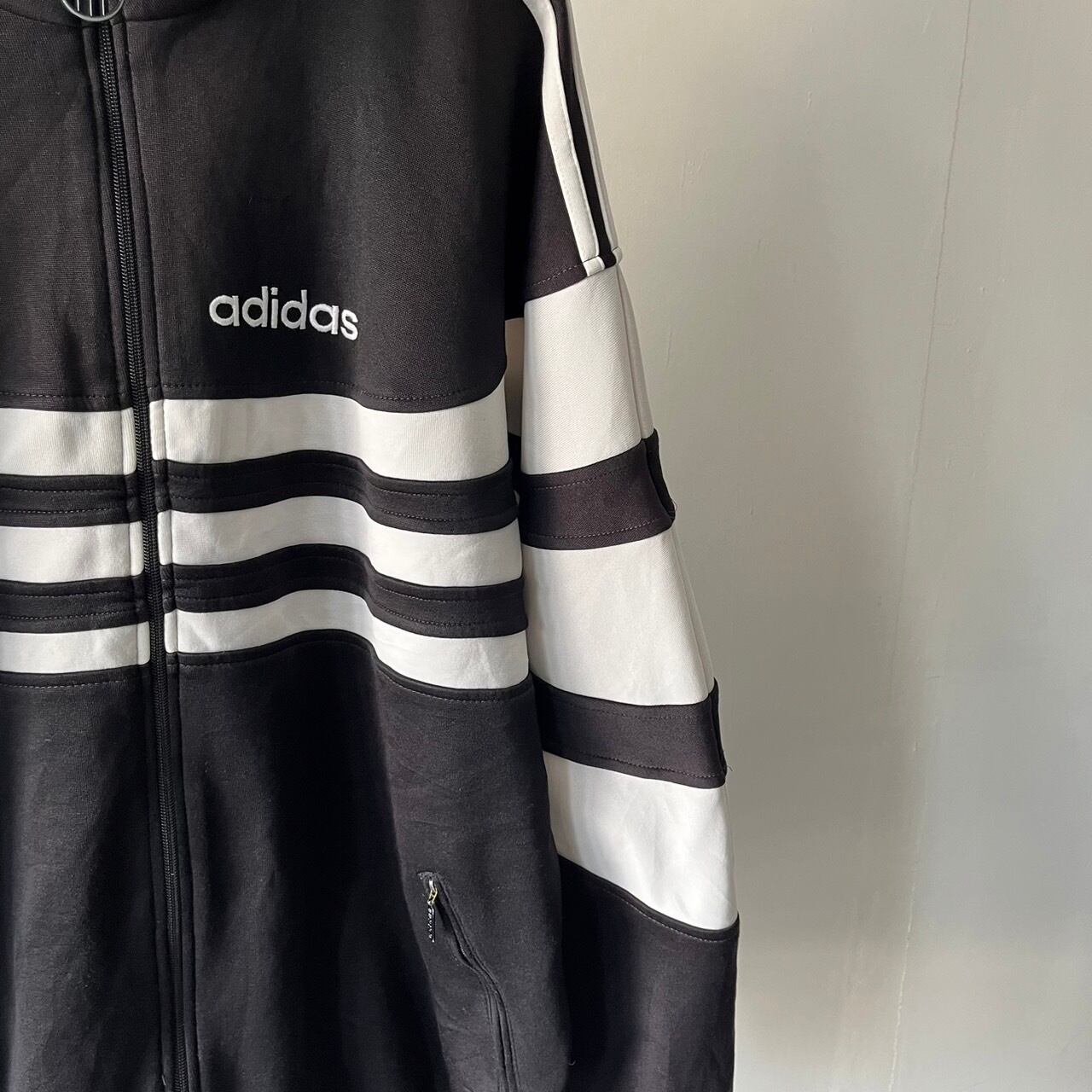 袖から袖までダイナミックに広がるラインデザインが映えるadidasのトラックジャケット