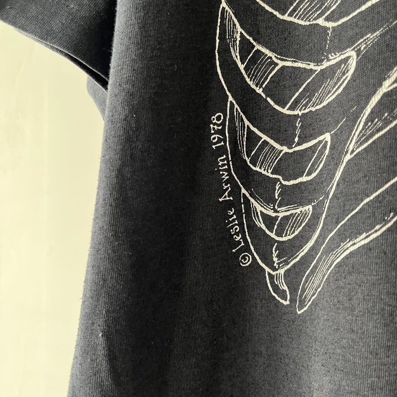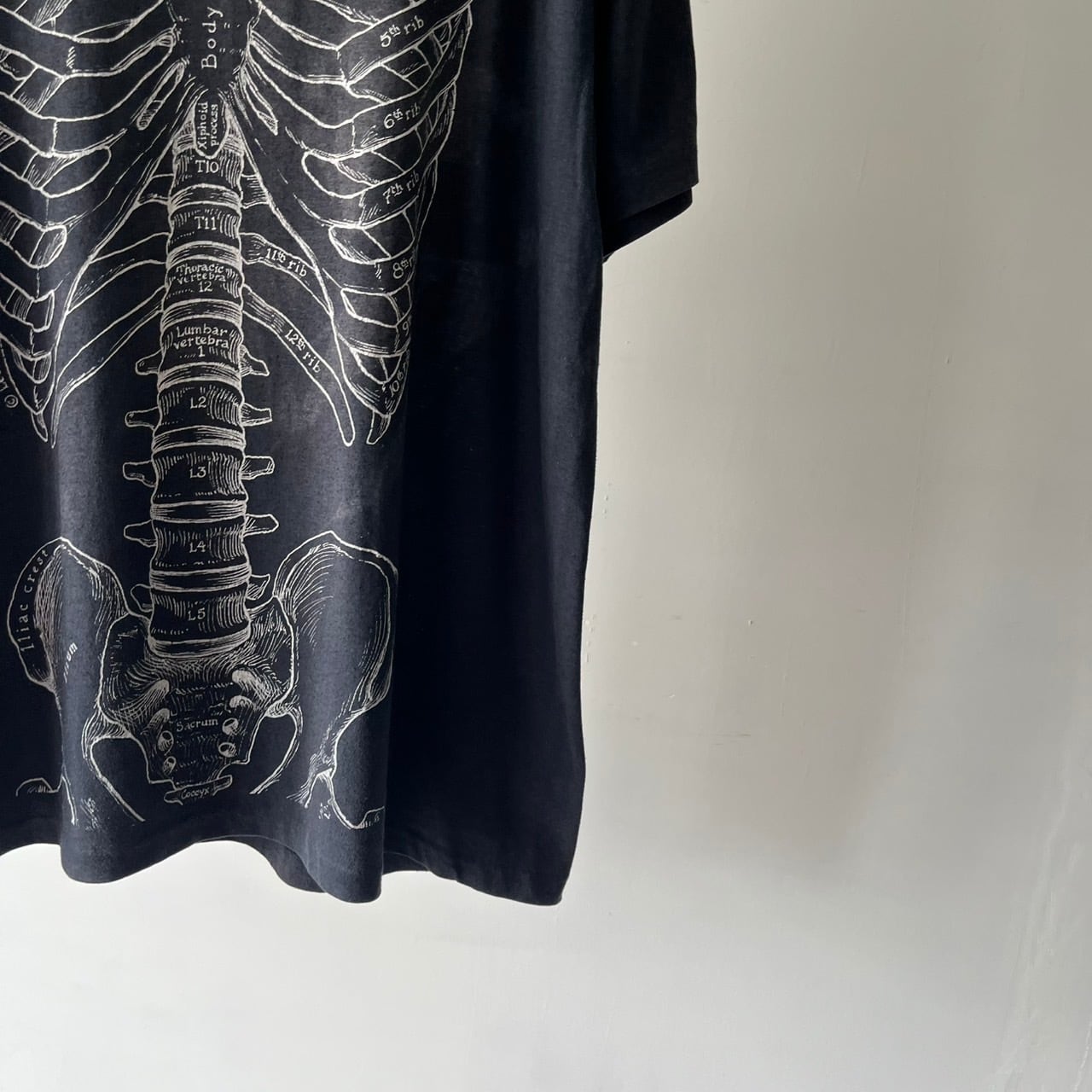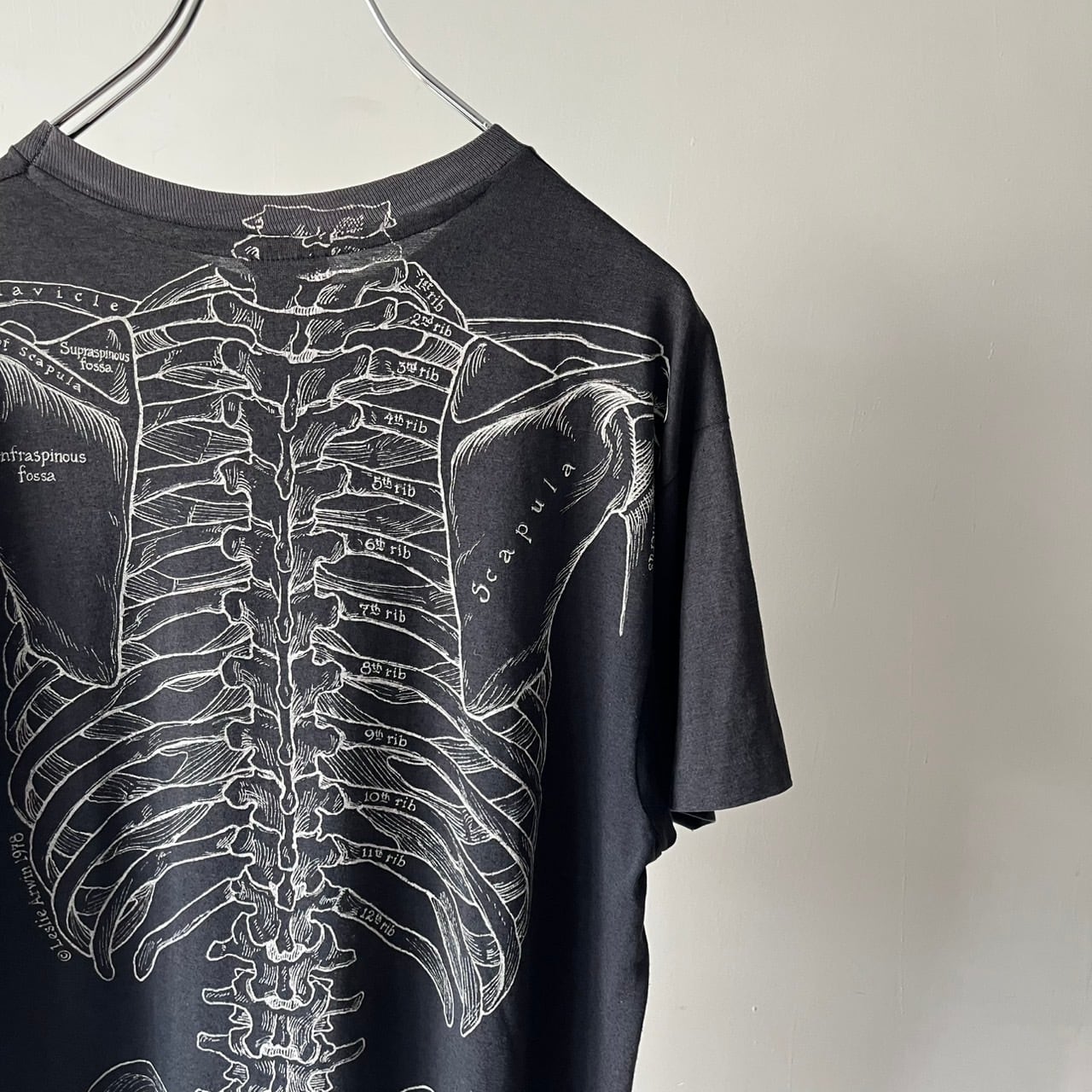 メディカルイラストレーターのレスリーアーウィンが描いた人体骨格が両面にプリントされたTシャツ