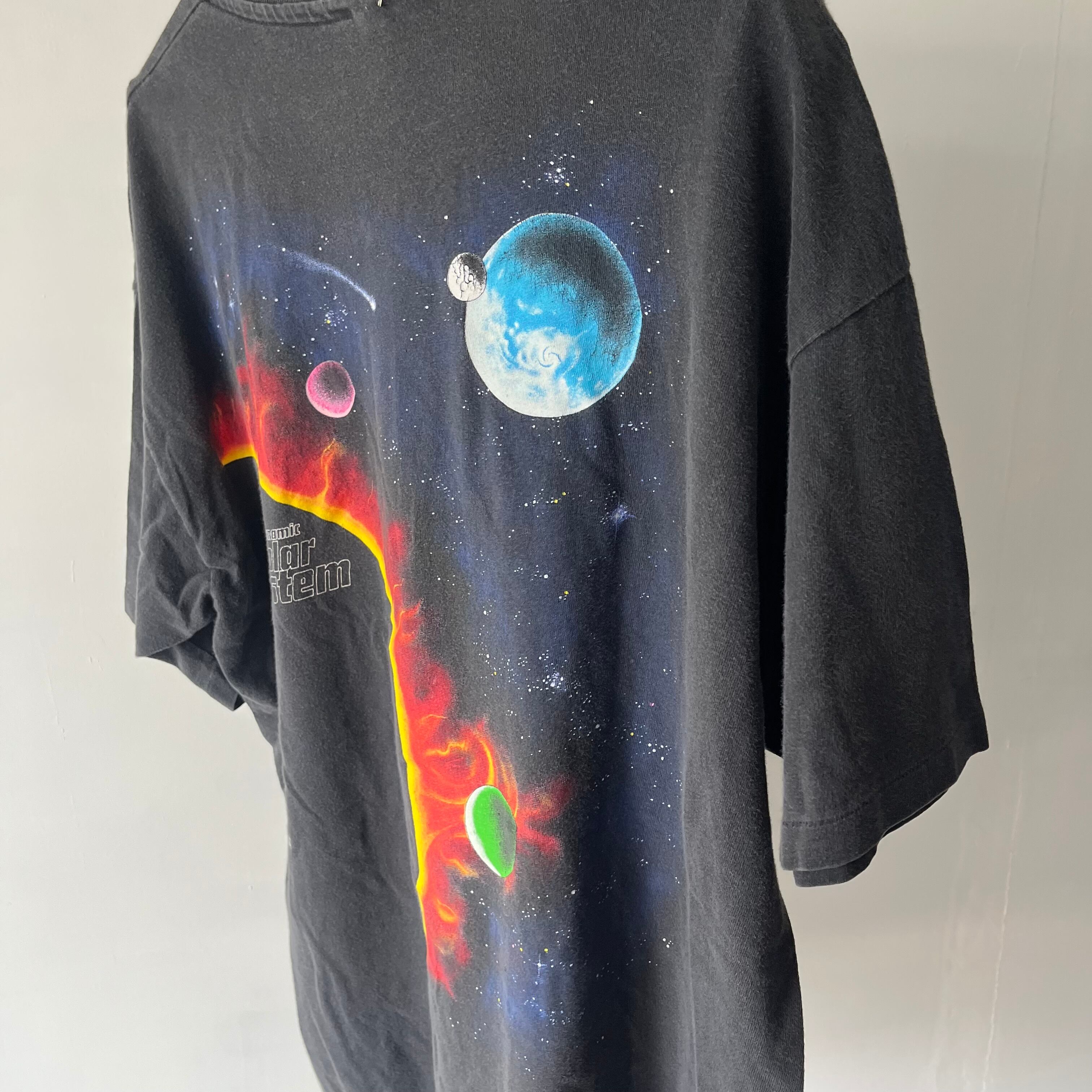 両面に太陽系の惑星が大判でシルクスクリーンプリントされた大胆なグラフィック
