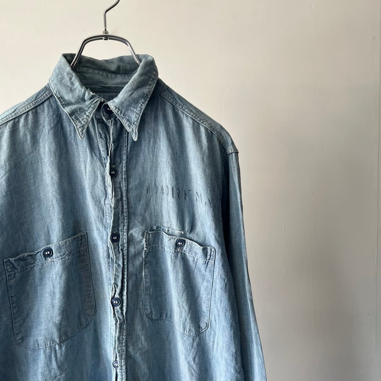 海上に馴染むようにボディと同色のボタンが採用されたアメリカ海軍のシャンブレーシャツ