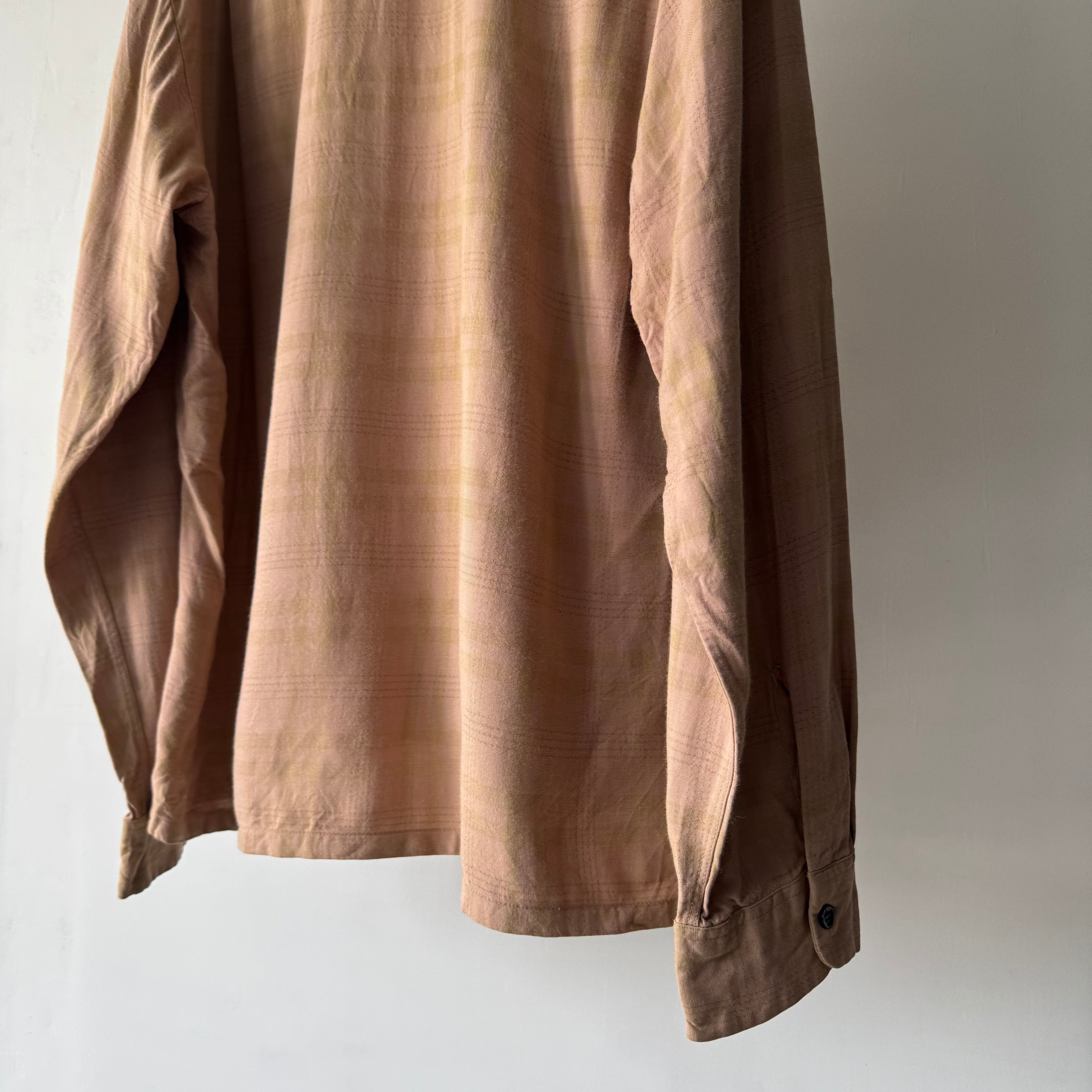 開襟にフラポケ仕様、素材表記はありませんがレーヨンで間違いないかと