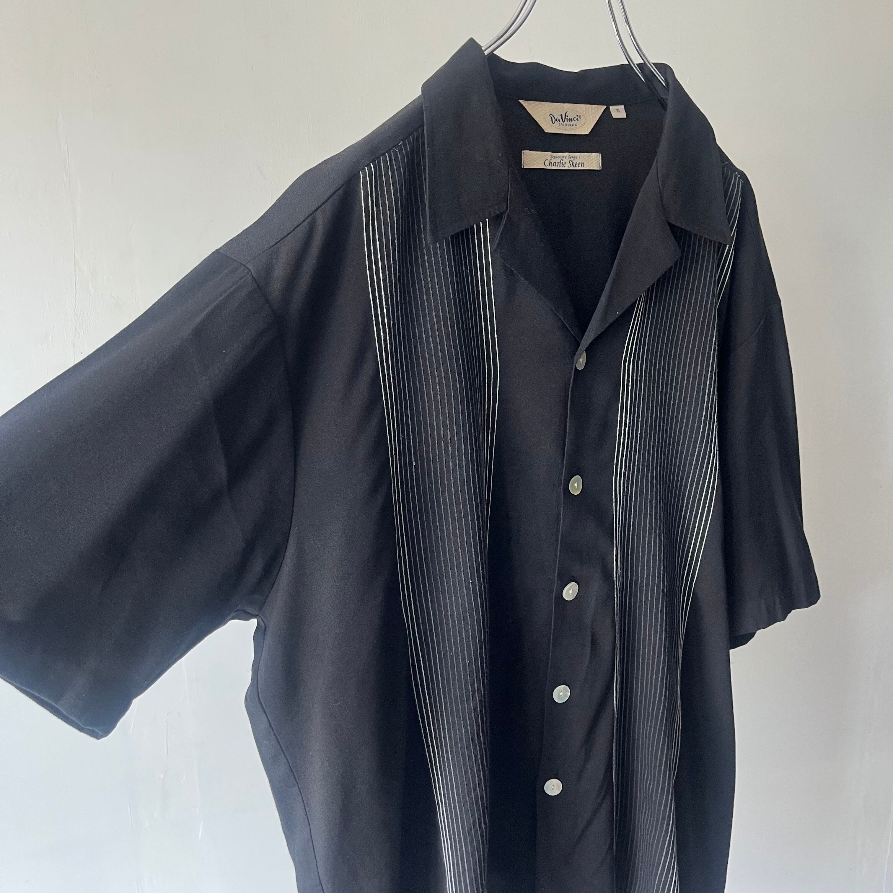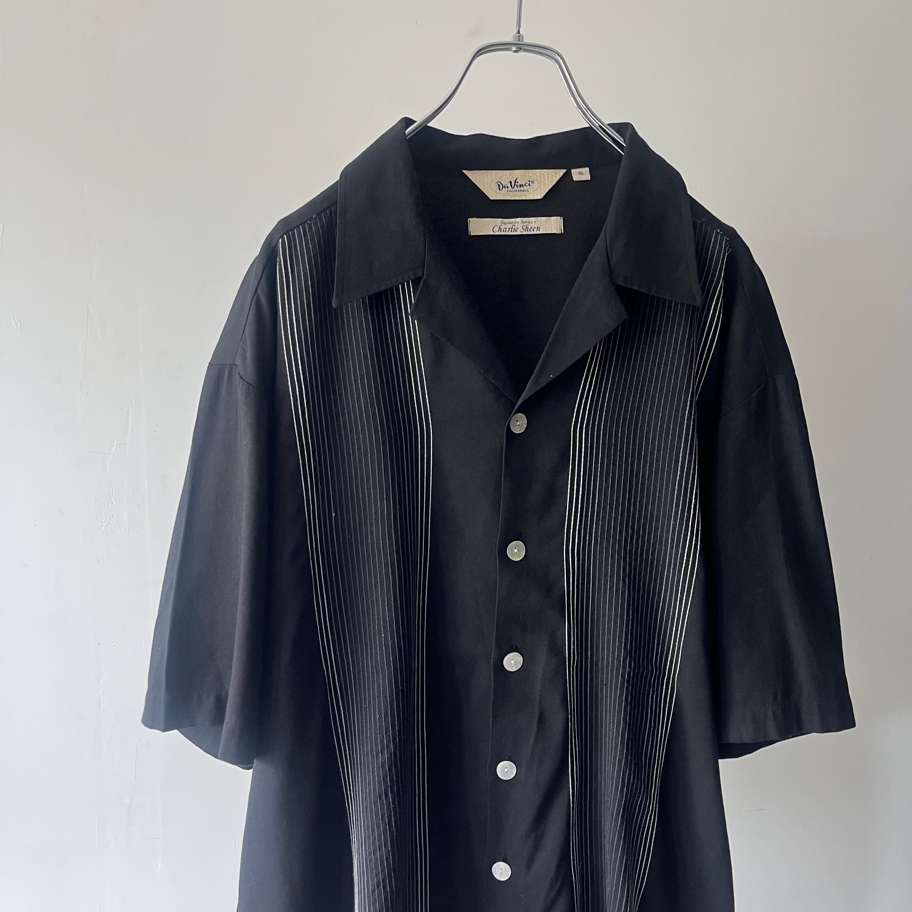 モノトーンのお洒落な刺繍ラインデザインオープンカラーシャツ