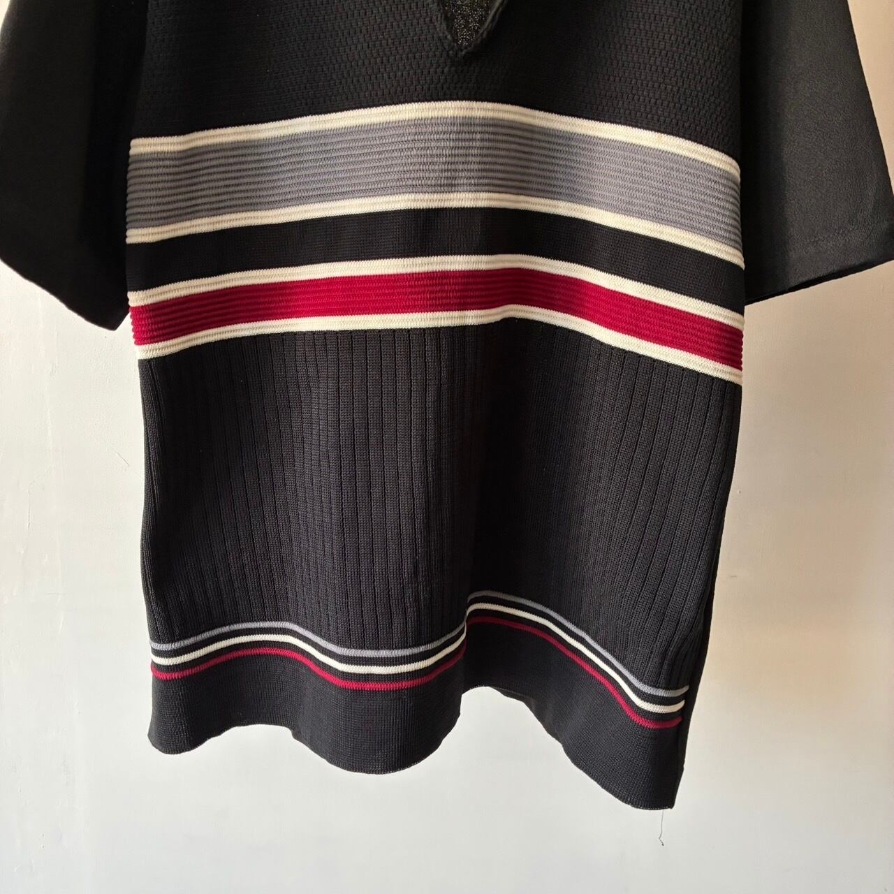 フロントはポリエステル生地で、さまざまなリブ編みをミックス
