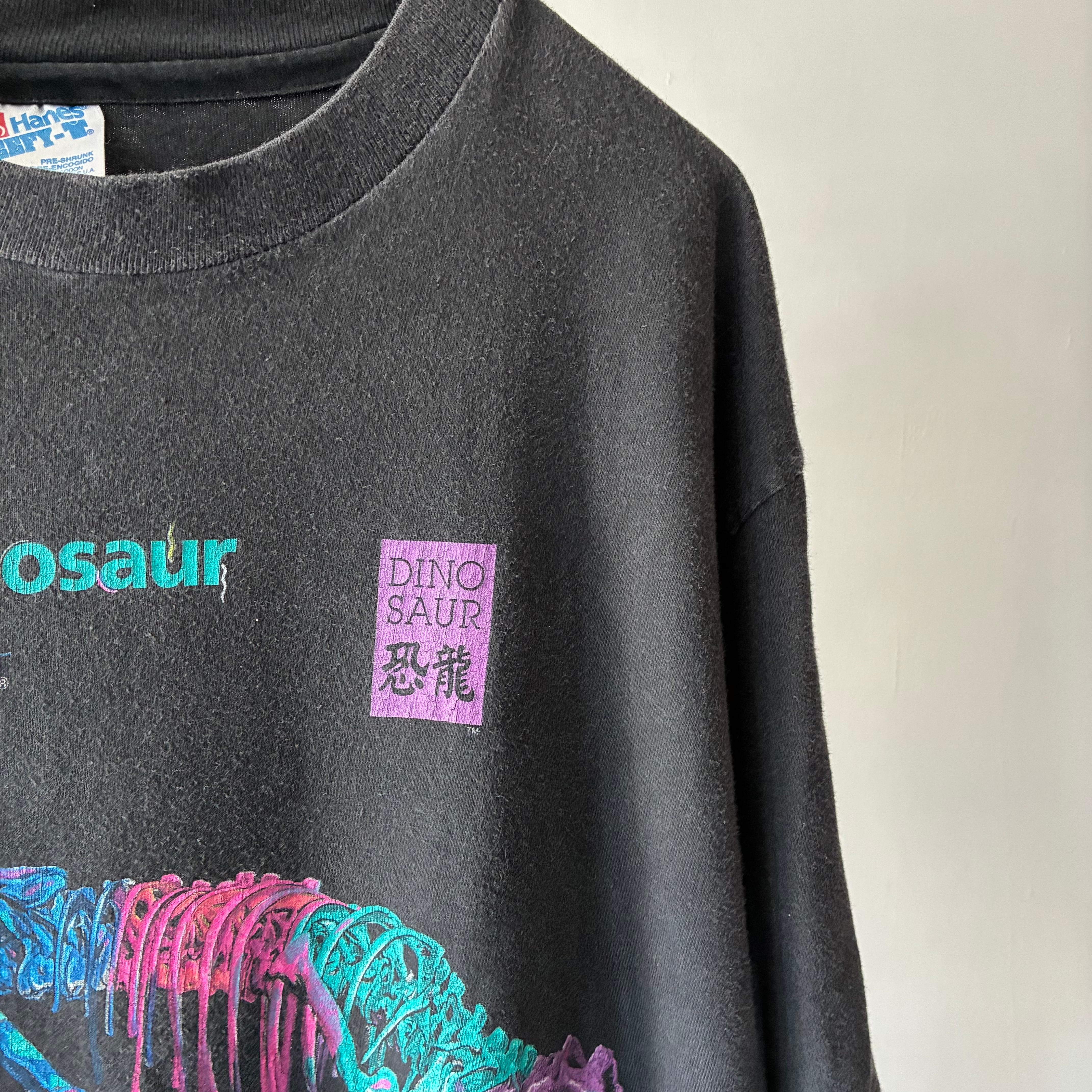 右胸には「DINOSAUR 恐竜展」と漢字入りのスタンプ風プリントもあり、博物館やイベントの限定アイテムを思わせるデザイン