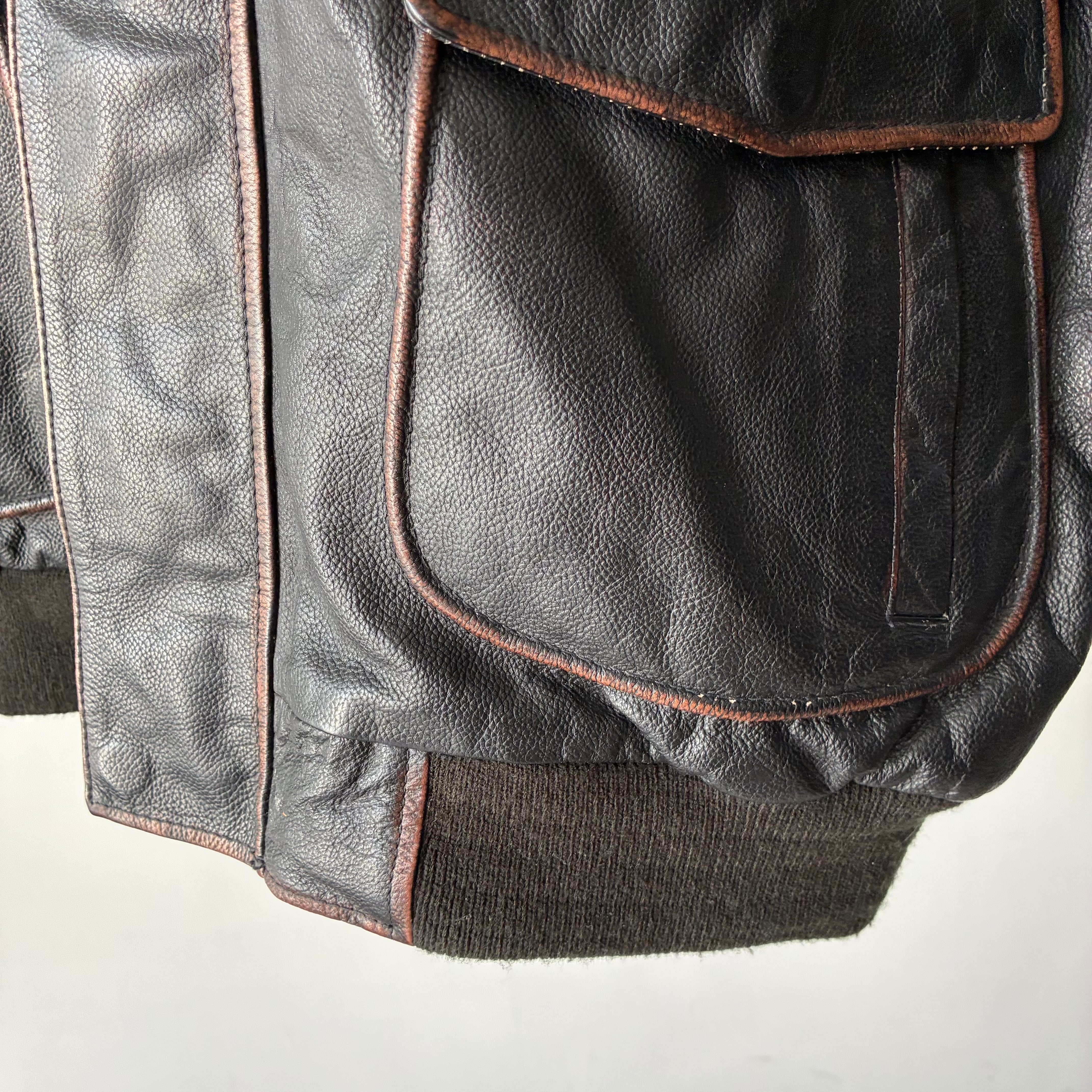 A-2特有の大きめのフラップポケット、リブ仕様の袖と裾、広めの襟など人気の高いのミリタリーデザイン