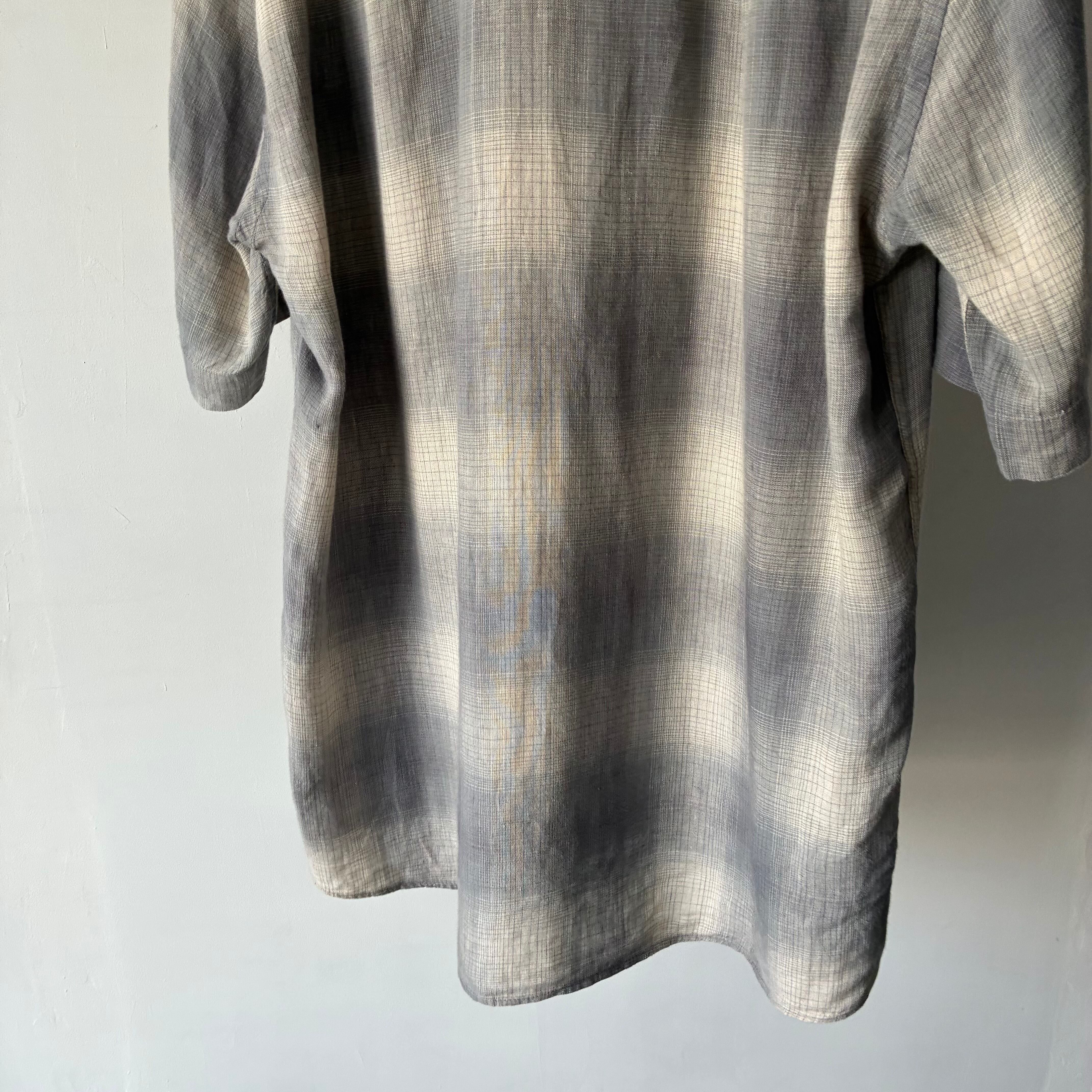 程よくゆとりのあるシルエットに、淡いグレー〜チャコール系の絶妙なグラデーションチェック柄が目を惹く一着