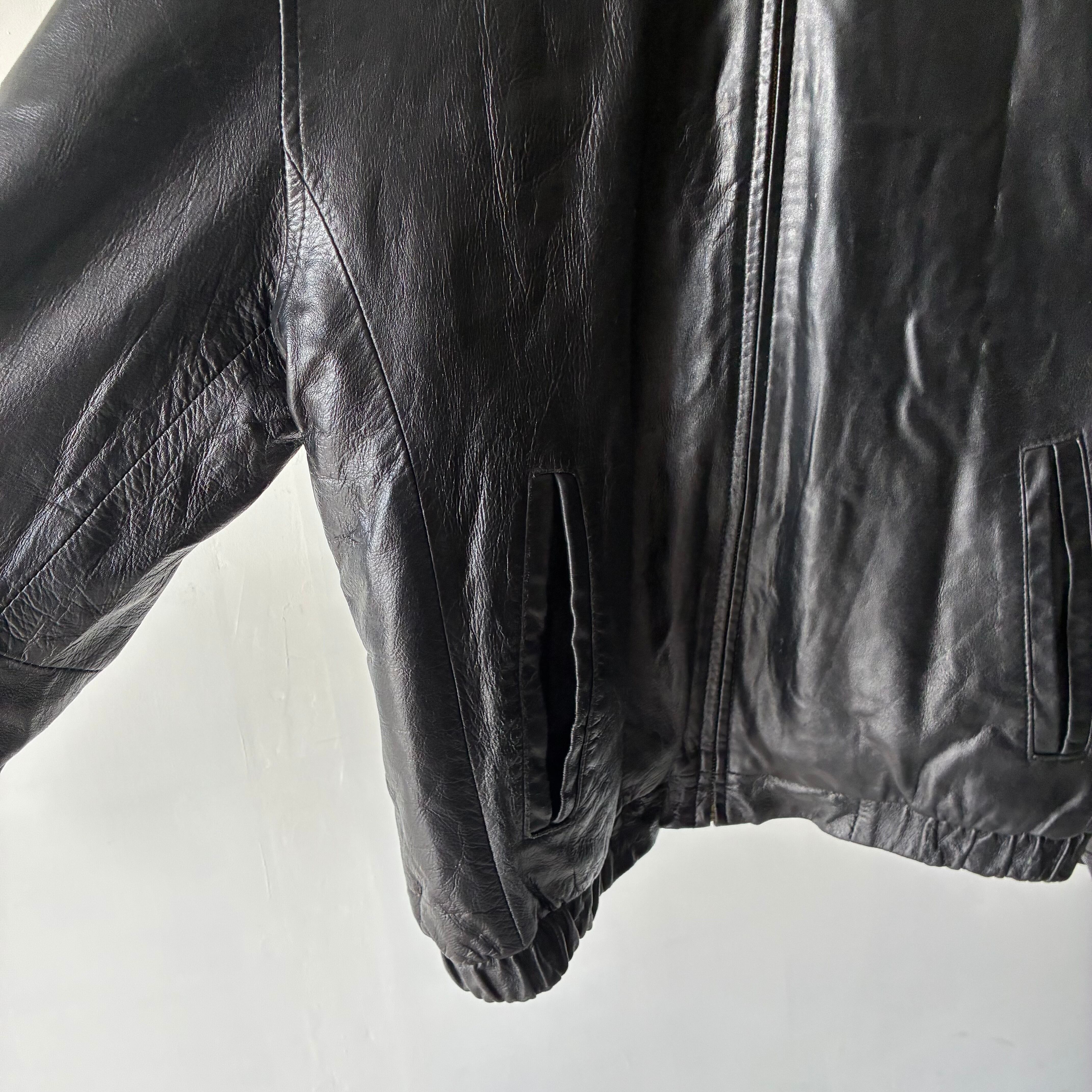 シンプルで洗練された佇まいが印象的なジップアップブルゾンタイプの本革レザージャケット