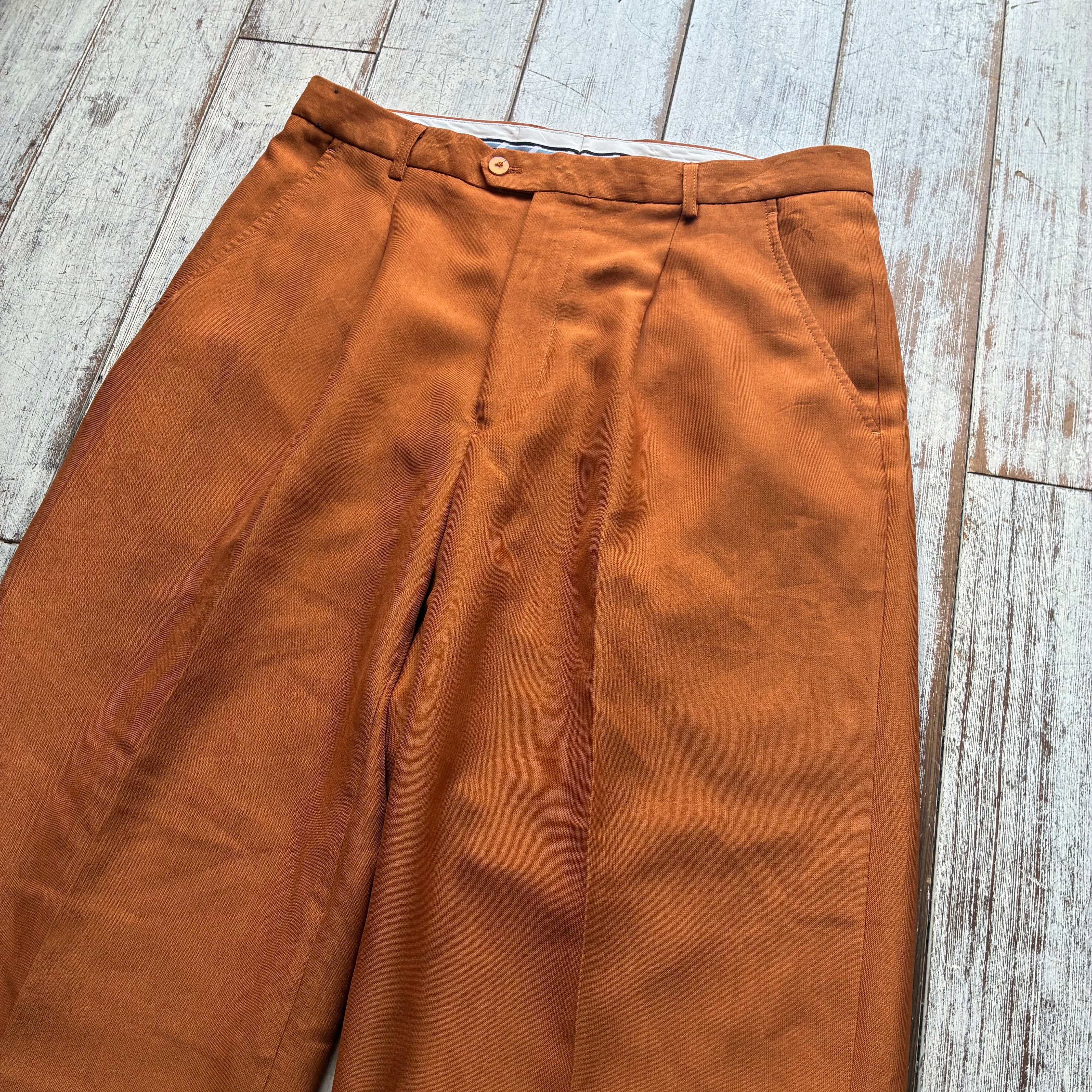 温もりあるテラコッタカラーが魅力的なMICHAEL IRVIN Playmakerのスラックスパンツ