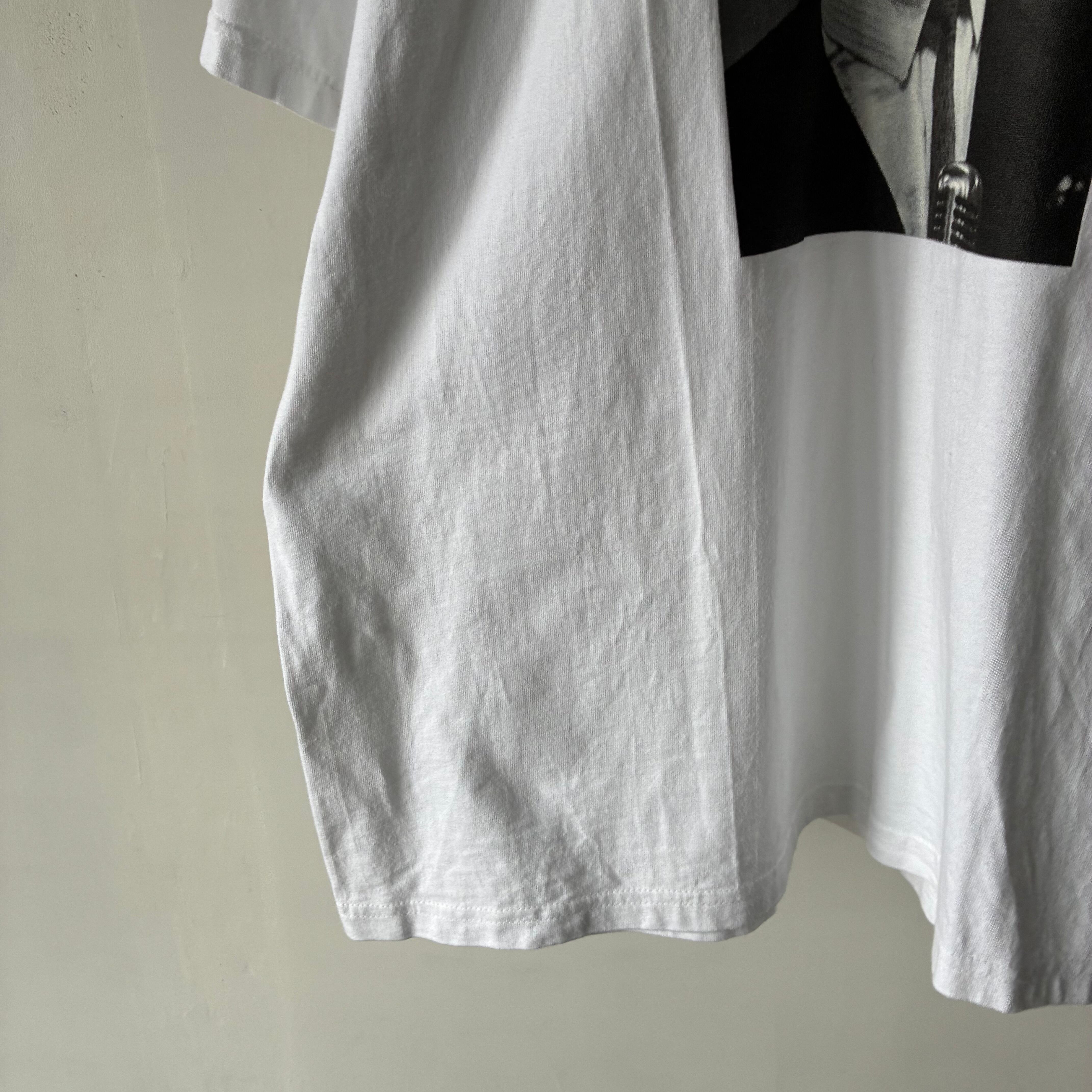 フロントには1960年代のアメリカ公民権運動を牽引した活動家Malcolm Xの威厳あるモノクロ写真が大胆にプリントされ、メッセージ性とビジュアルインパクトの強さが融合した一着