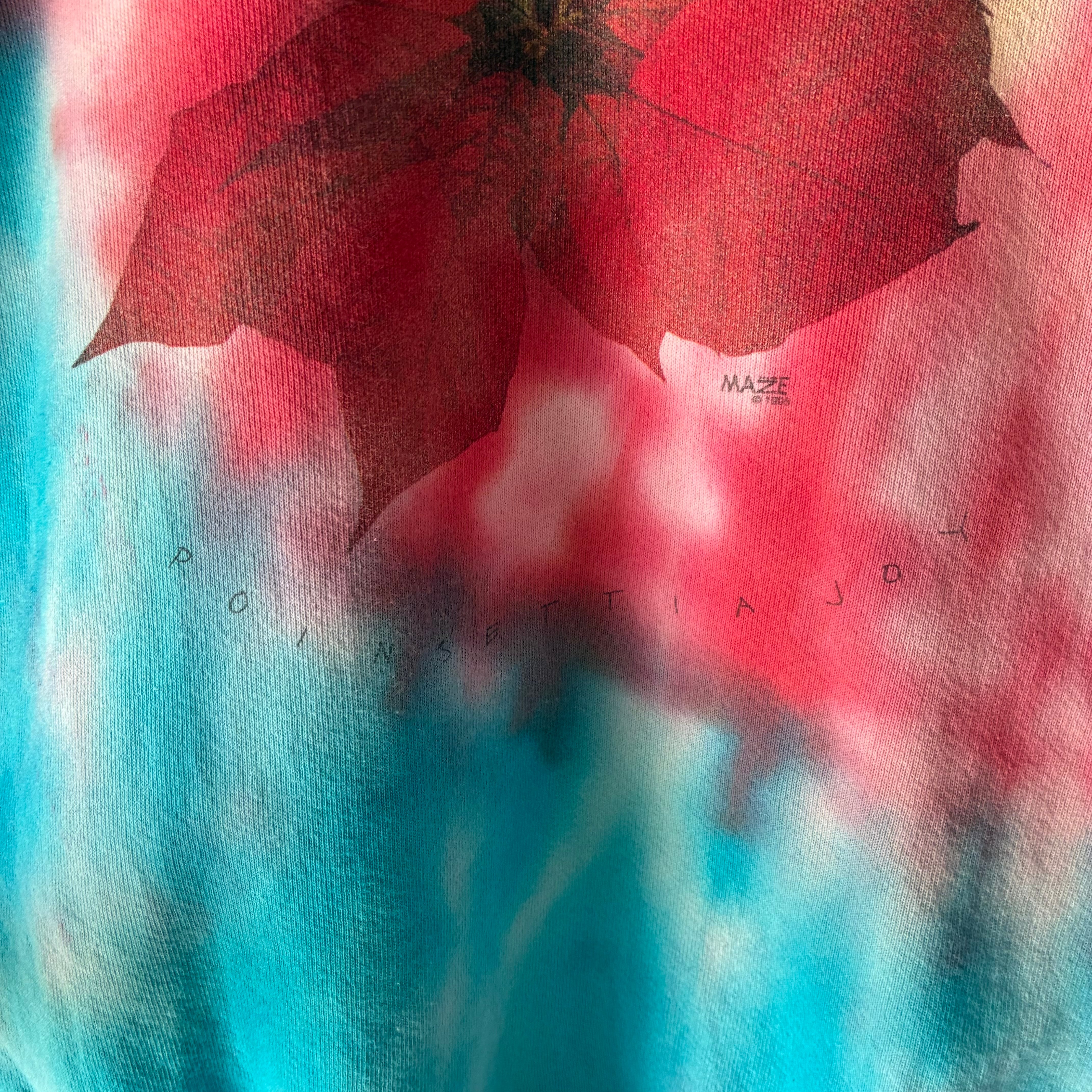 胸元には深紅のポインセチアがプリントされており、POINSETTIA JOYの文字