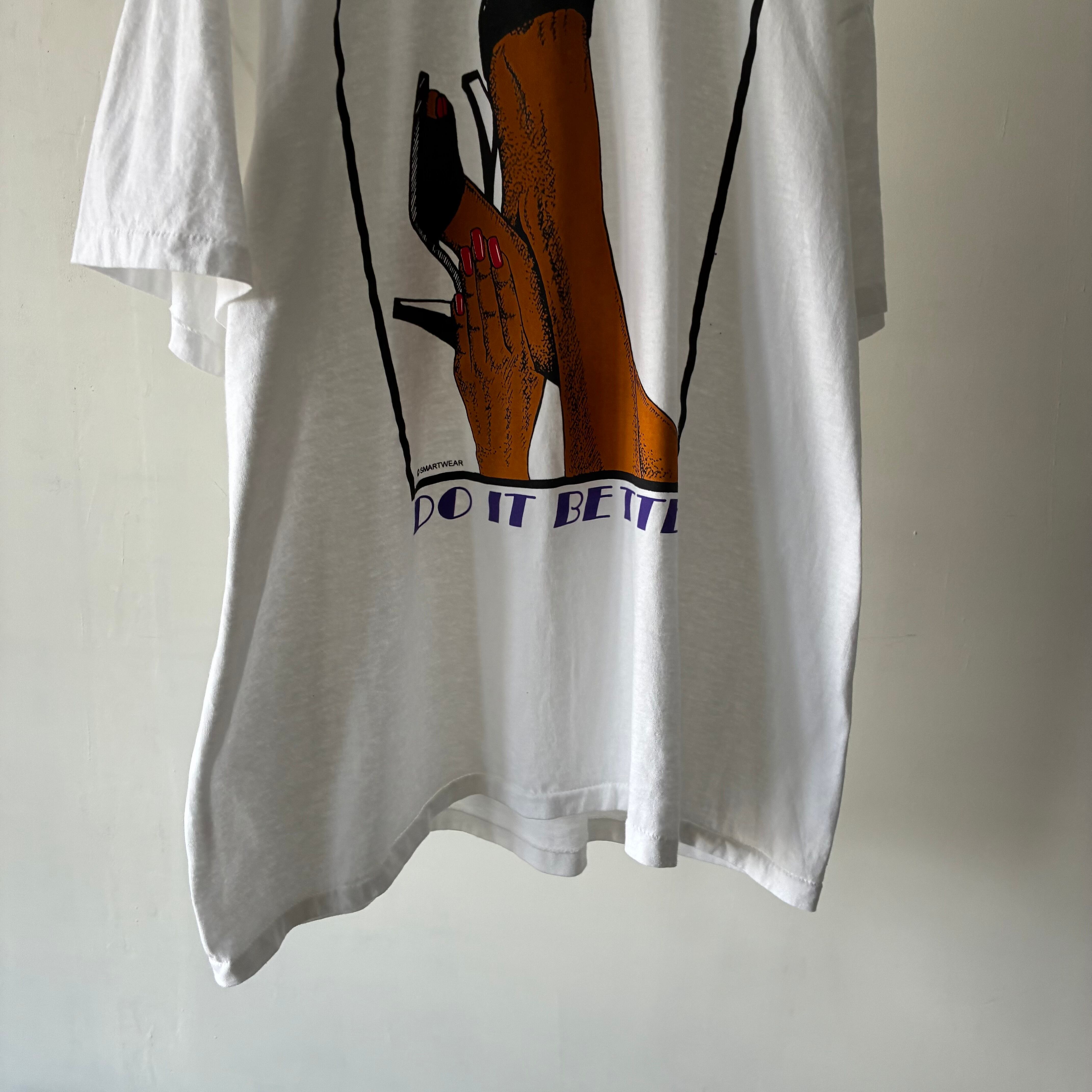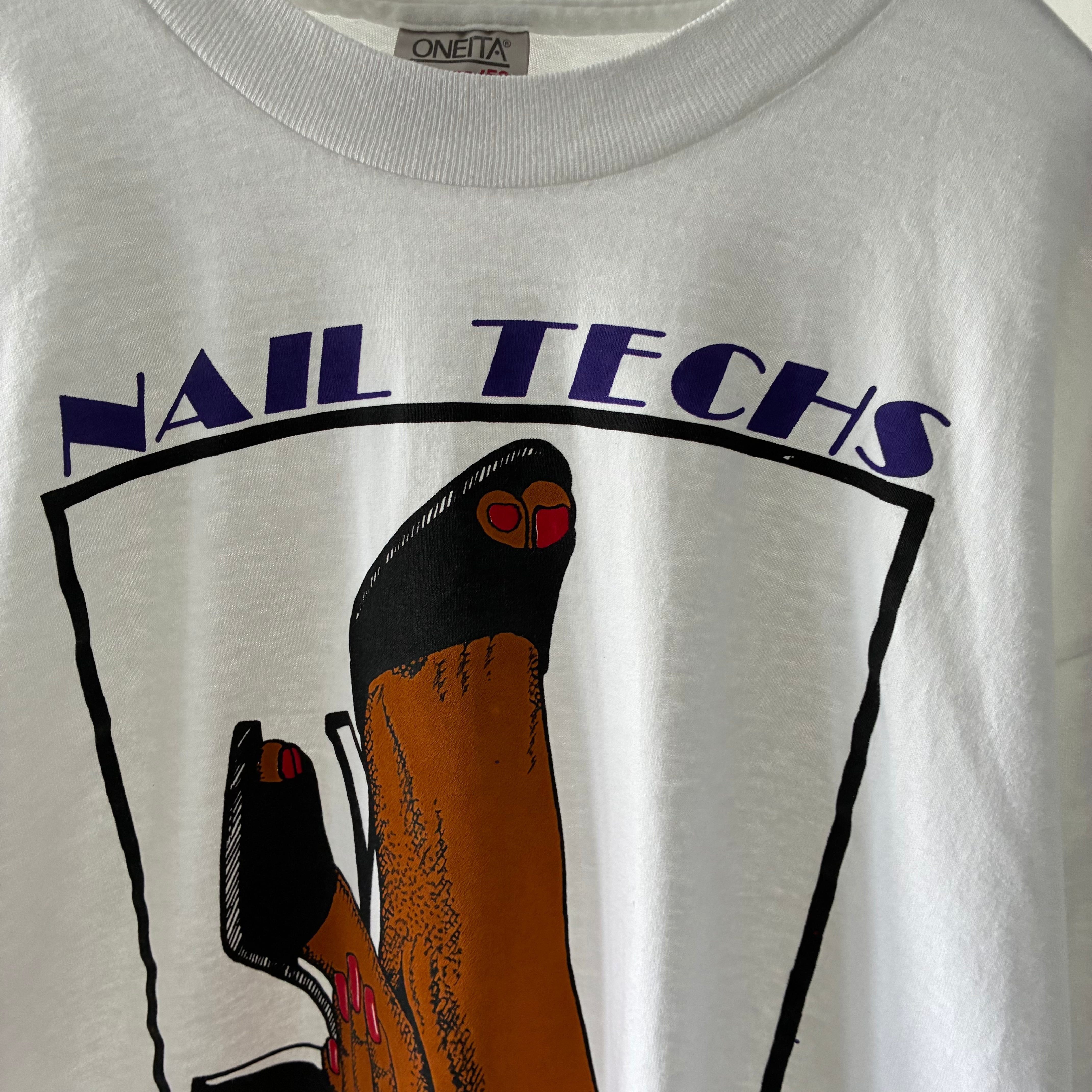 “NAIL TECHS DO IT BETTER” のキャッチーなメッセージと、ネイルとヒールをモチーフにしたアートワークが目を引く一枚