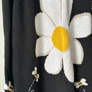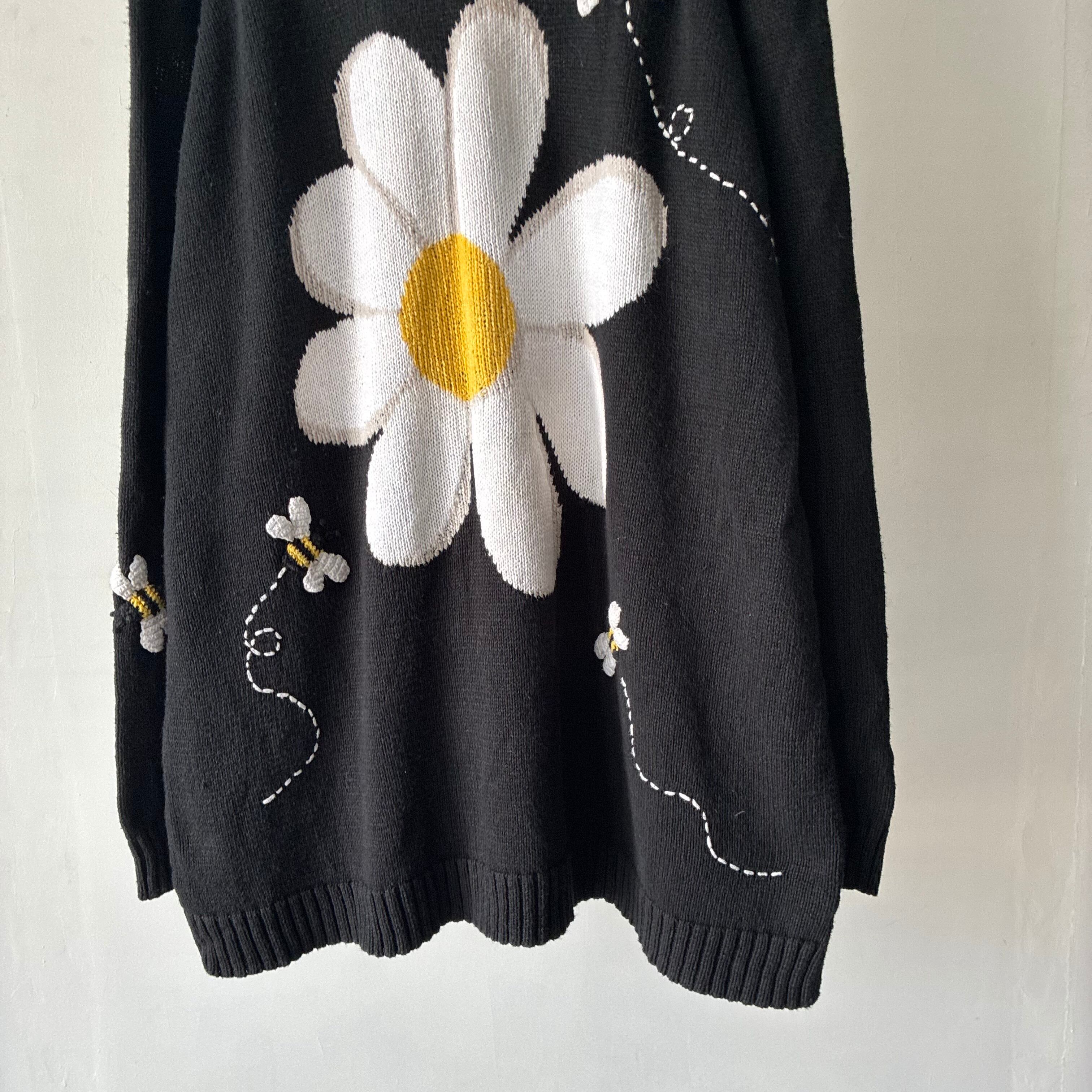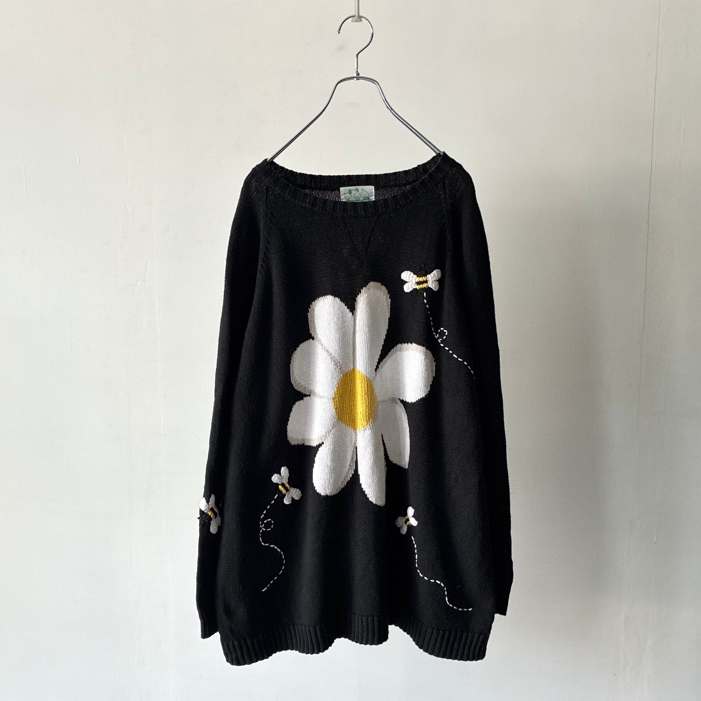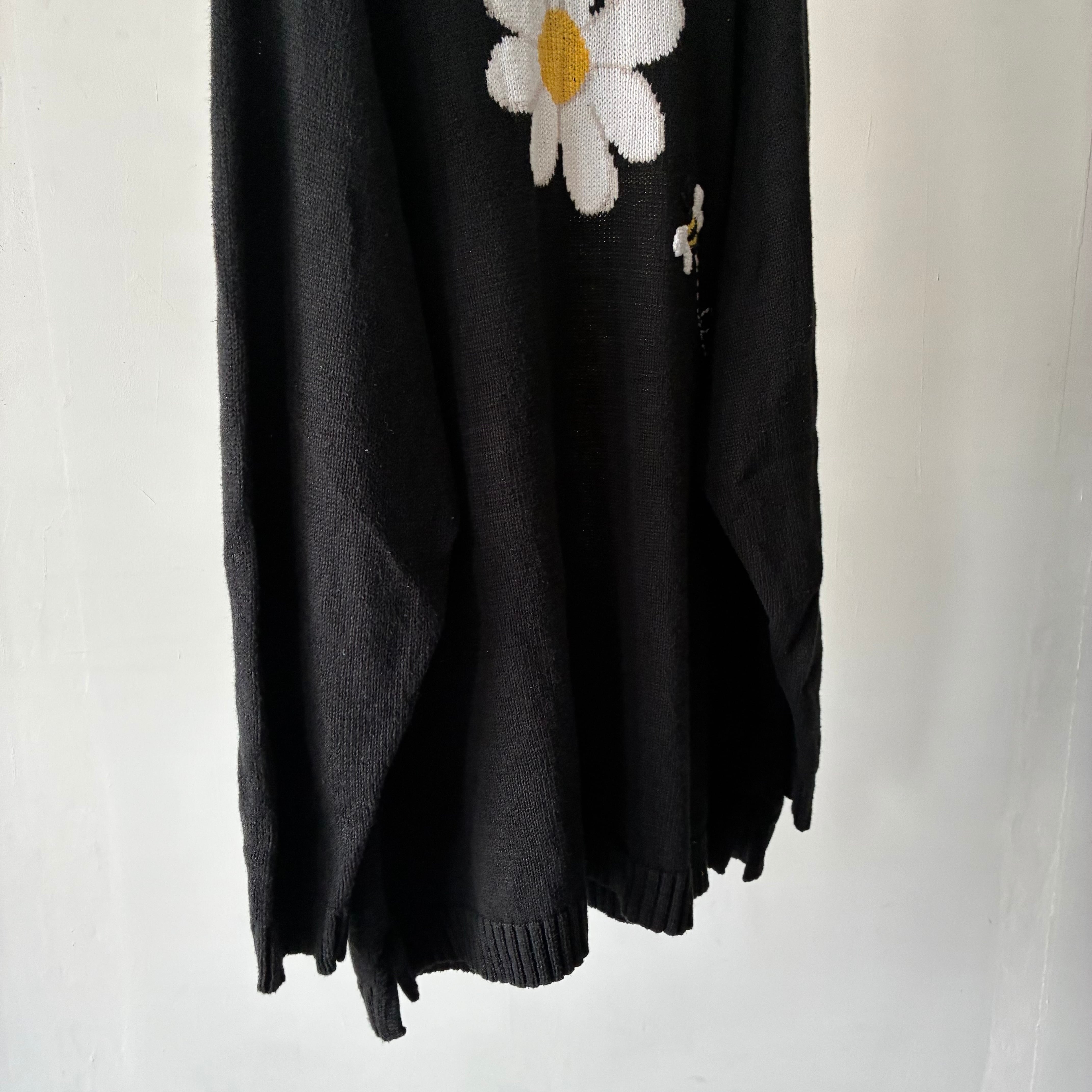 黒地に大きく咲いたデイジーの花がインパクト抜群なThe Quacker Factoryデザインニット