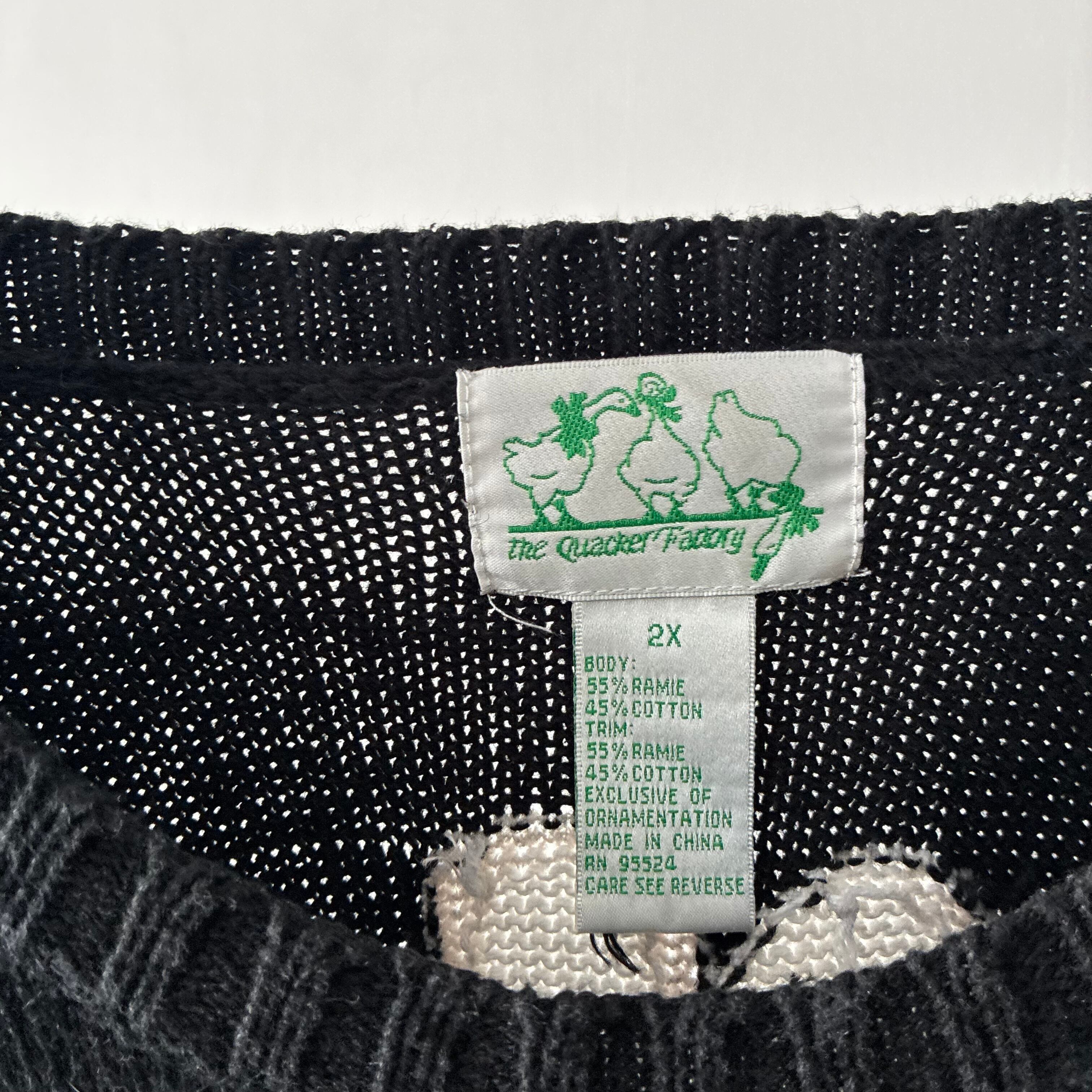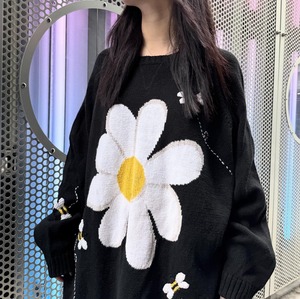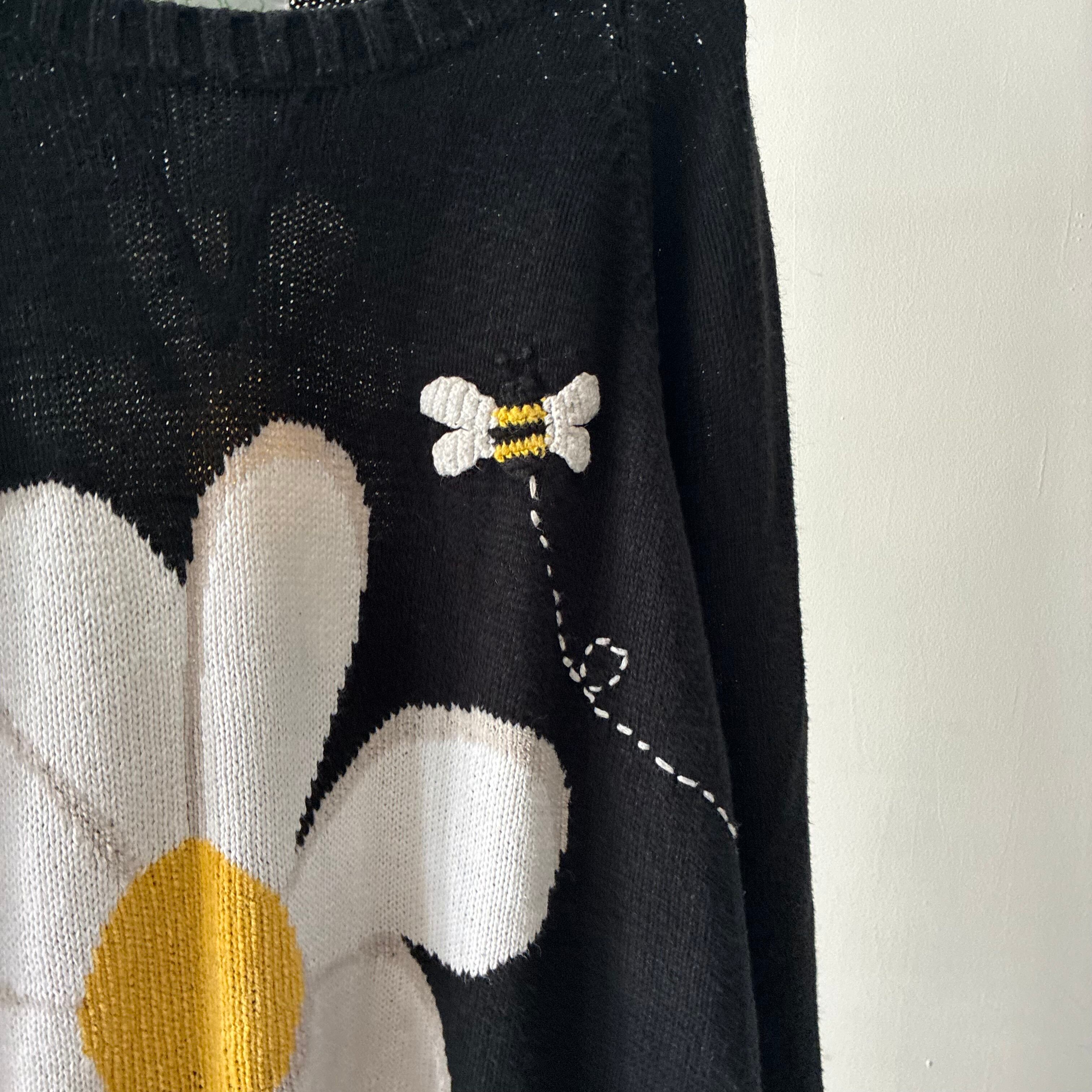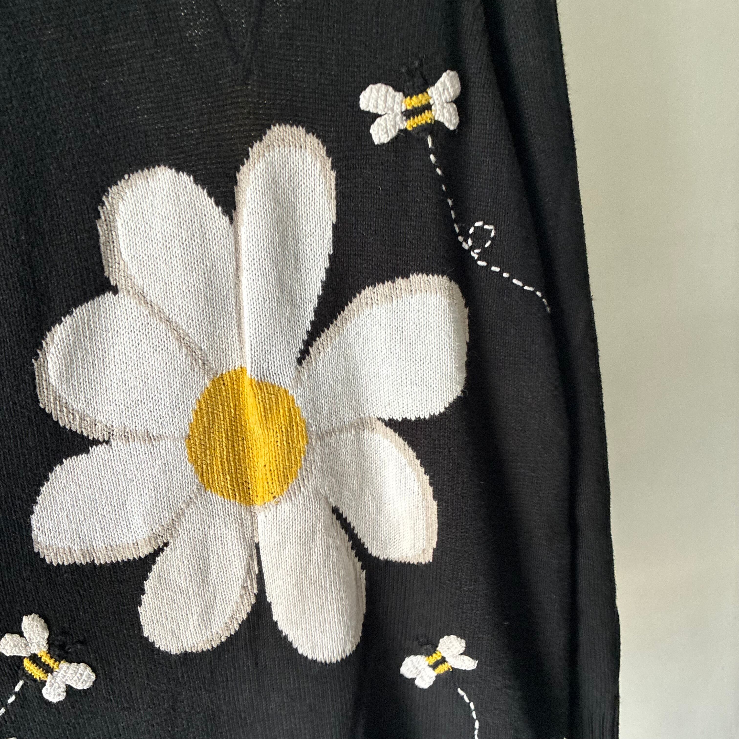 黒地に大きく咲いたデイジーの花がインパクト抜群なThe Quacker Factoryデザインニット
