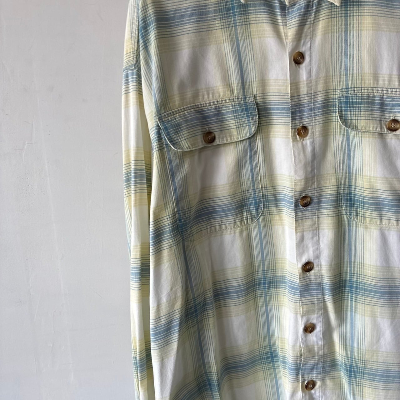 ホワイトベースにブルーの濃淡での秀逸なシャドーチェックが映えるオールドギャップのコットンシャツ