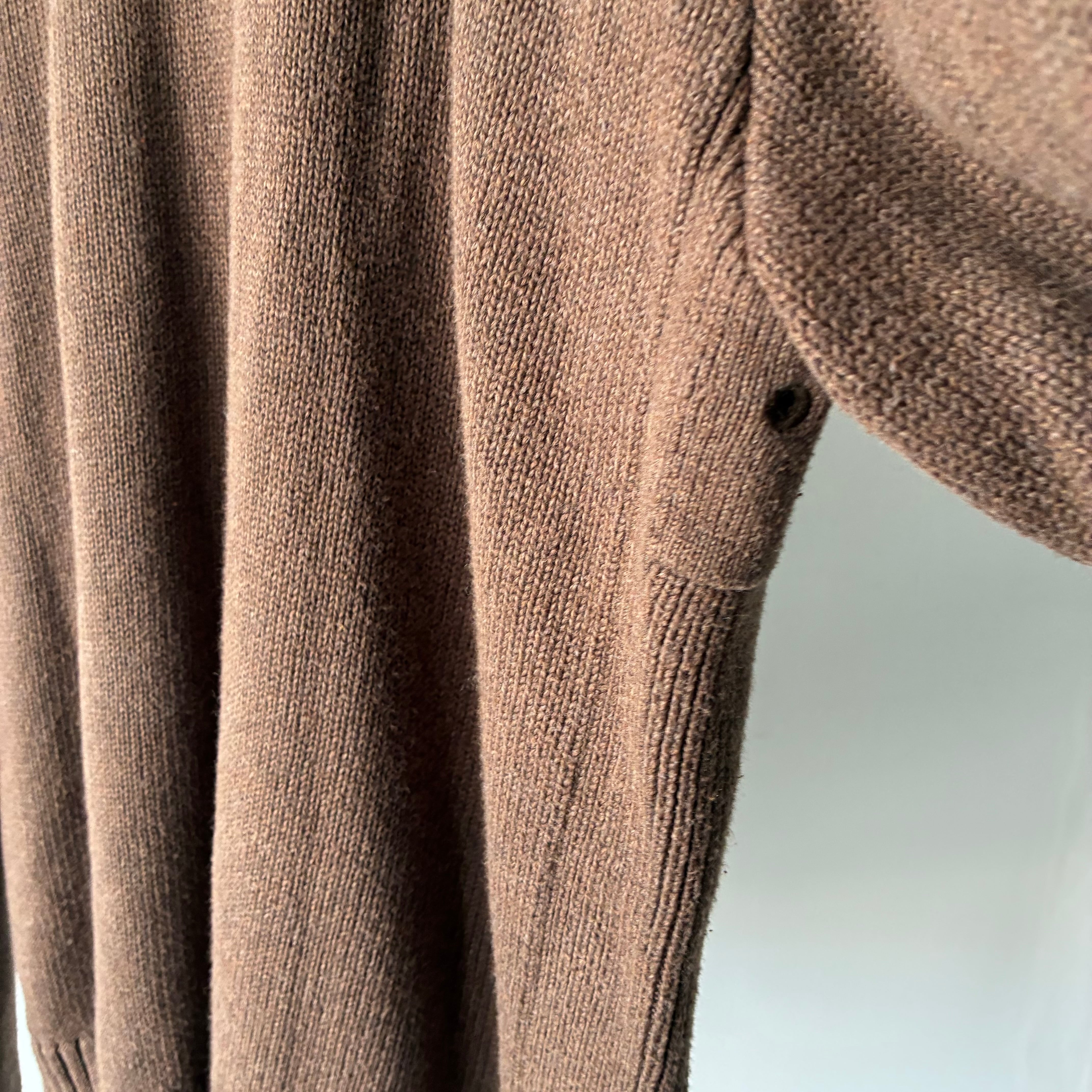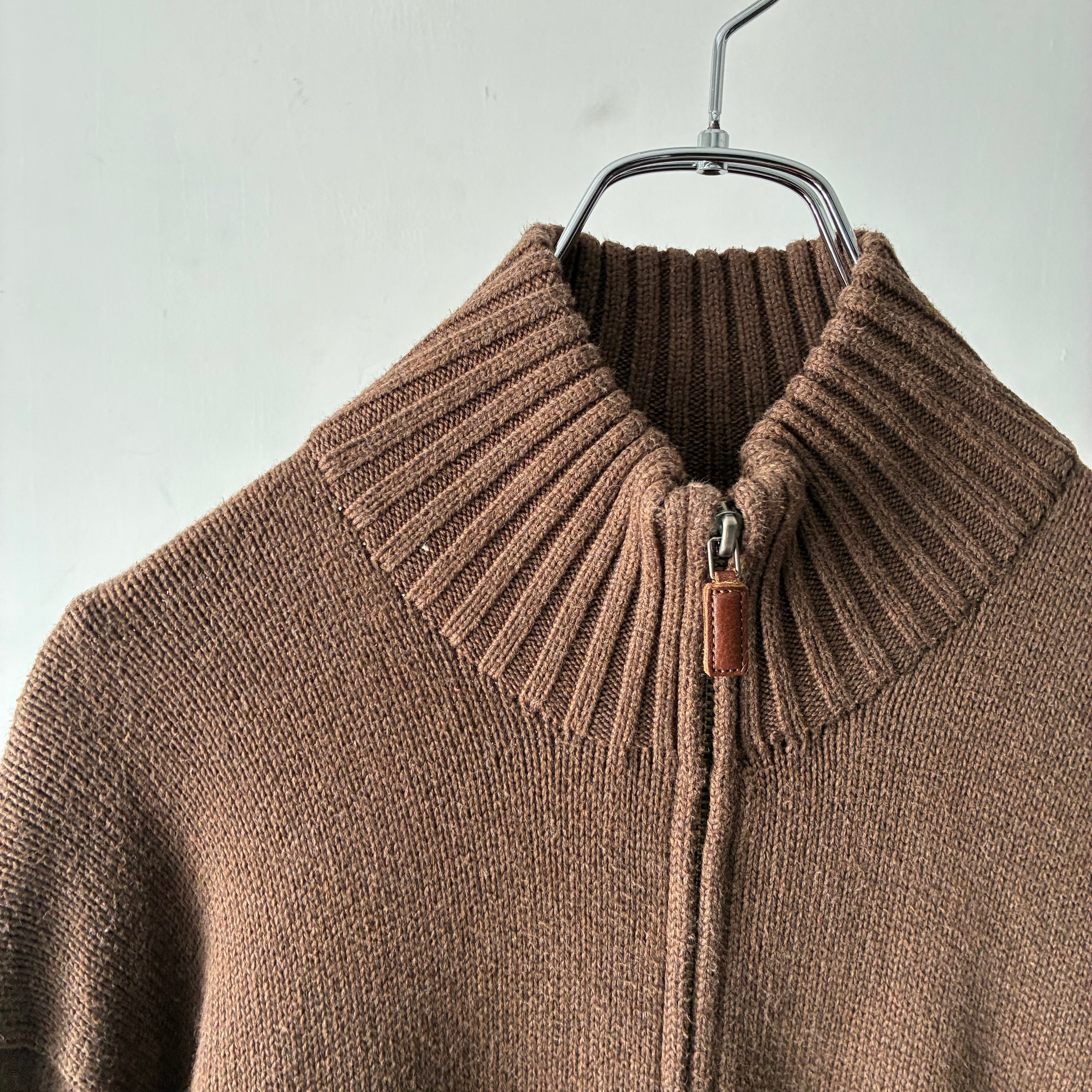 深みのあるブラウンカラーに胸元のグリーンのロゴ刺繍がアクセント