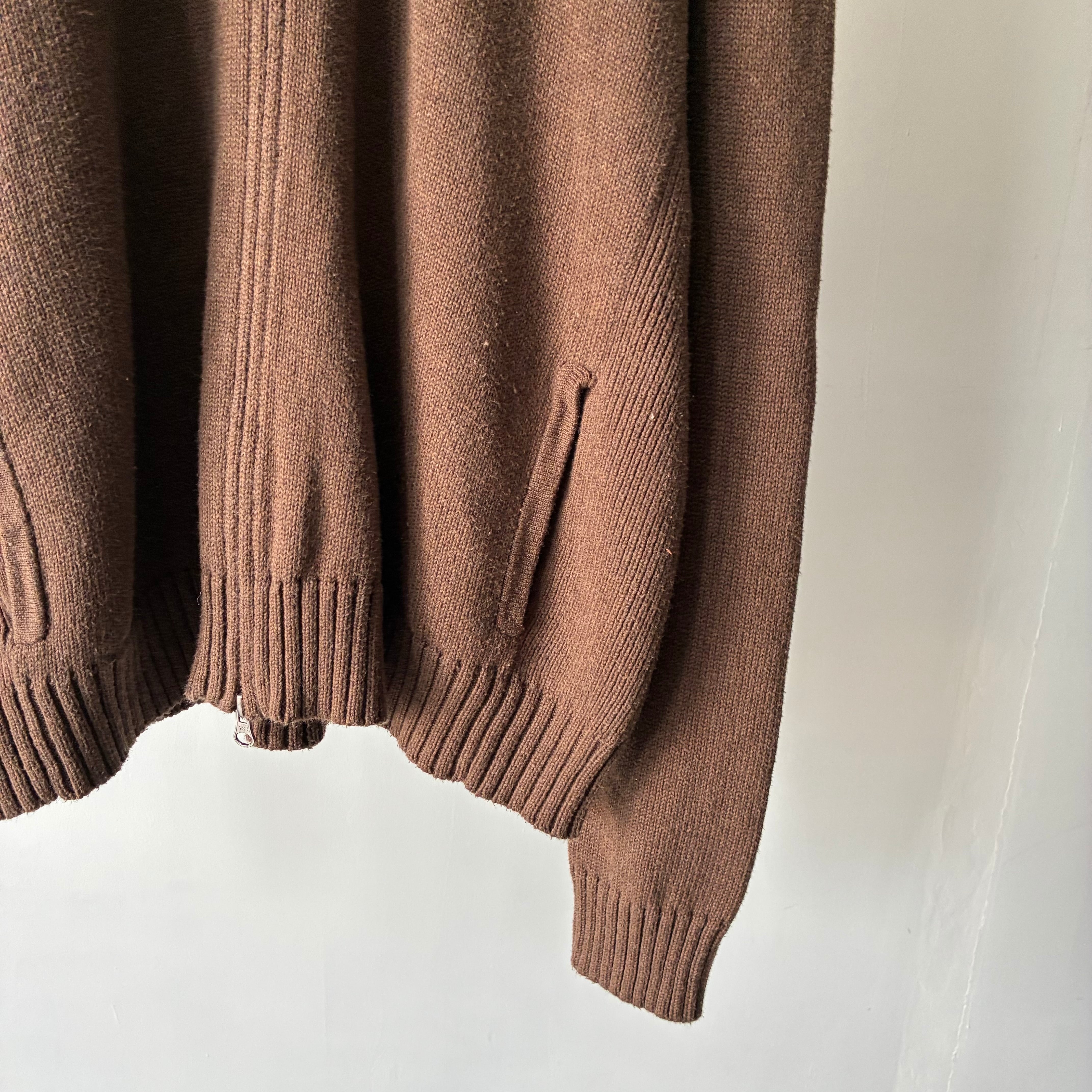 立ち襟仕様のリブニットが顔まわりをスッキリ見せ、着回しの効く嬉しいダブルジップ仕様