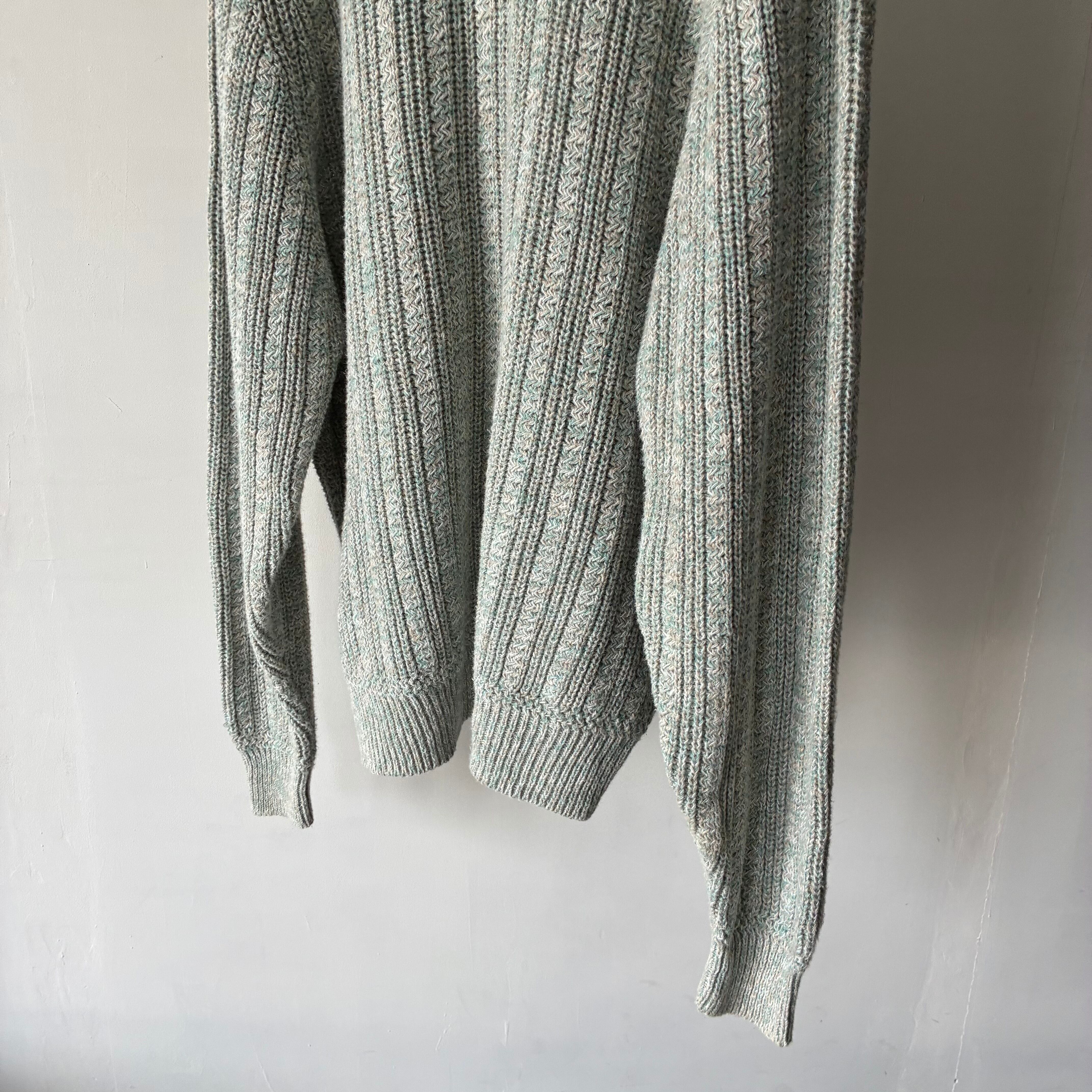 ざっくりとした立体感ある編地に柔らかなラミーとコットンの混紡素材ニット