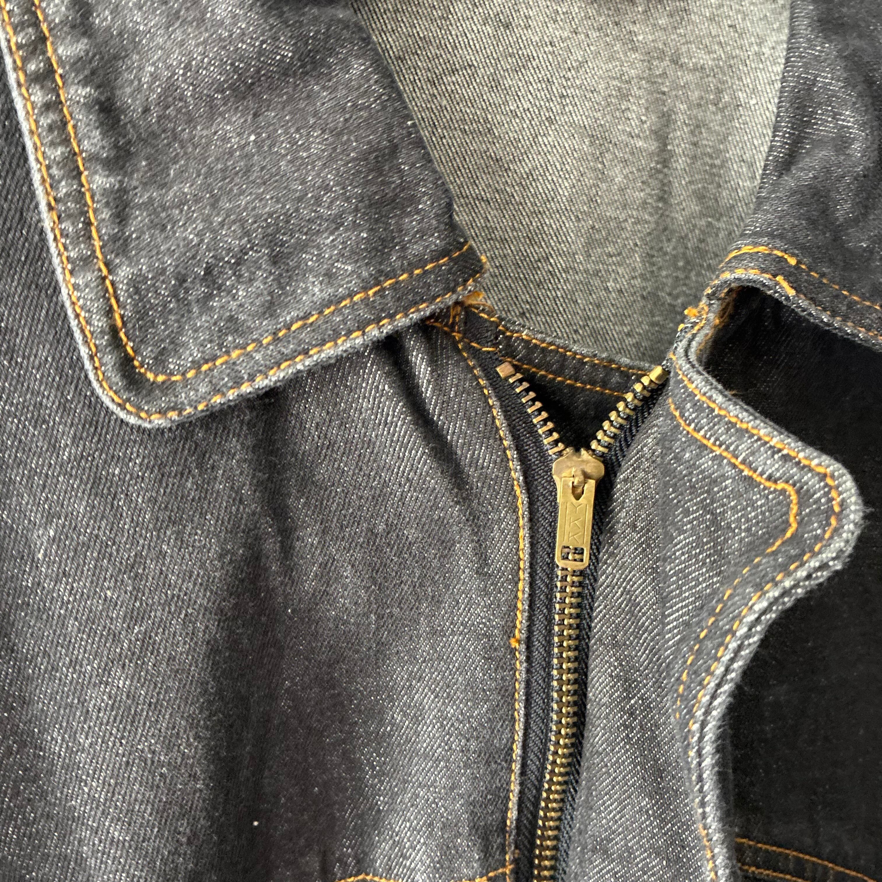 ブラウンのコントラストステッチが映える無骨なデザインで、独特のアーチ状の切り替えがアクセントになった一着