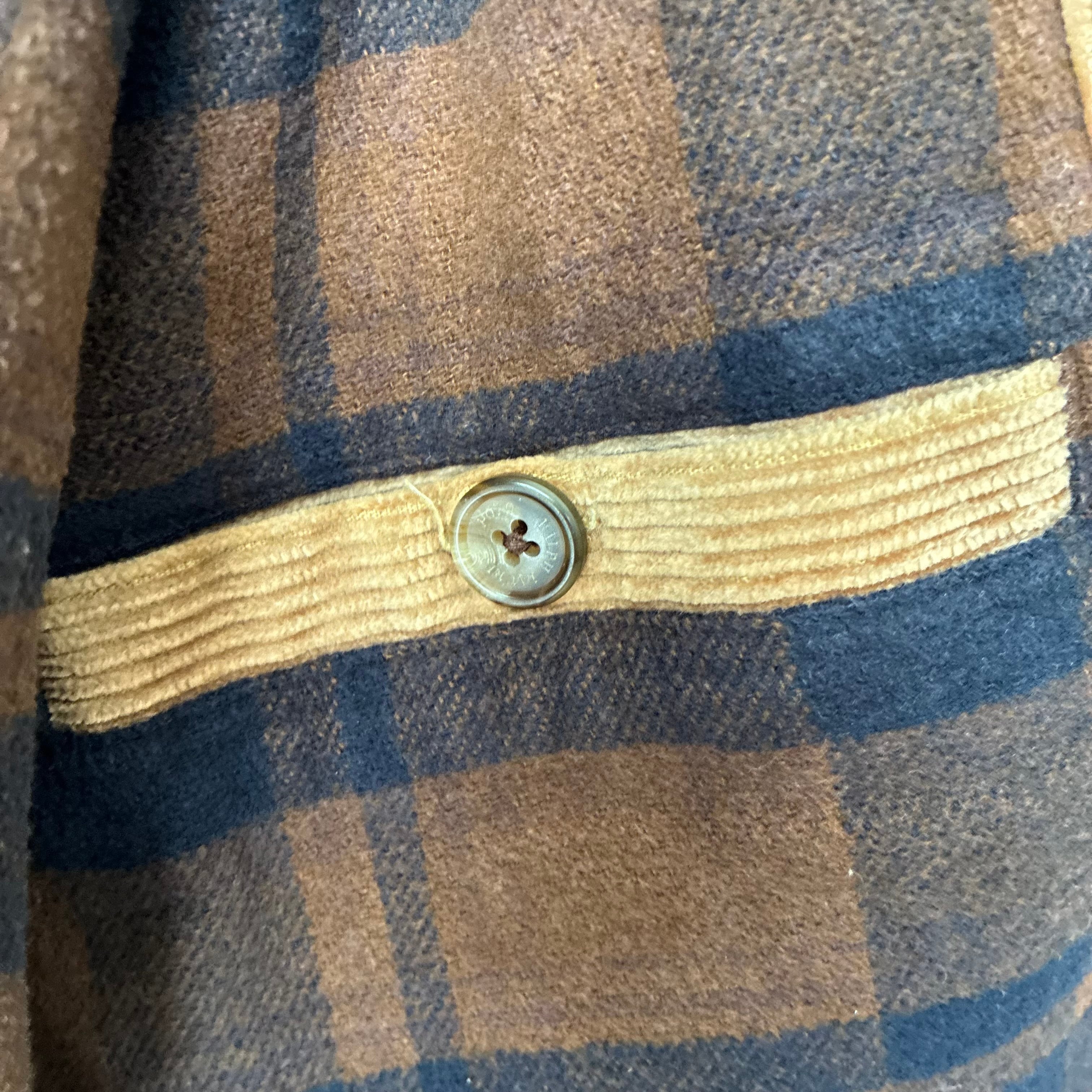 裏地はブラウン×ネイビーのチェック柄になっており、ラルフローレンらしいクラシックなディテールが際立ちます