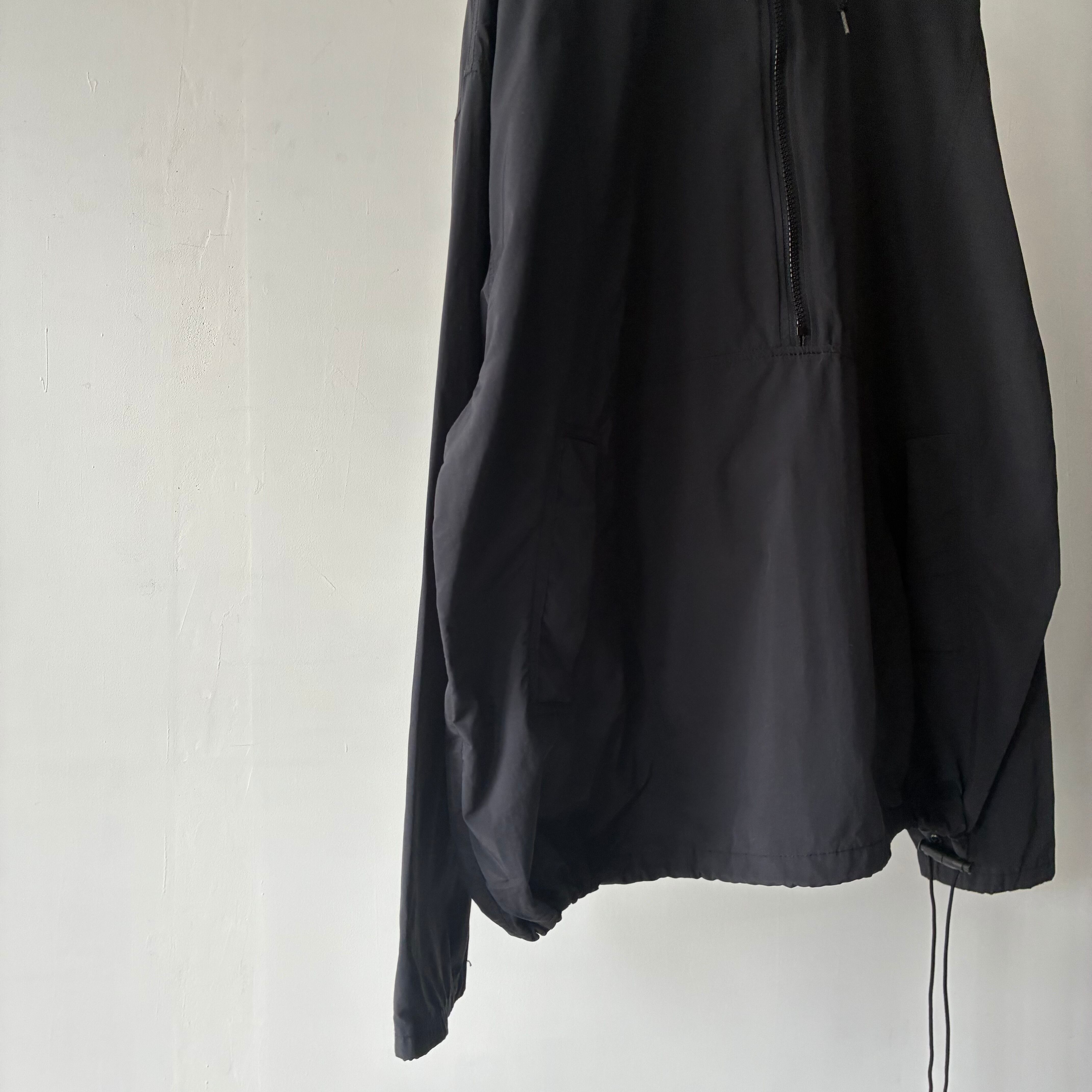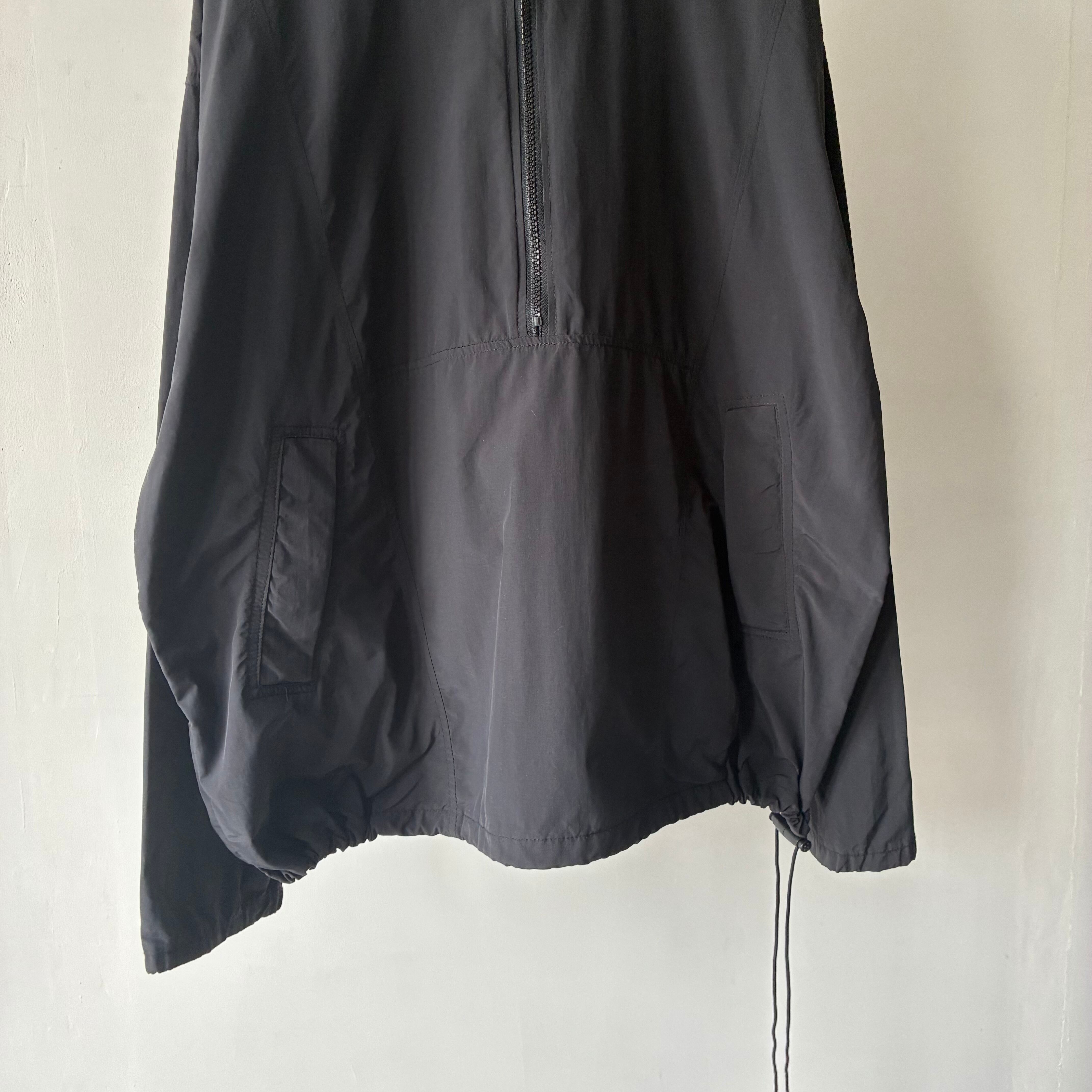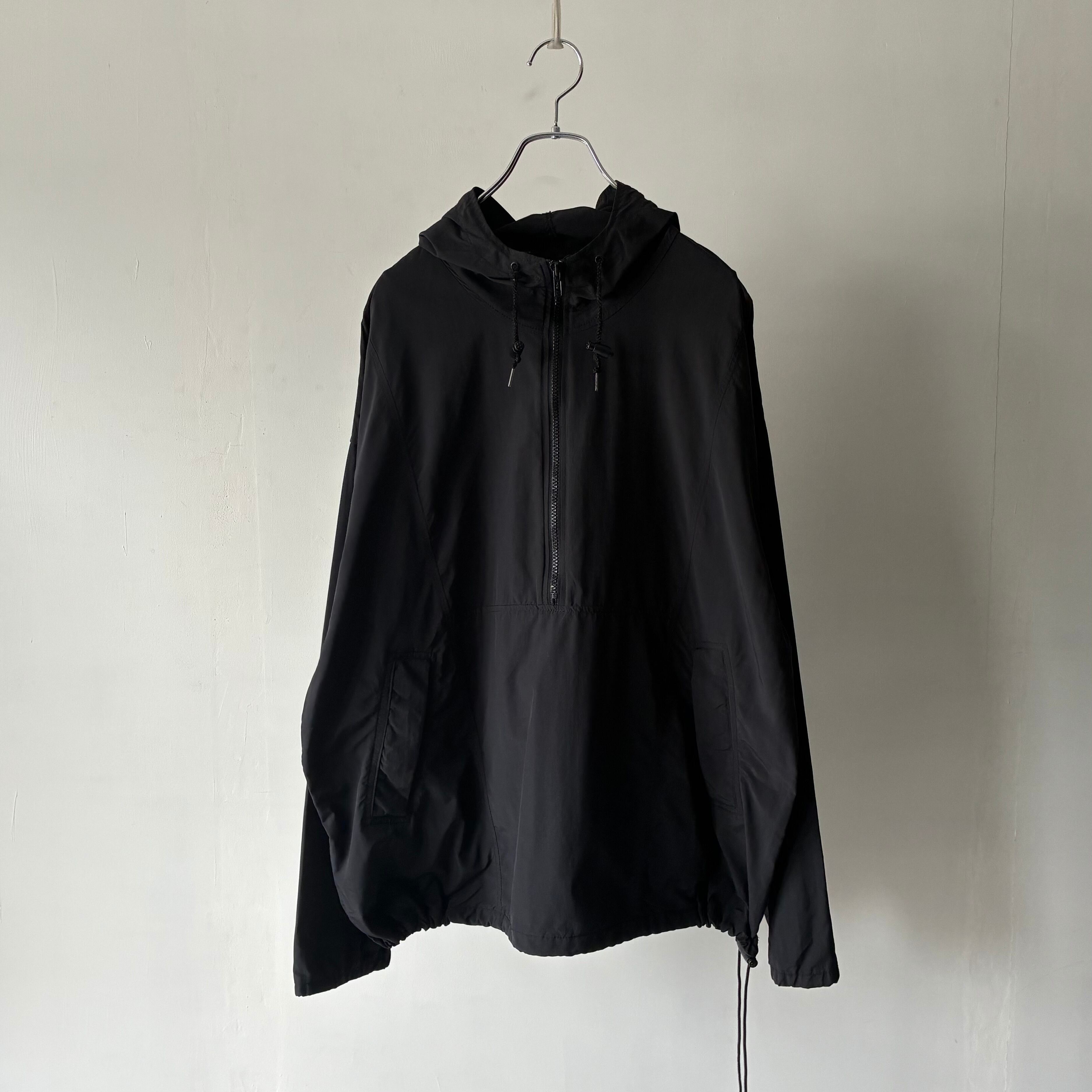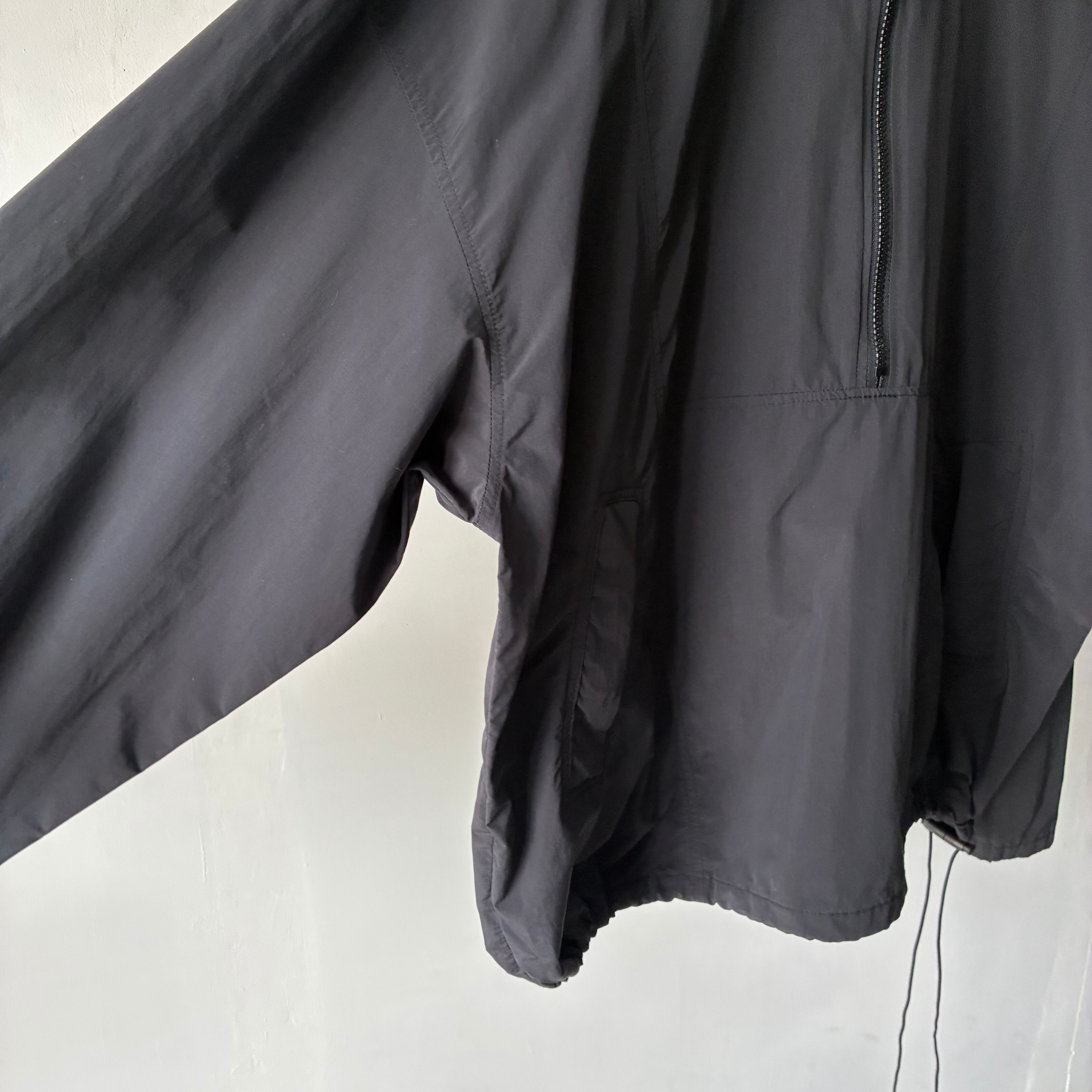 ハーフジップ仕様に加えフードと裾にはドローコードを装備しており、シルエット調整も自在