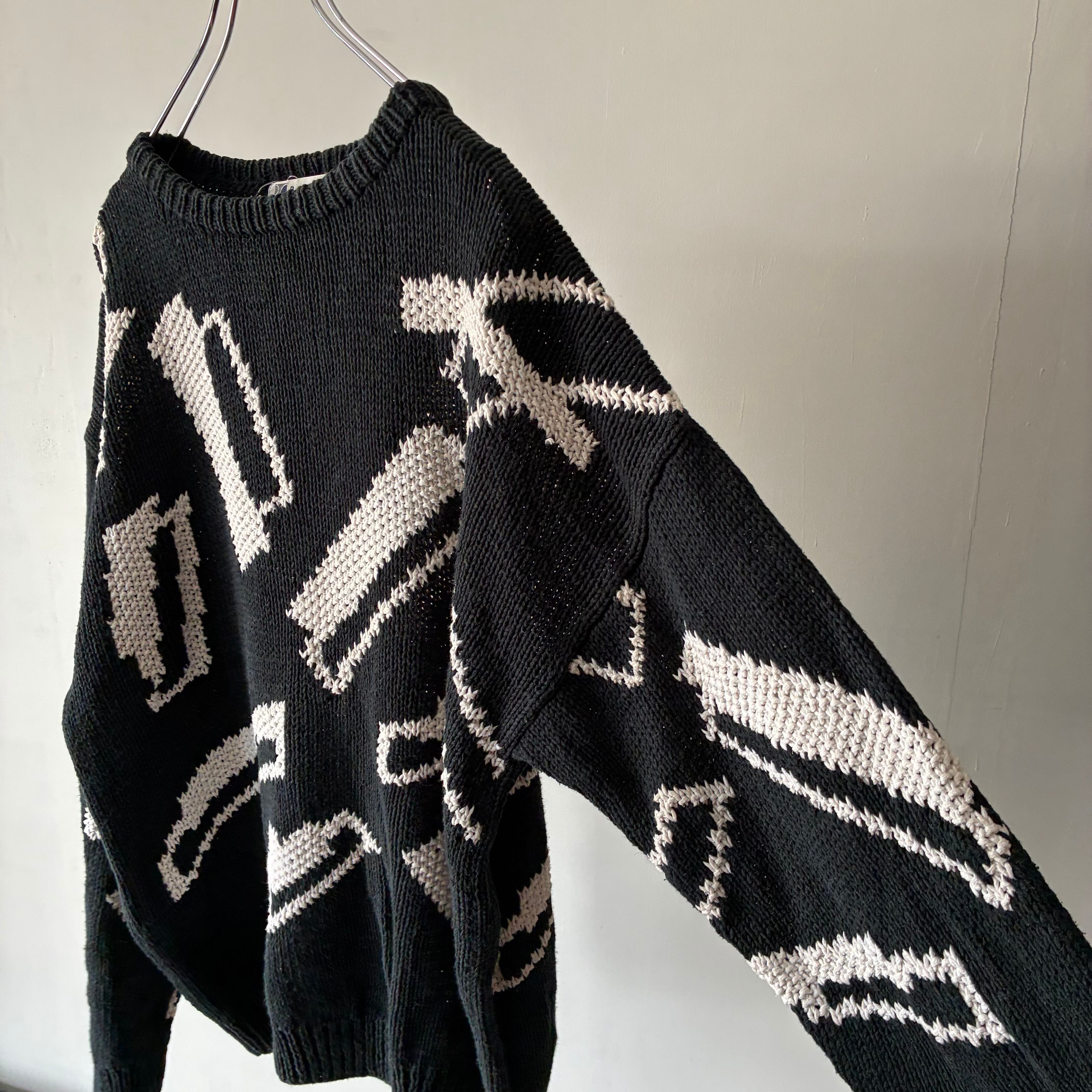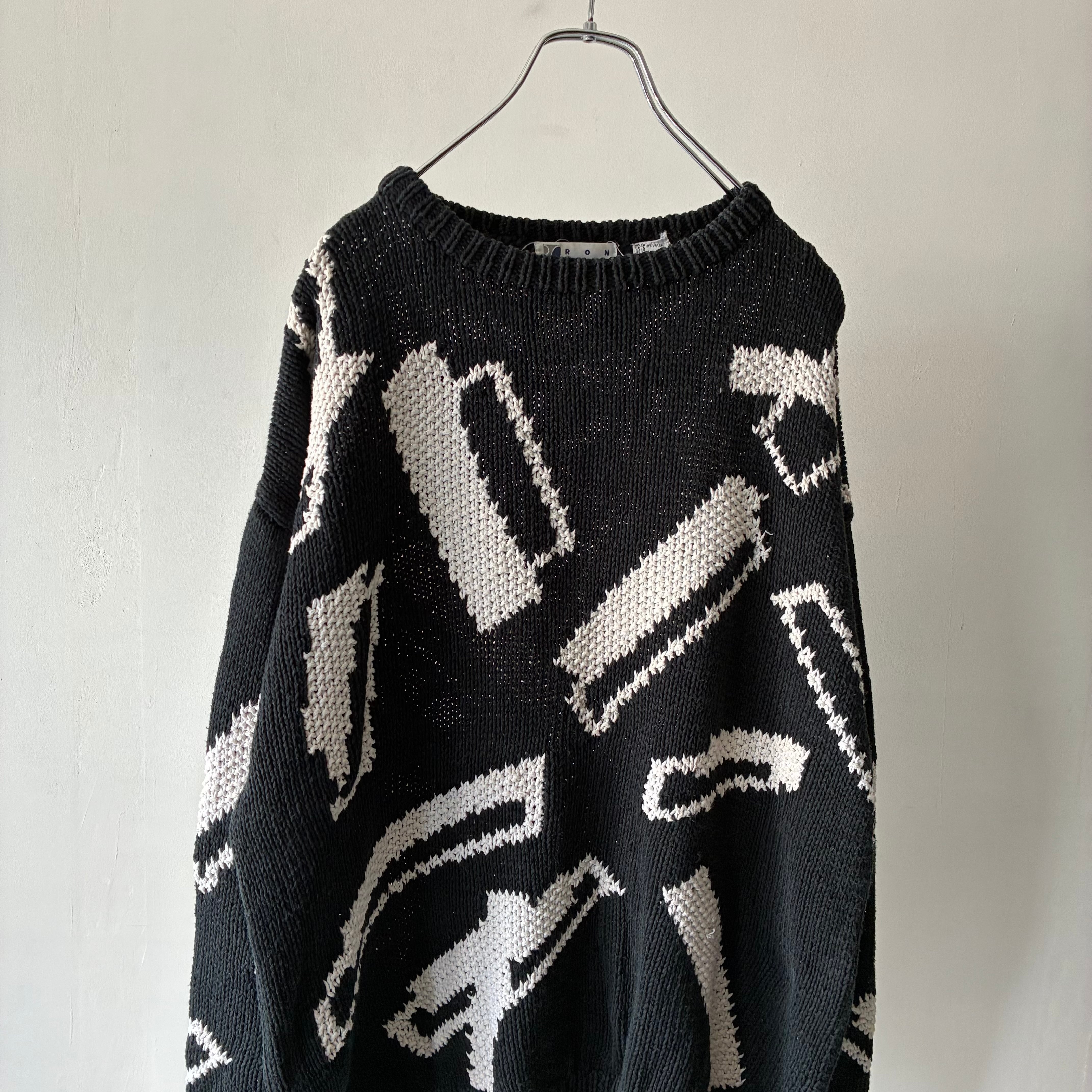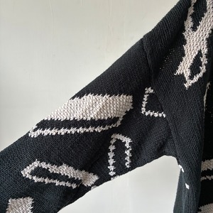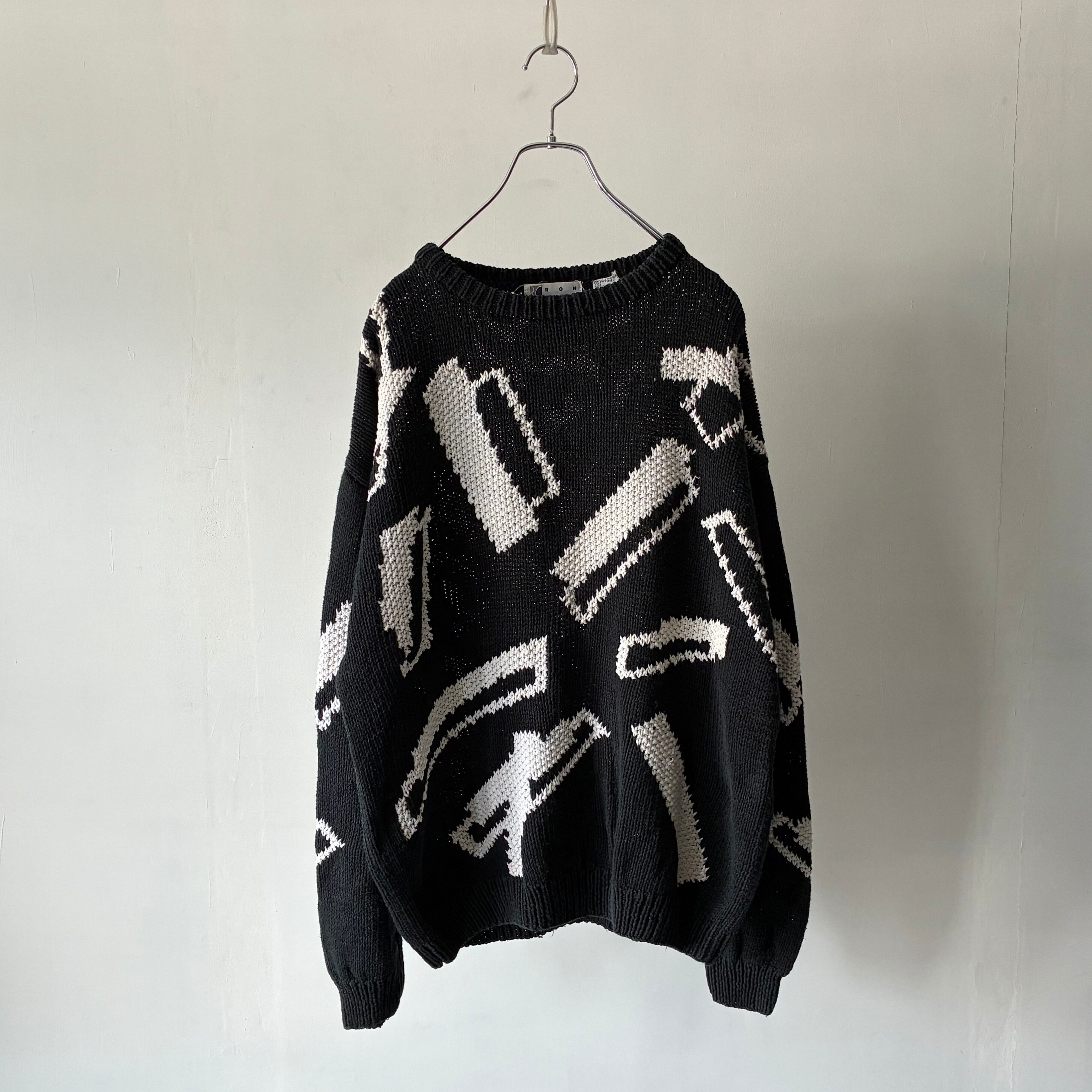 ブラックをベースにホワイトの抽象的なジオメトリック柄が編み込まれた90sらしいデザイン