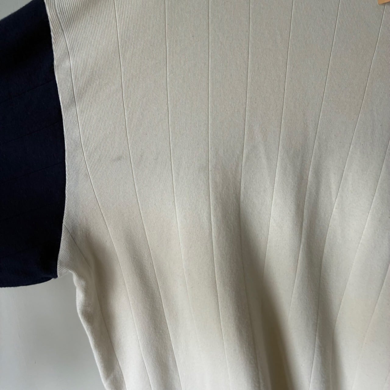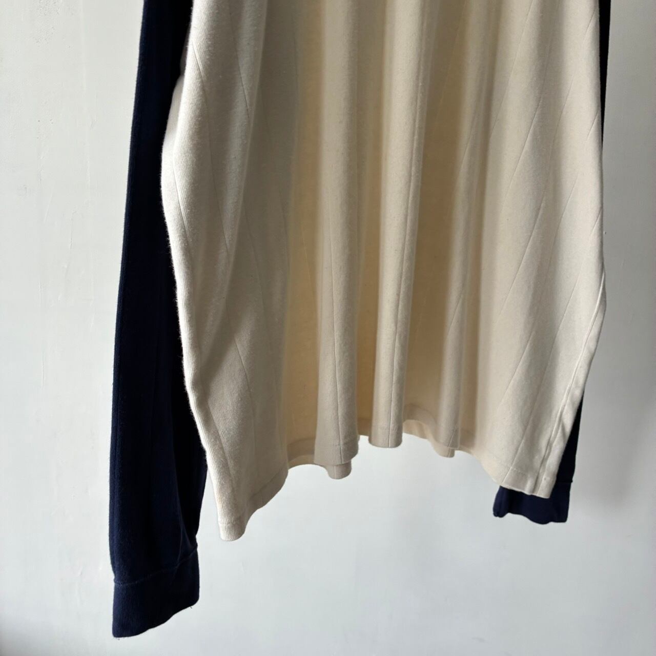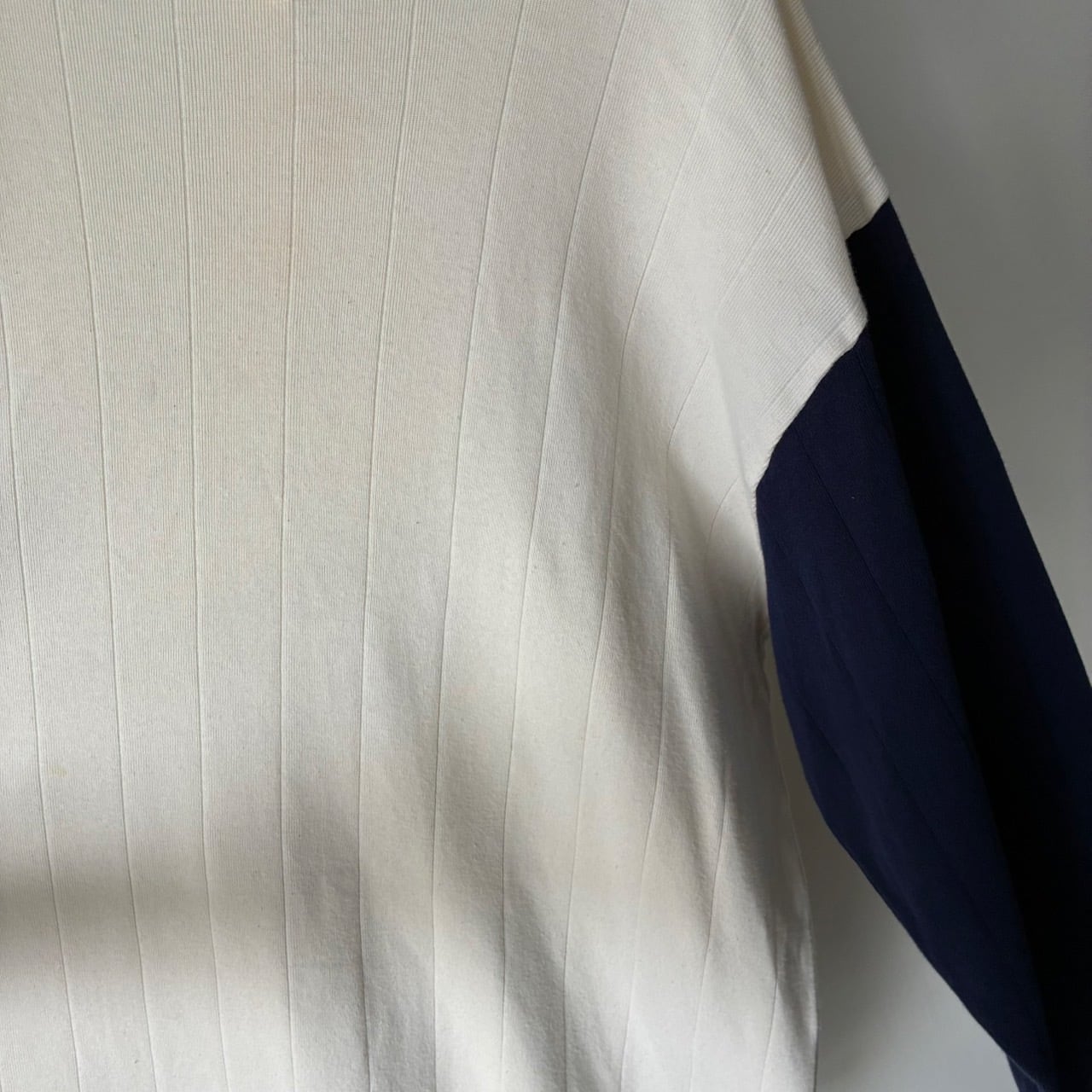 アイボリー×ネイビーのバイカラーで程よくストレッチの効いたソフトな風合いの生地感