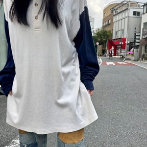 ゆったりとしたオーバーめなシルエットでヘンリーネックの仕様も良い抜け感になってます