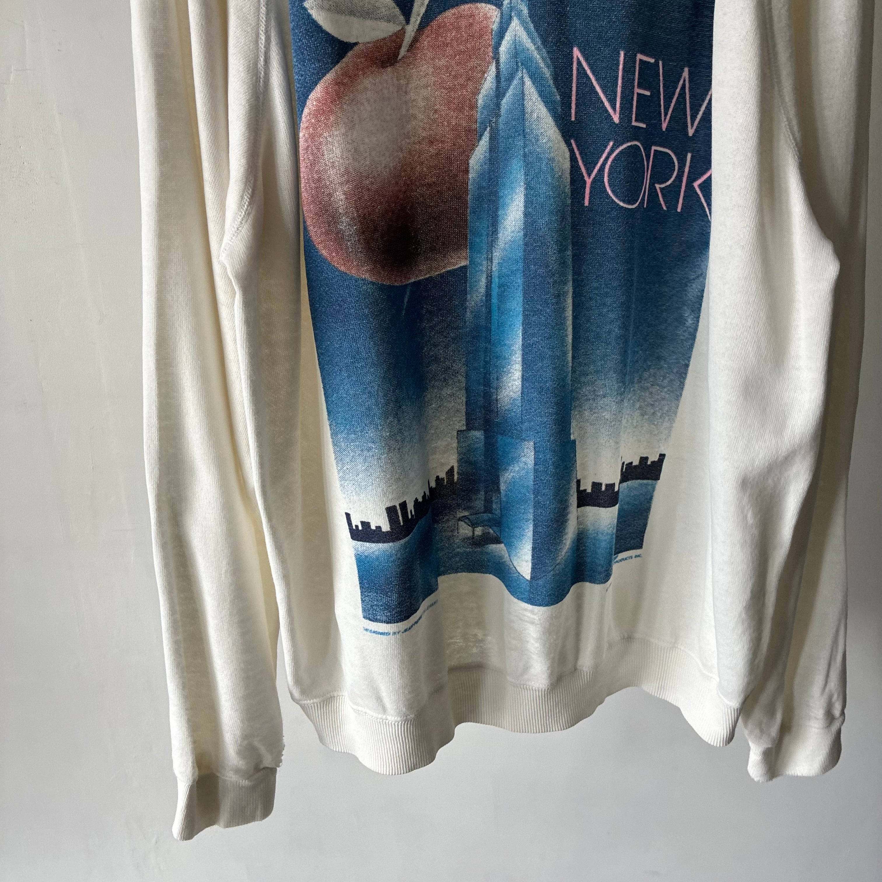 フロントにはニューヨークのシンボル的な摩天楼と、Big Appleをモチーフにしたアートワークが大胆にプリント