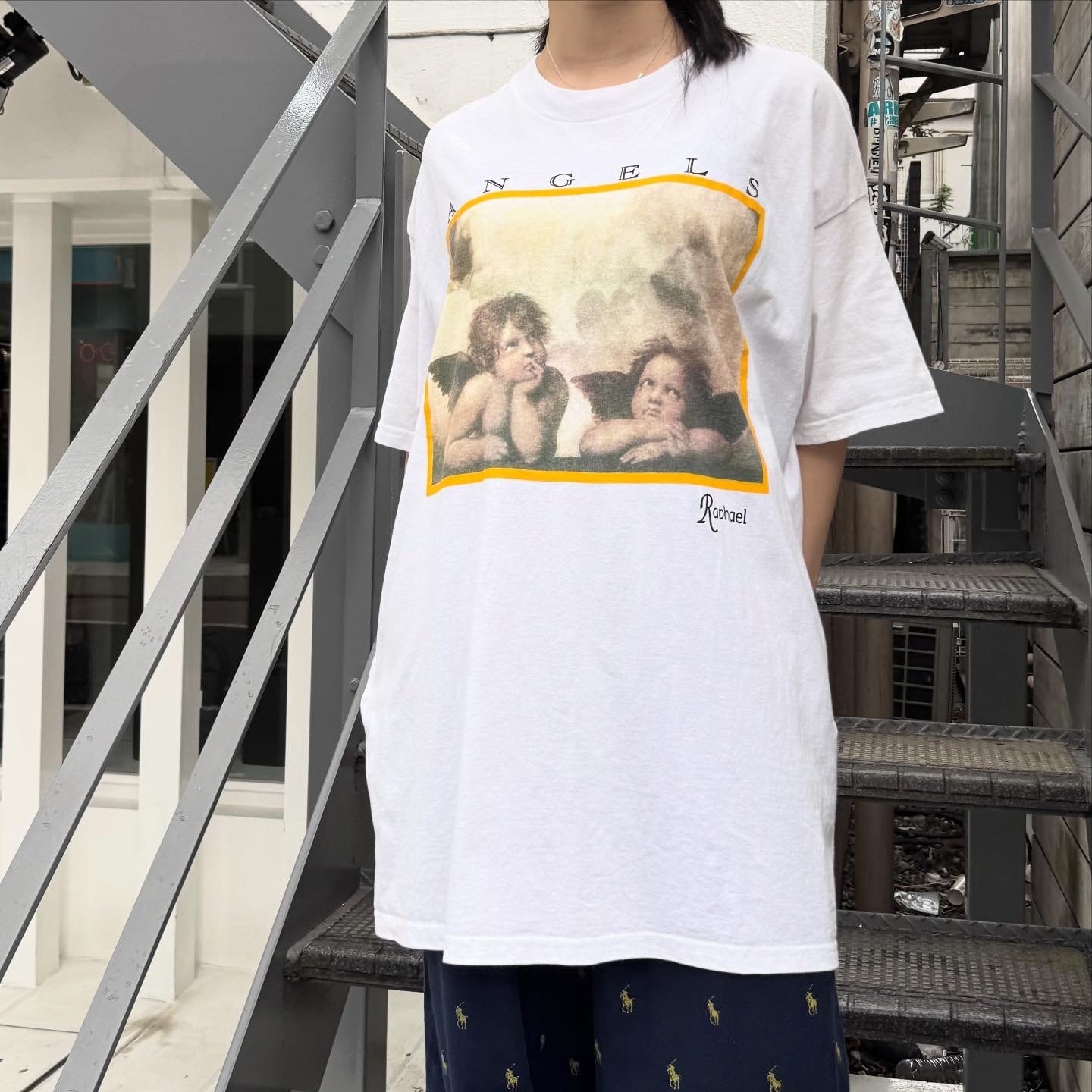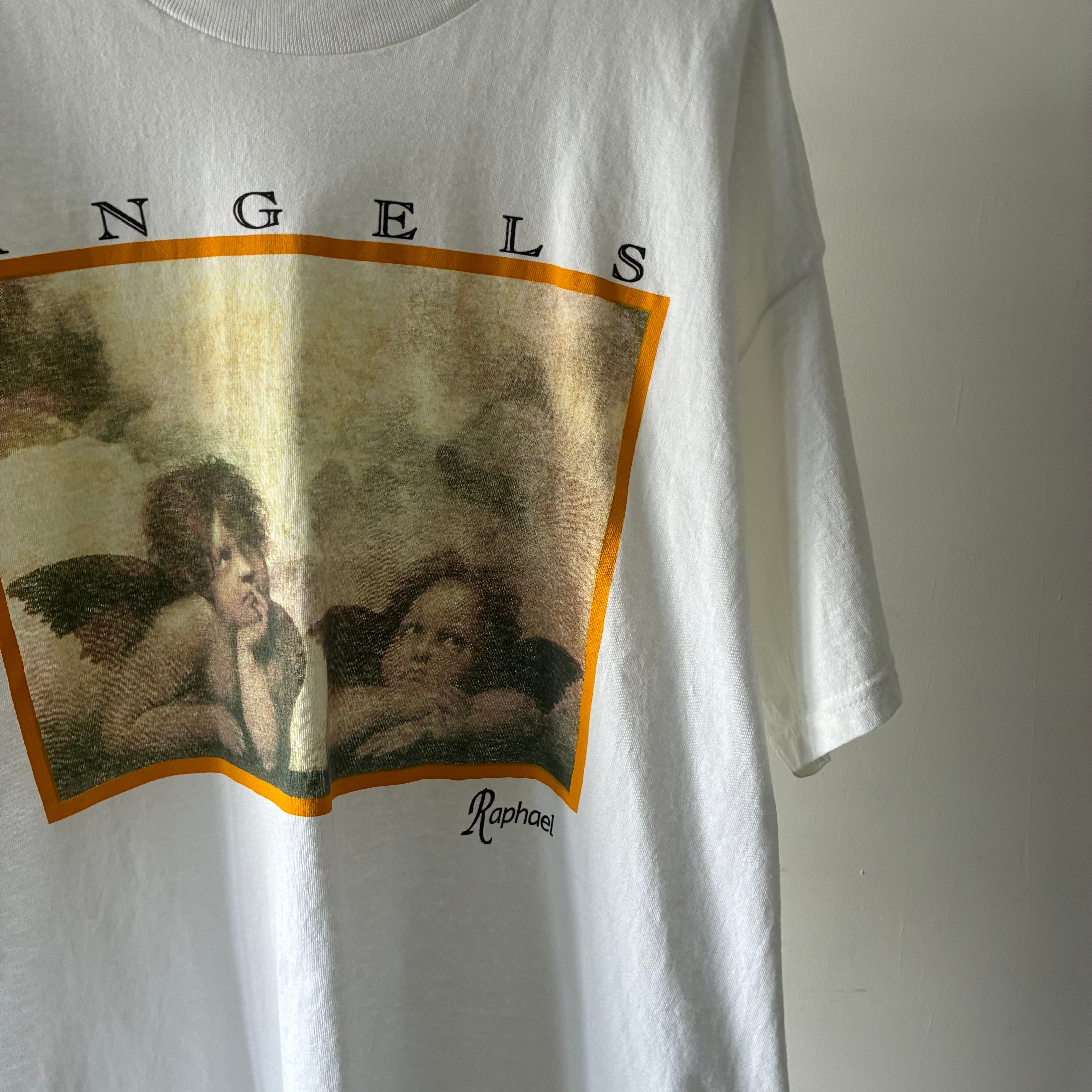 フロントには「ANGELS」の文字とラファエロのサインロゴが入り、作品を額縁のように縁取るイエローフレームがアクセントに