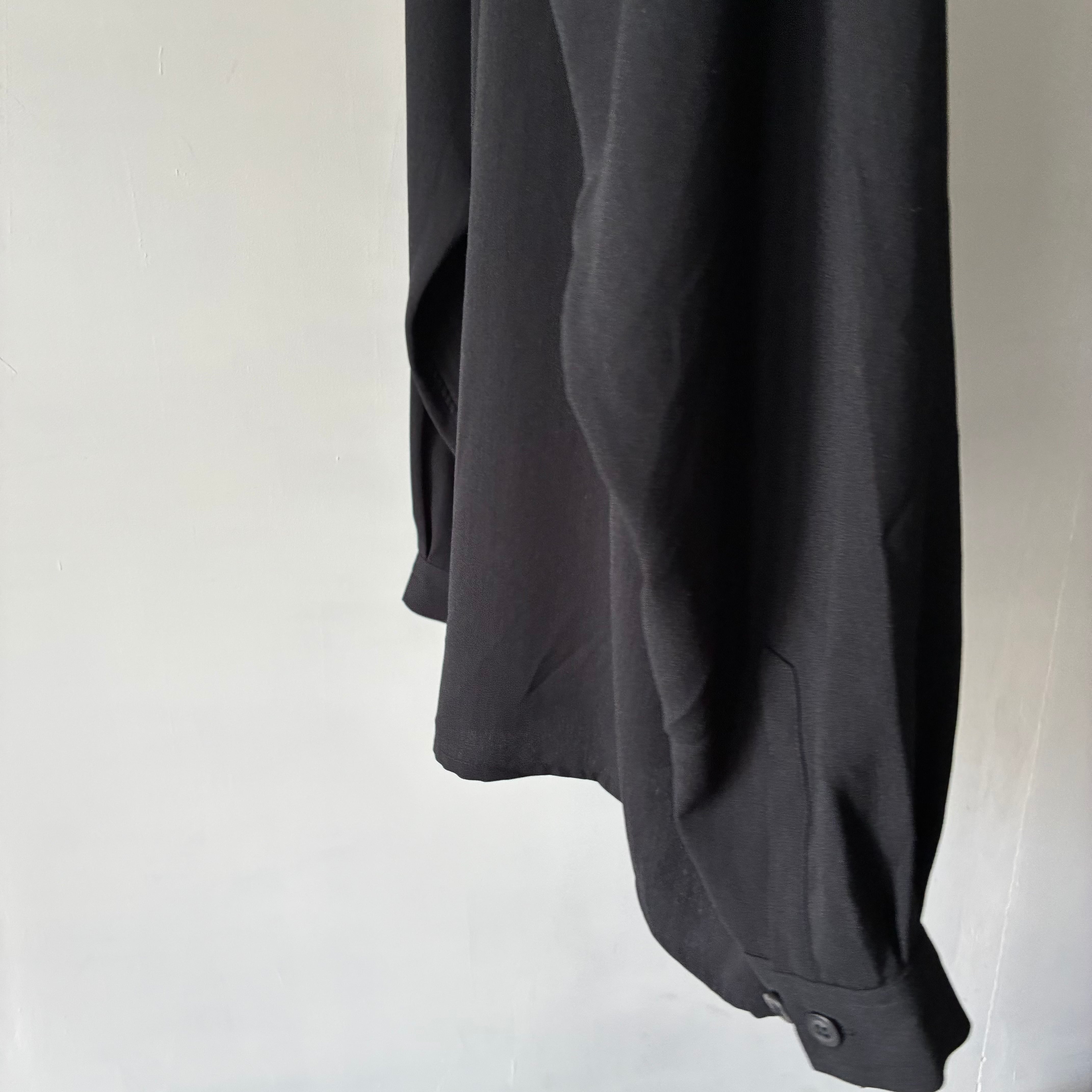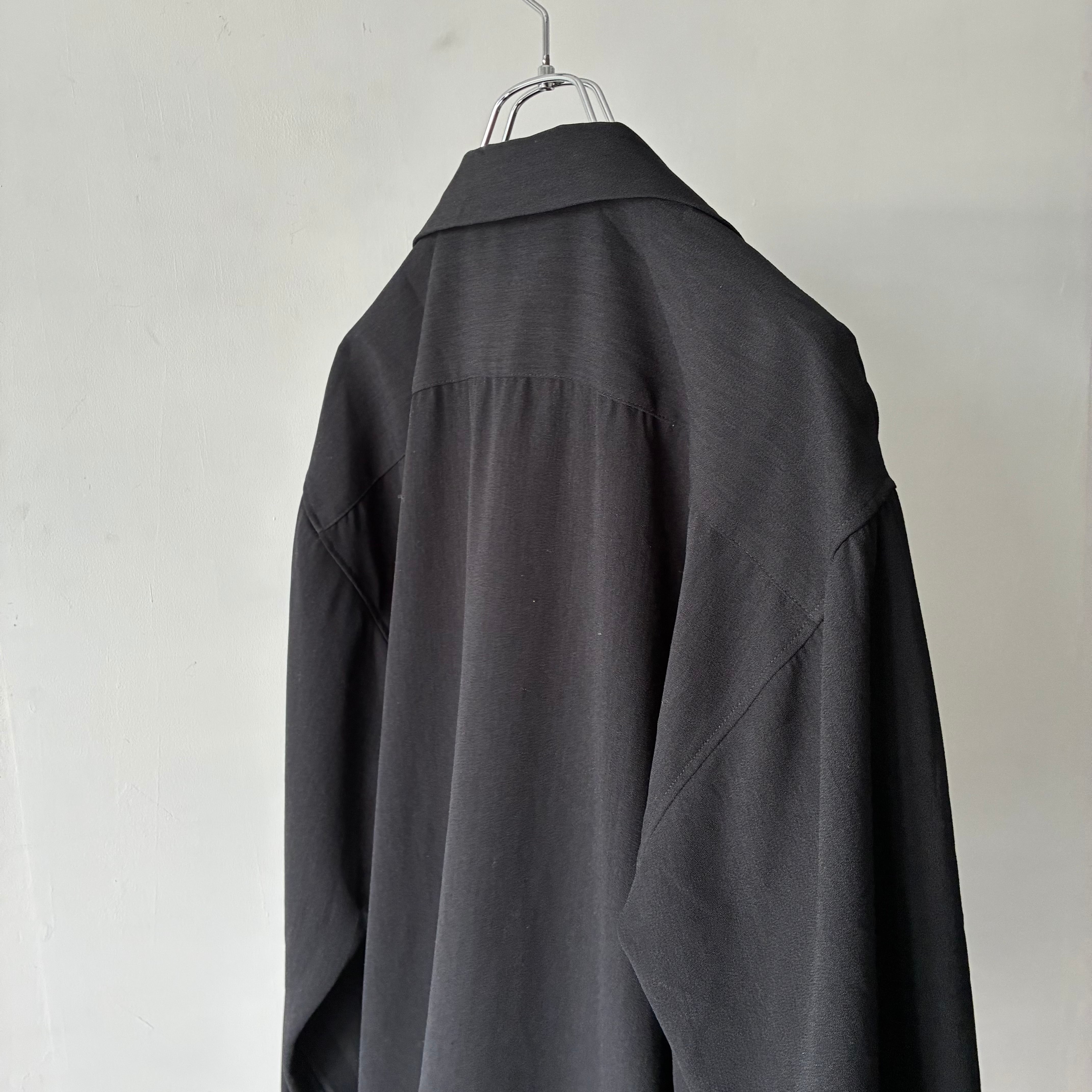 フロントにはフラップ付きの大きめポケットを2つ配置し、ミリタリーシャツのような無骨さを演出しつつも、全体をブラックでまとめることで都会的でシックな印象