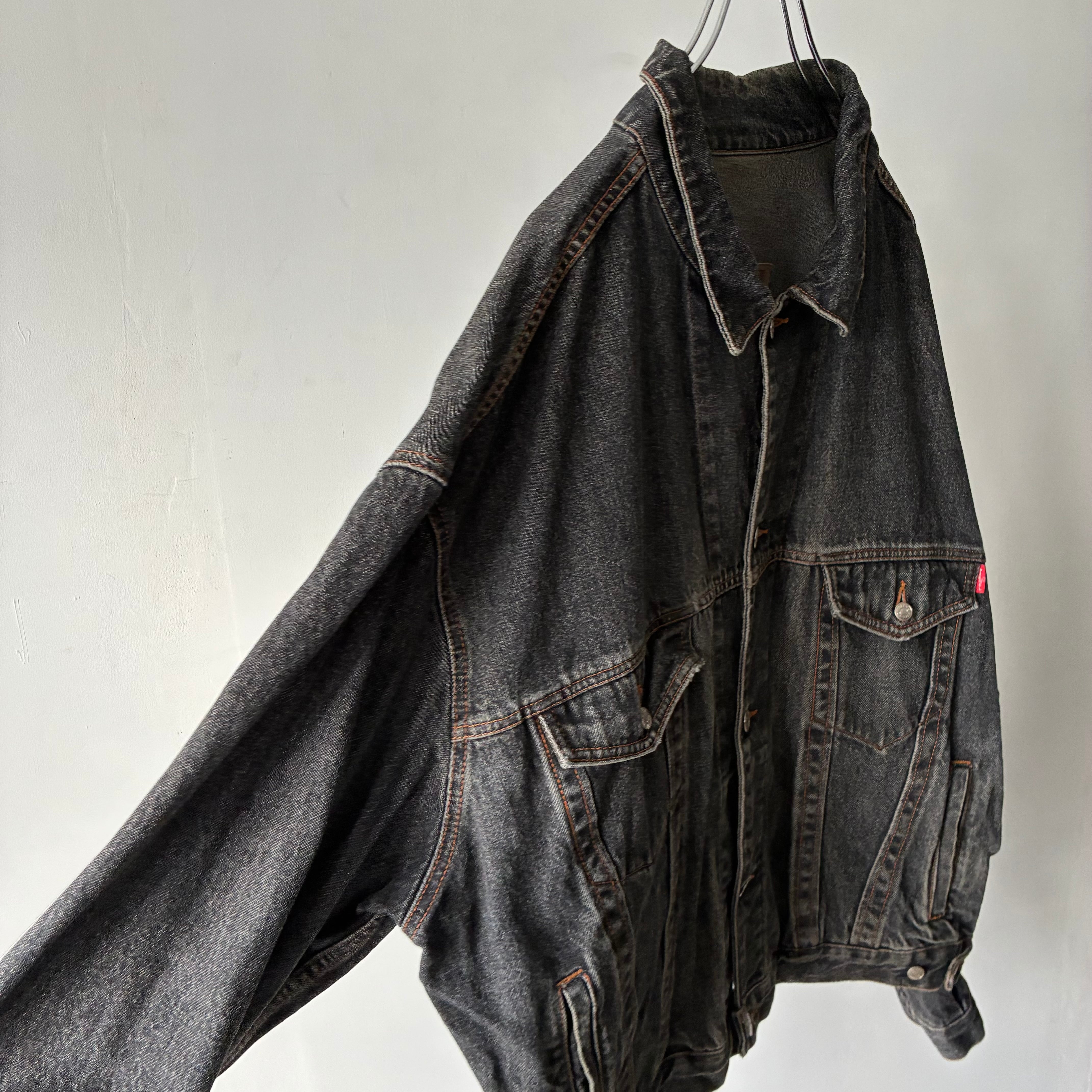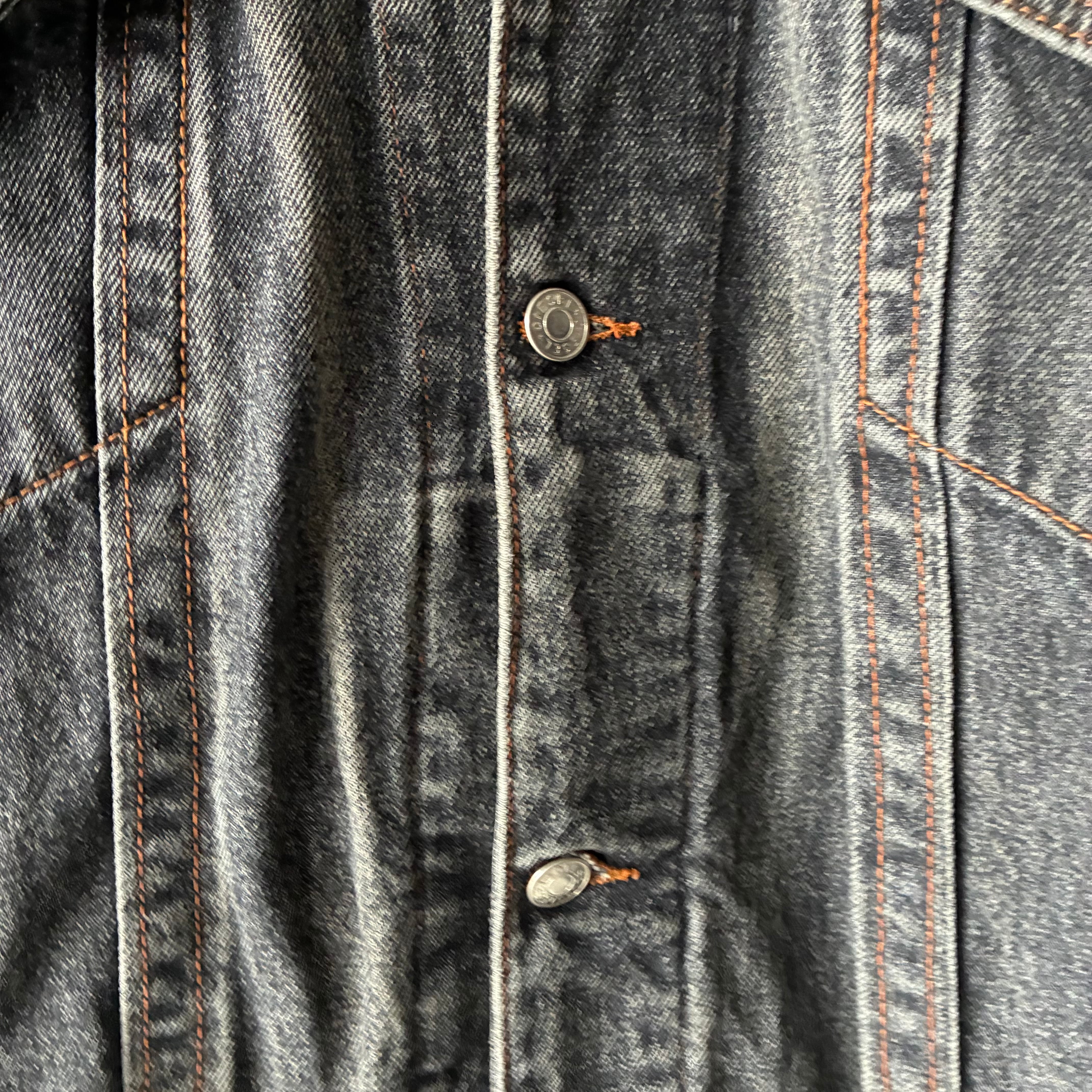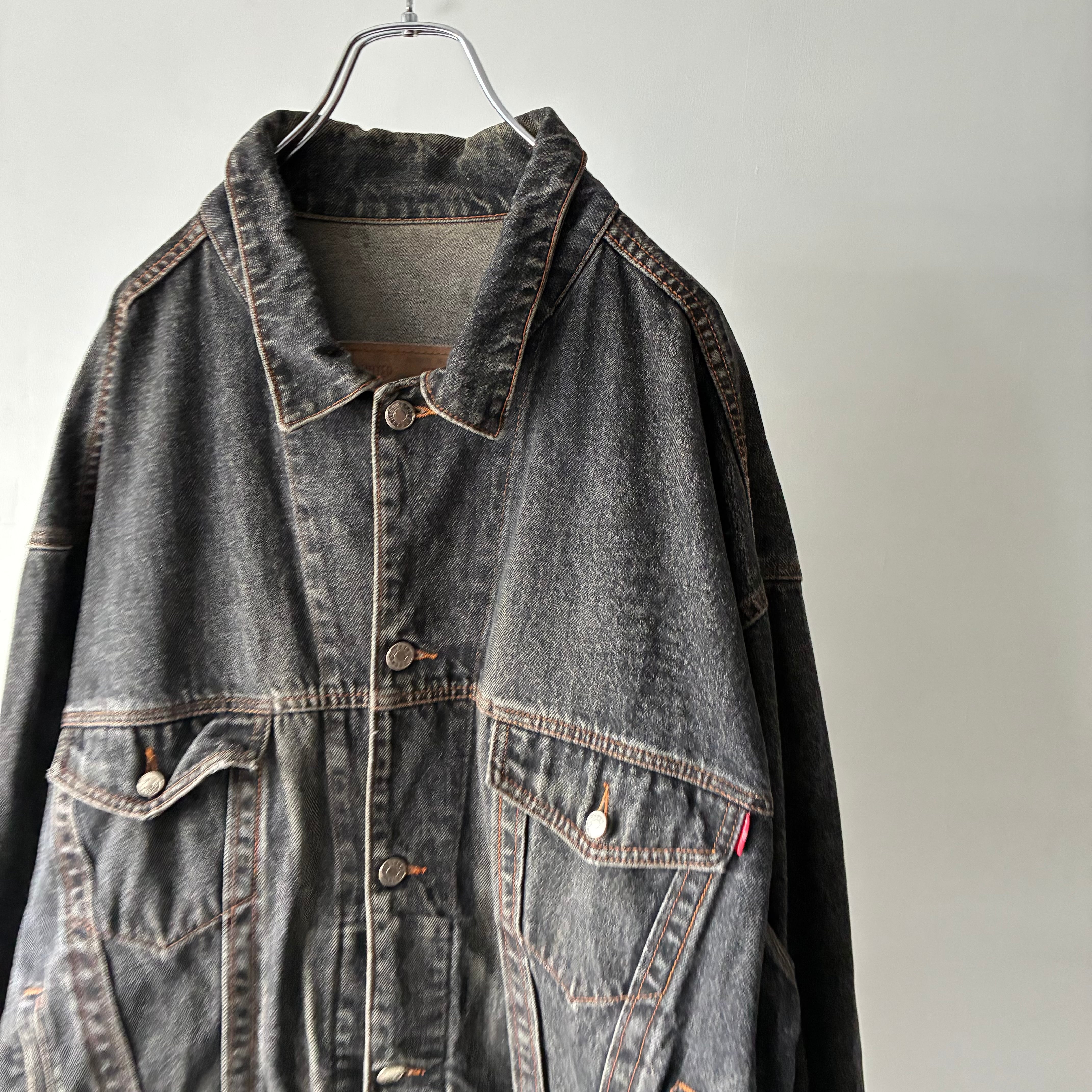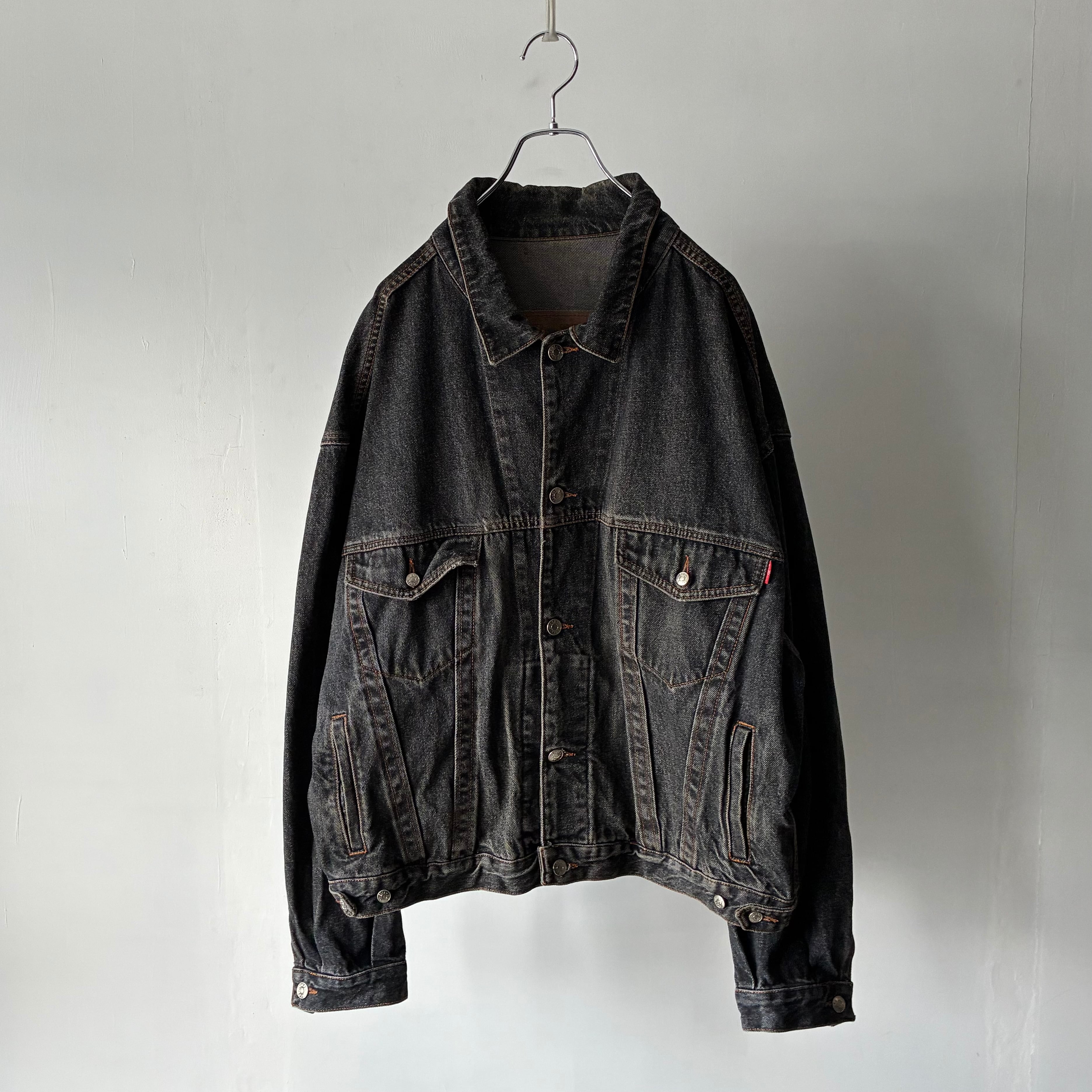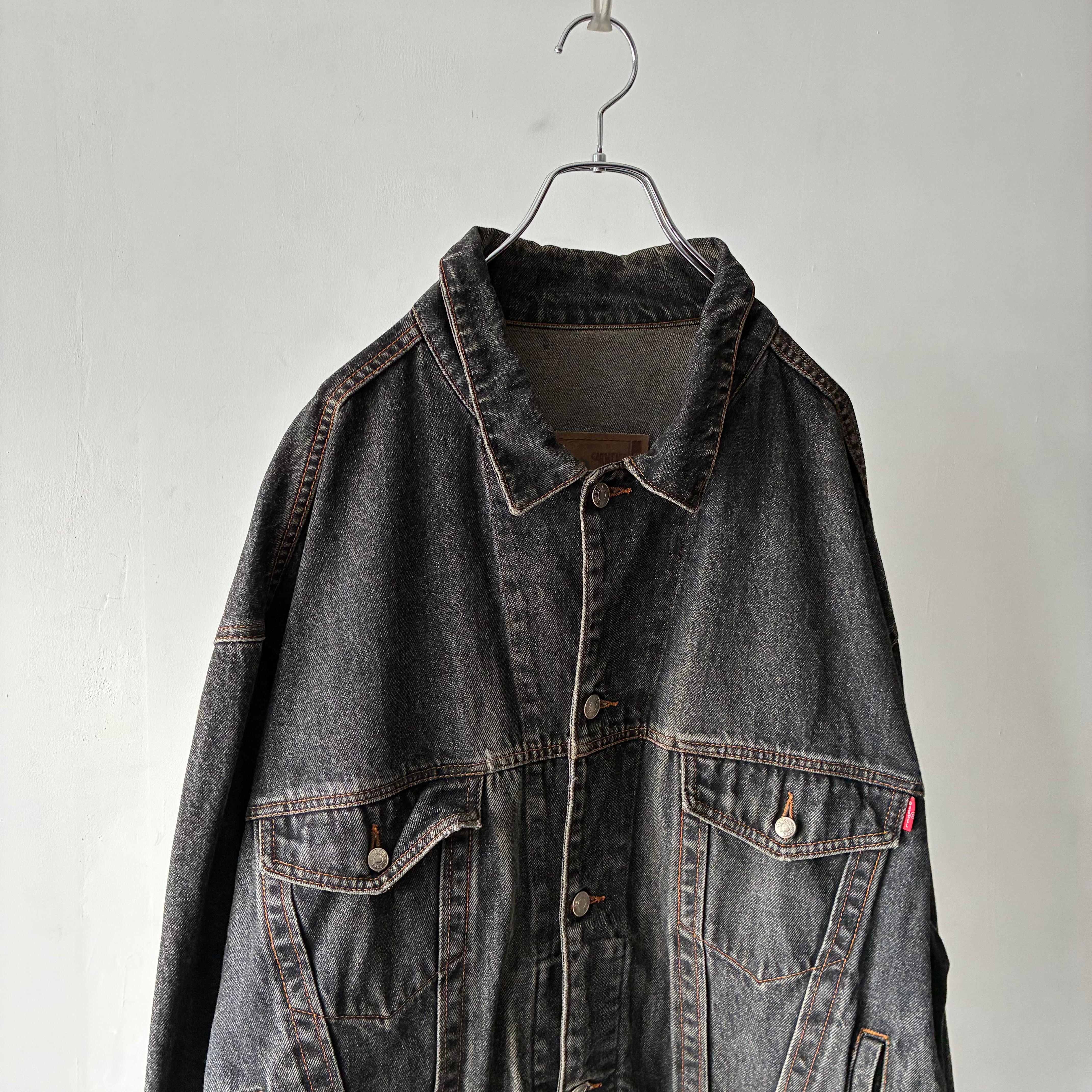 程よくフェード感のあるブラックデニムに、オレンジステッチが映える一着