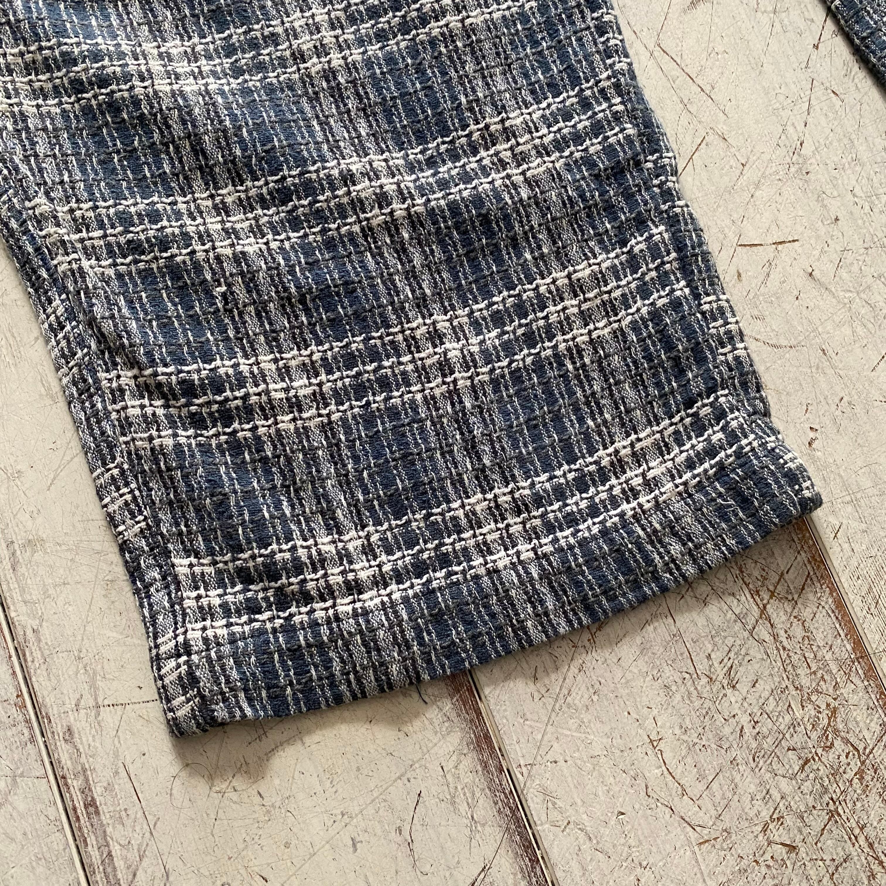 凹凸感のあるざっくりとした織りでのライトオンスな生地感で程よく厚みがあるので安定して着用できます