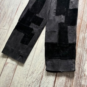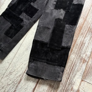 フロントからバックにかけて、大小さまざまなブラックのフェイクスエードパッチが大胆に施されたデザインが特徴的