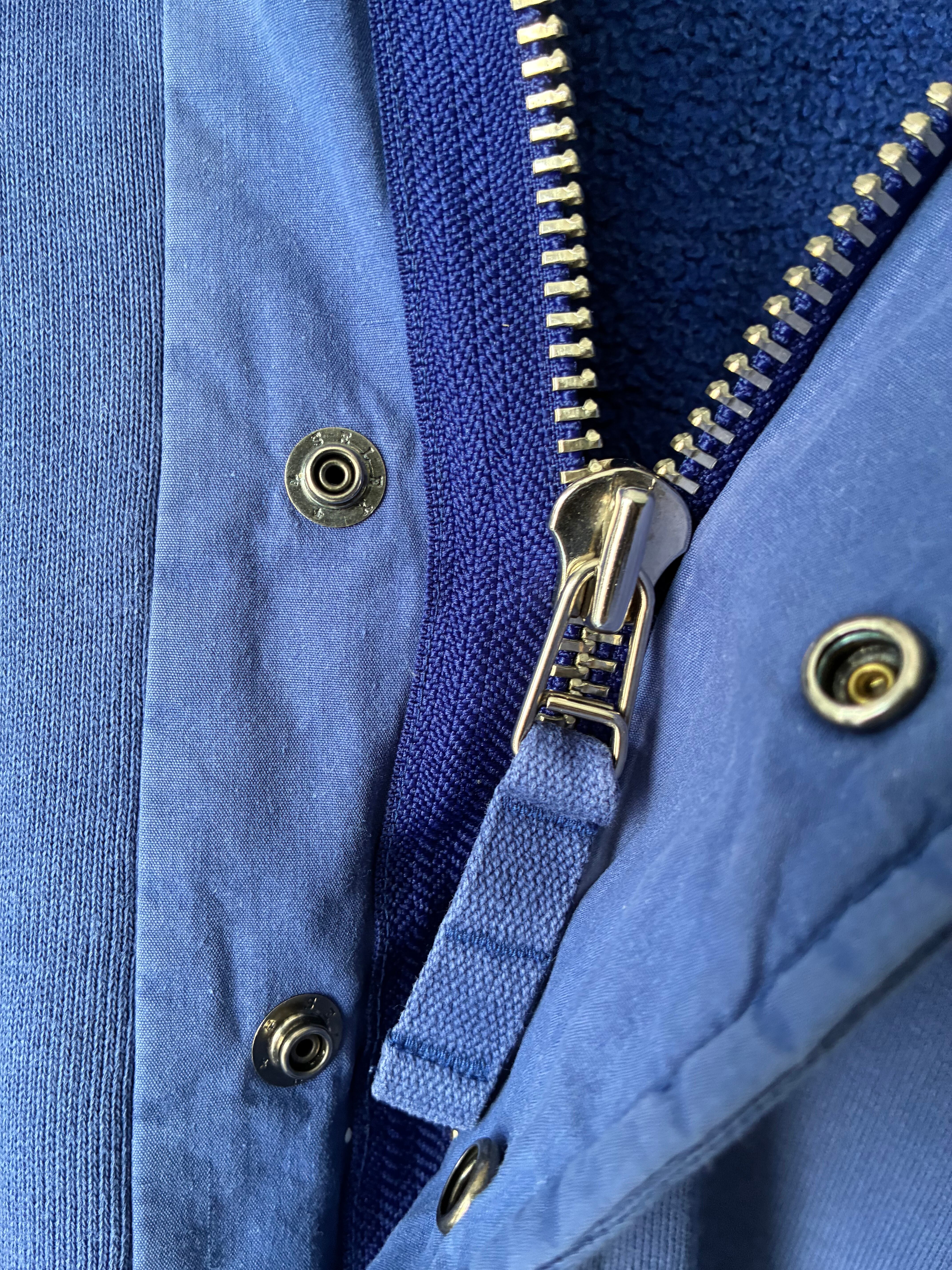 フロントはハーフスナップに加えてジップ仕様の二重構造、さらにポケット付きで実用性も兼ね備えた独特なデザイン