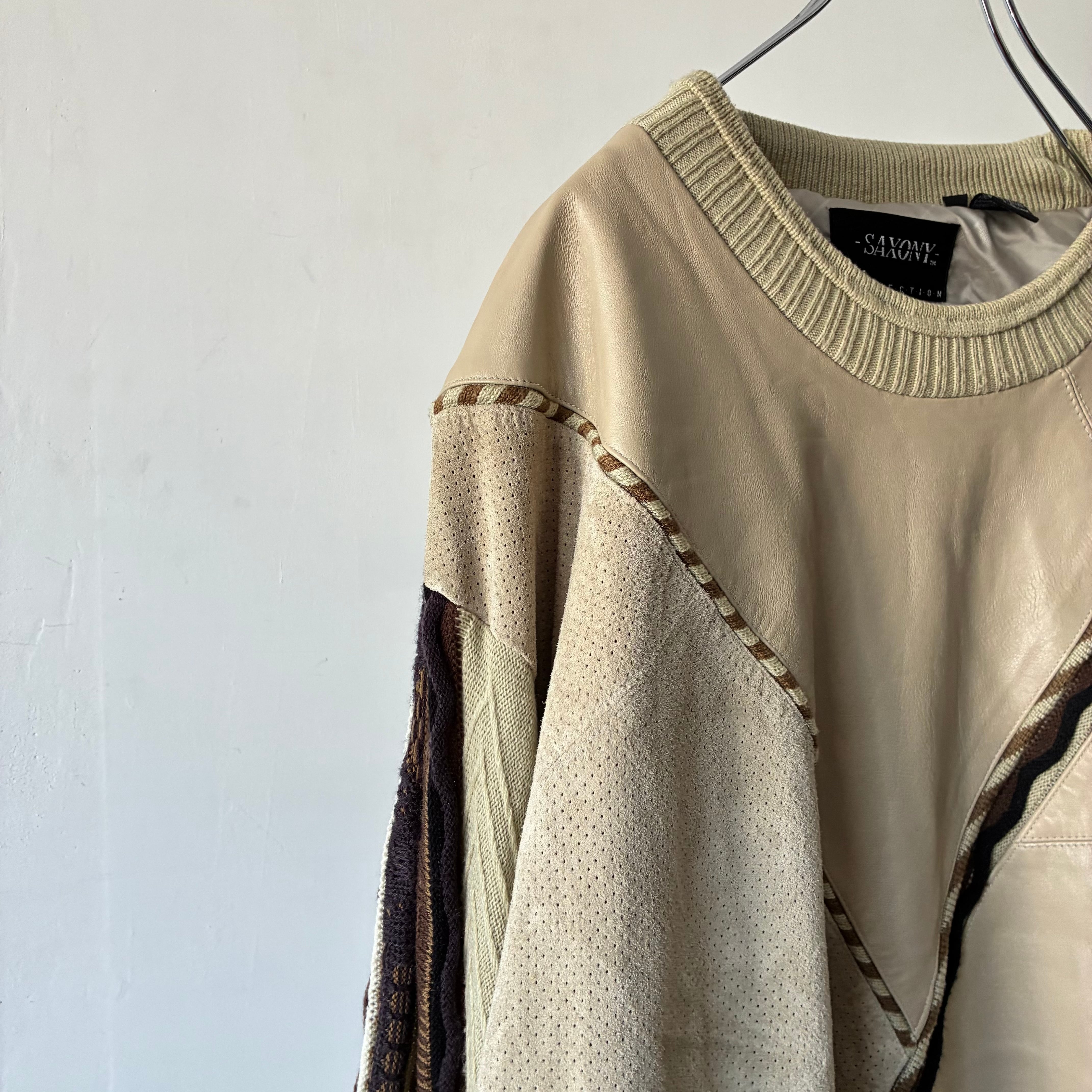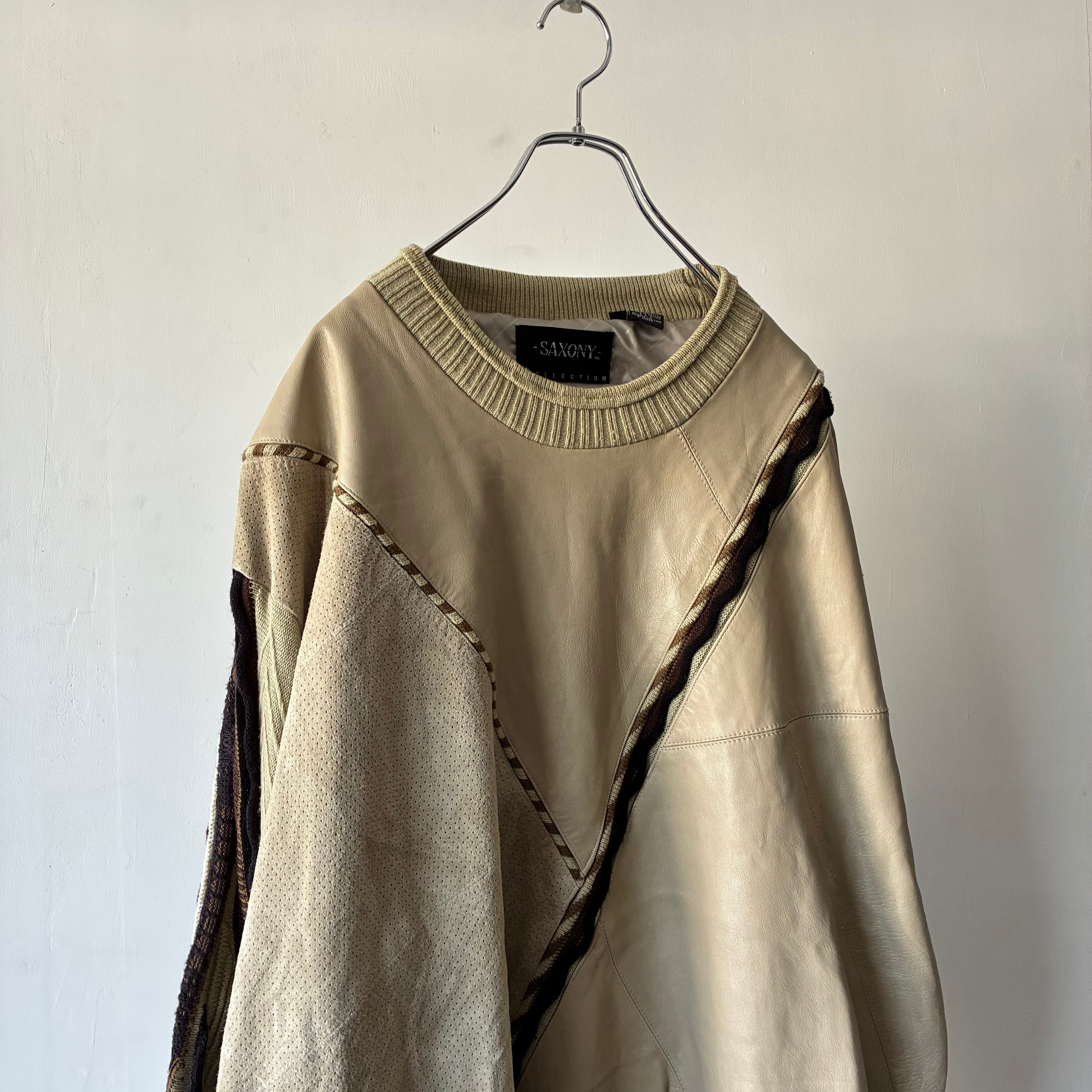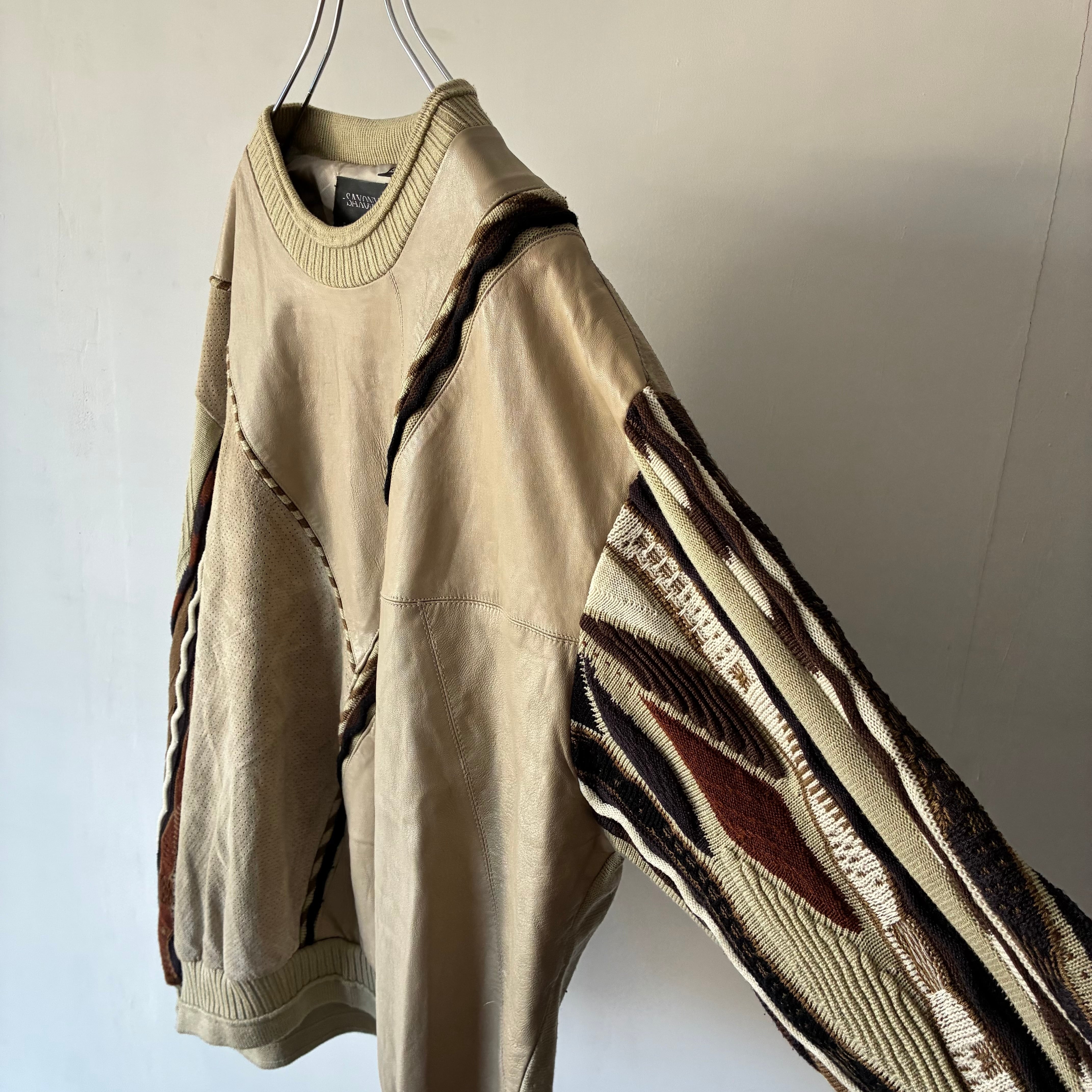 異素材の絶妙なコンビネーションが存在感を放つ、Saxony Collectionのレザー切り替え3dニット