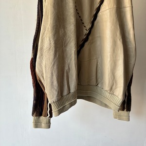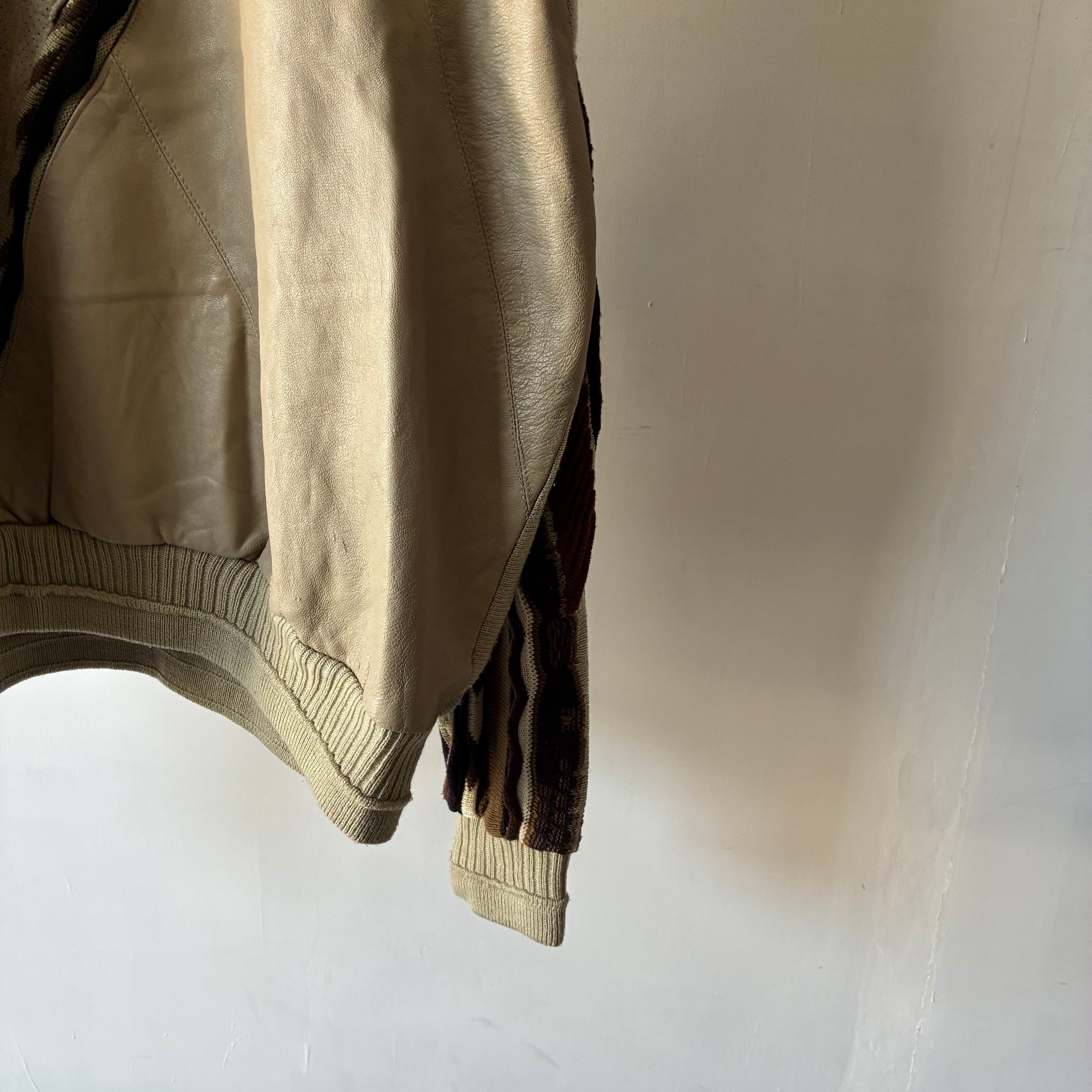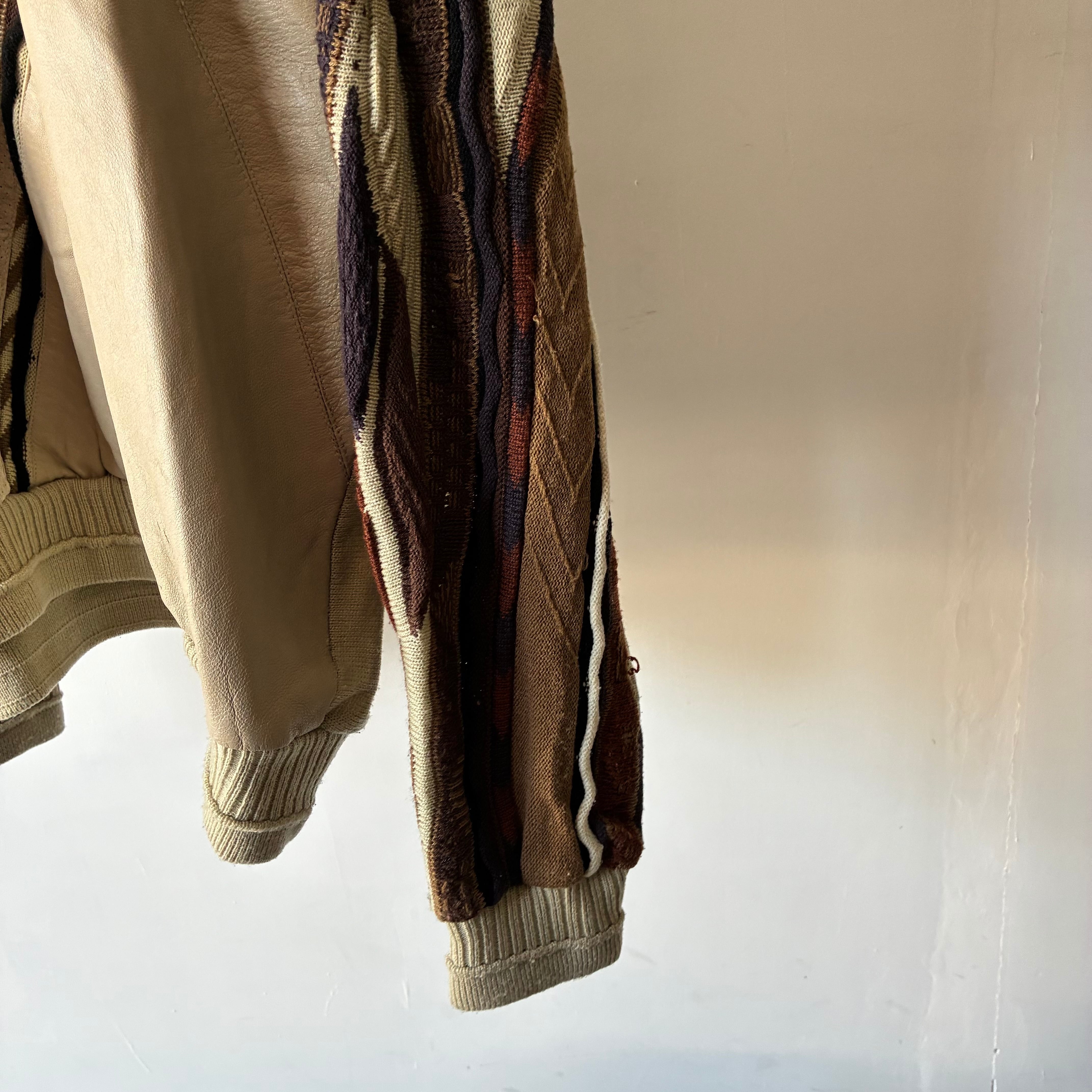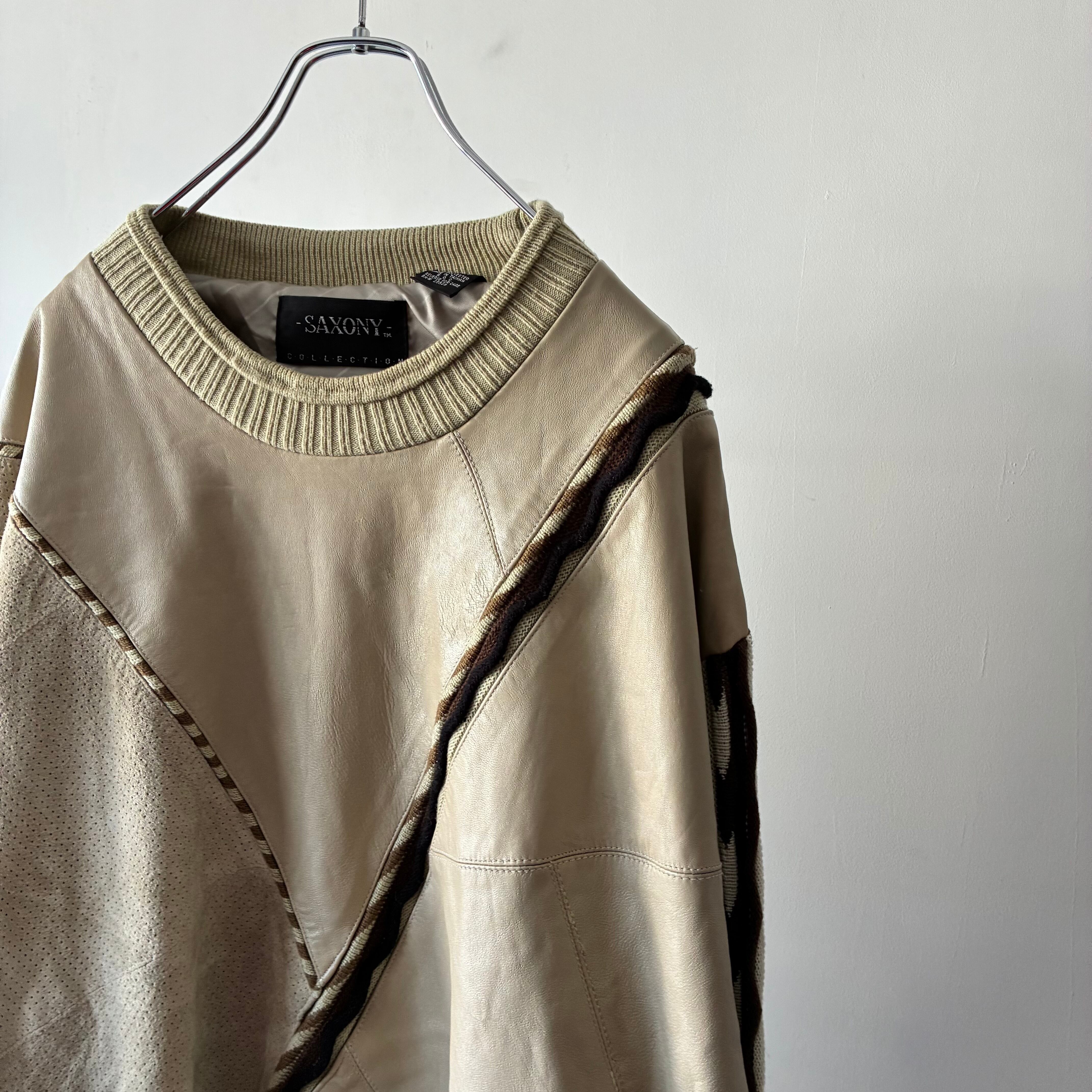 異素材の絶妙なコンビネーションが存在感を放つ、Saxony Collectionのレザー切り替え3dニット