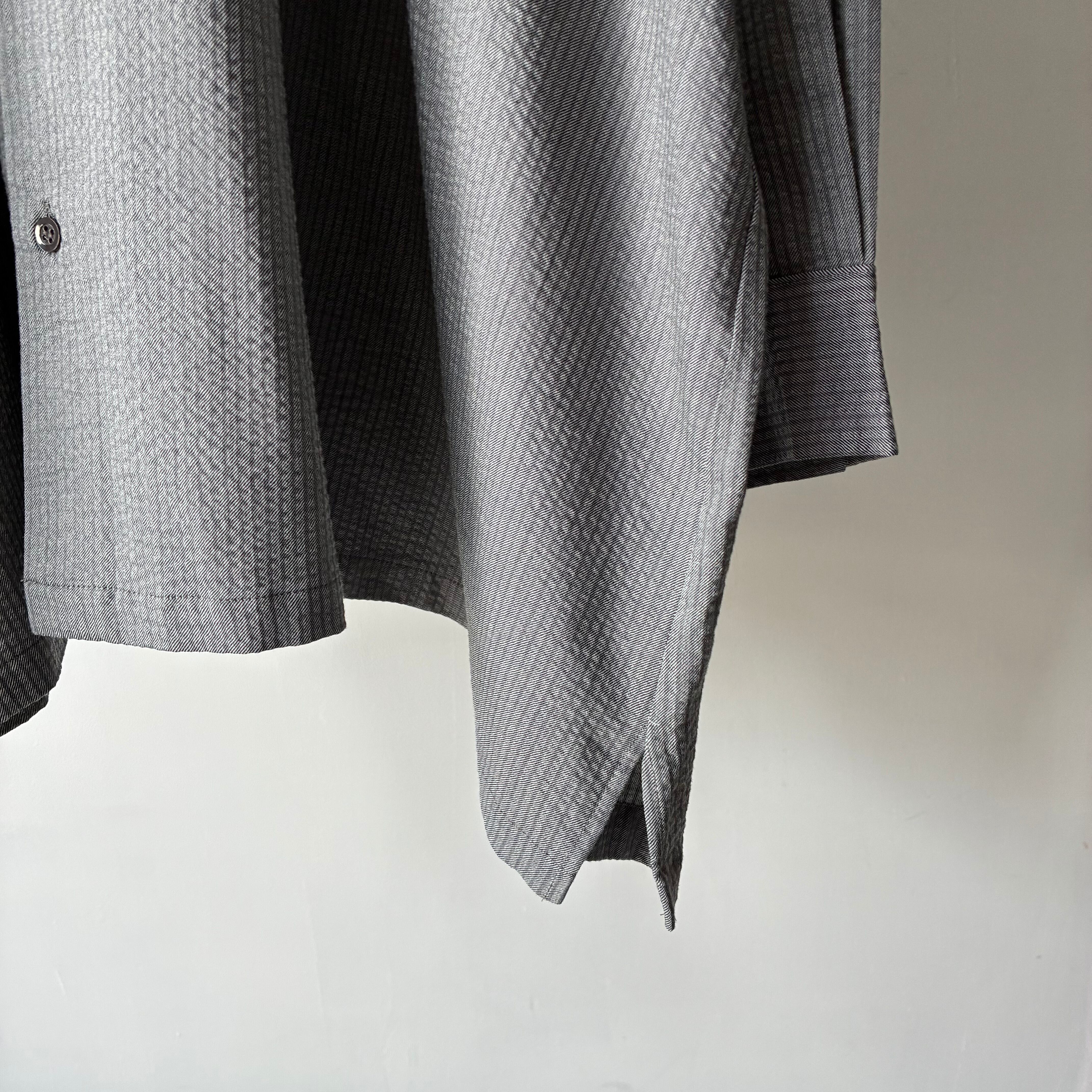 生地には細かいテクスチャーのあるグレーのストライプパターンを採用し、光の加減でニュアンスが変わる表情豊かな仕上がり