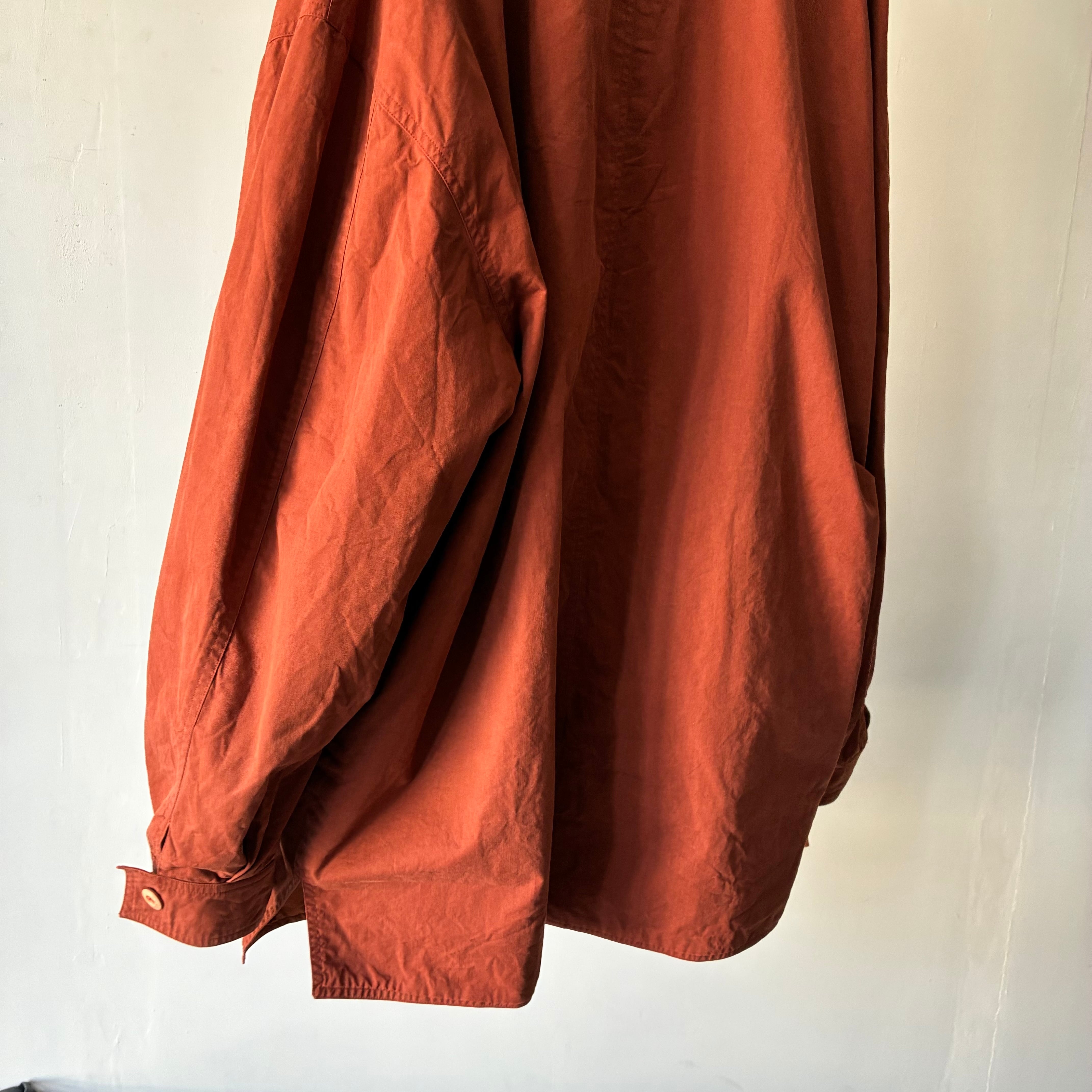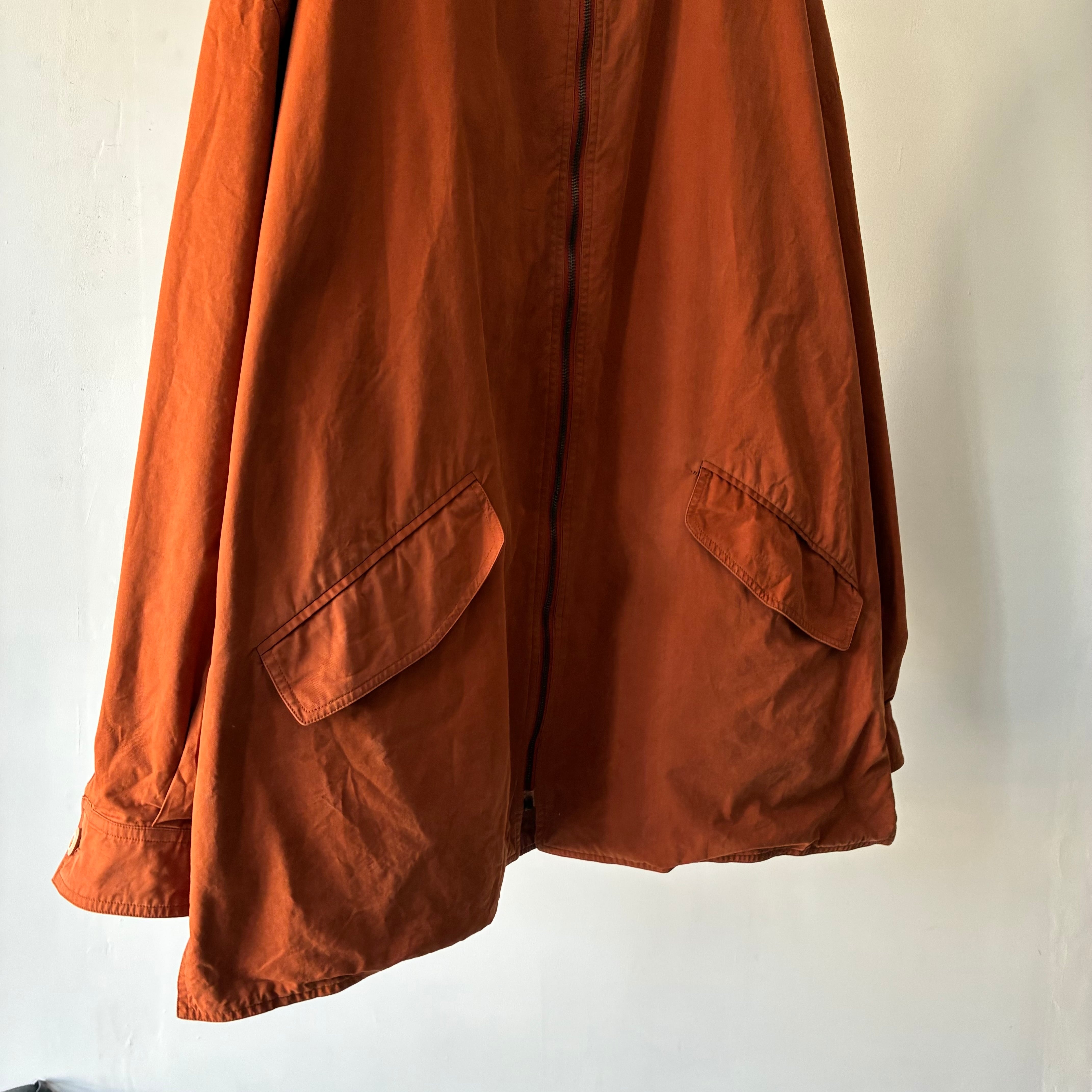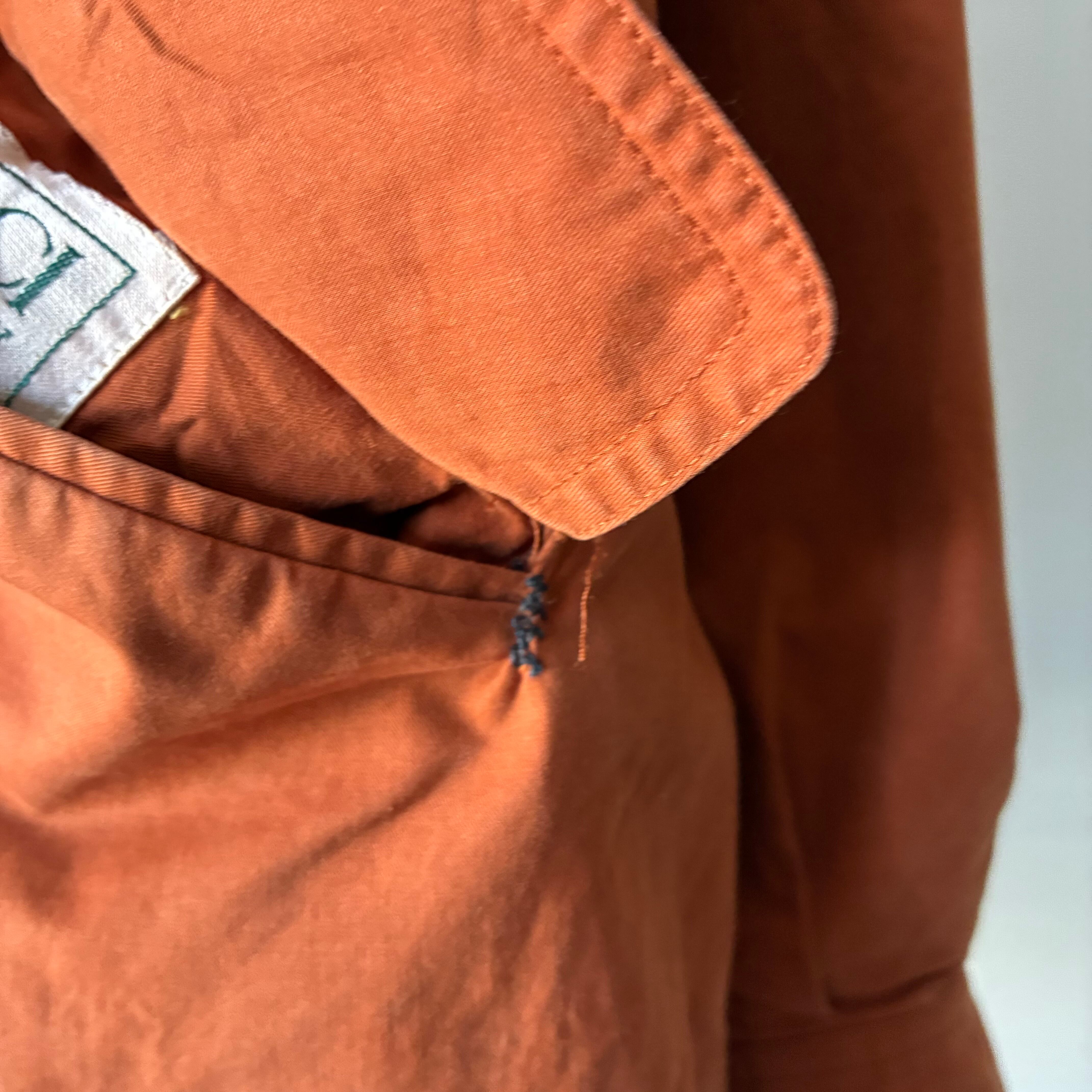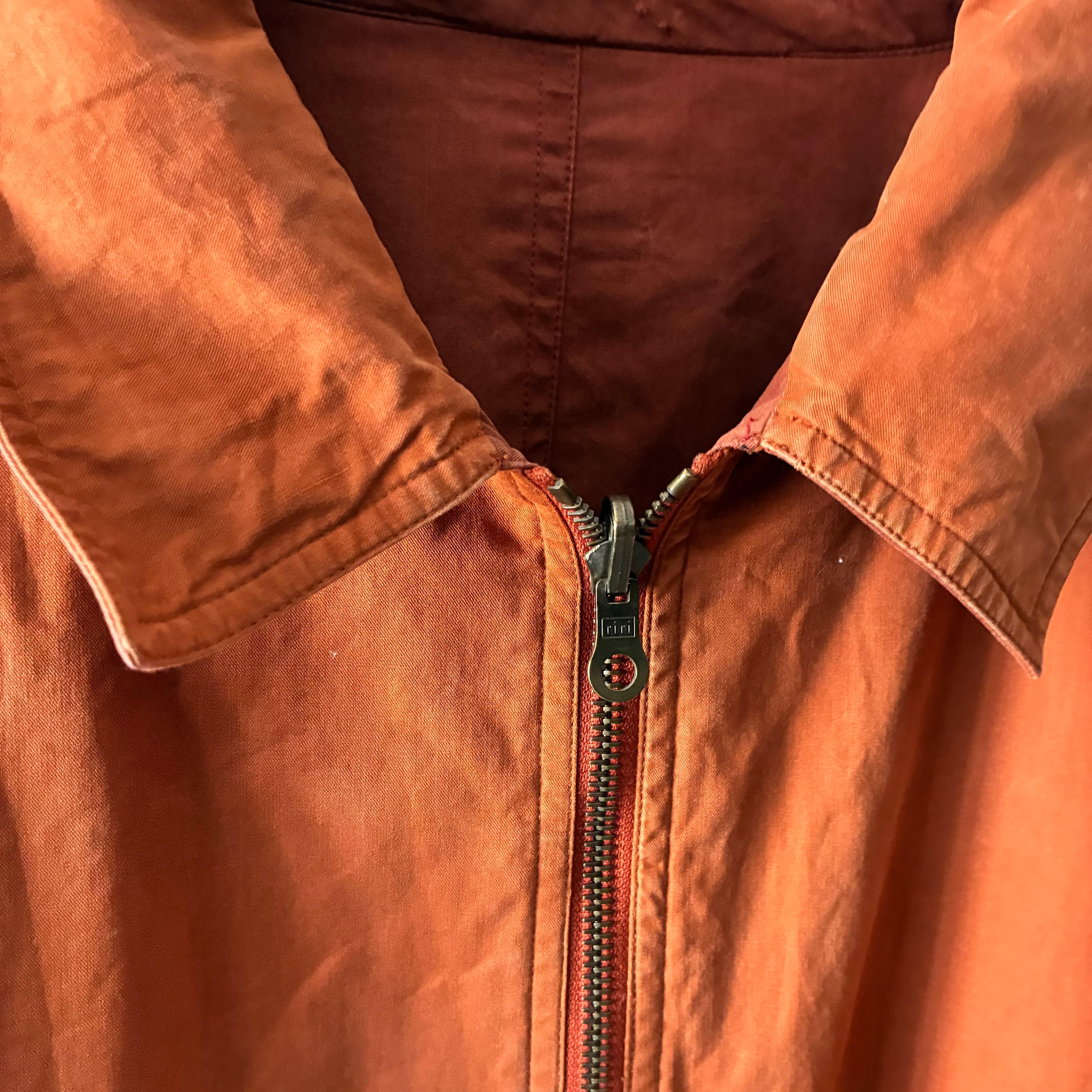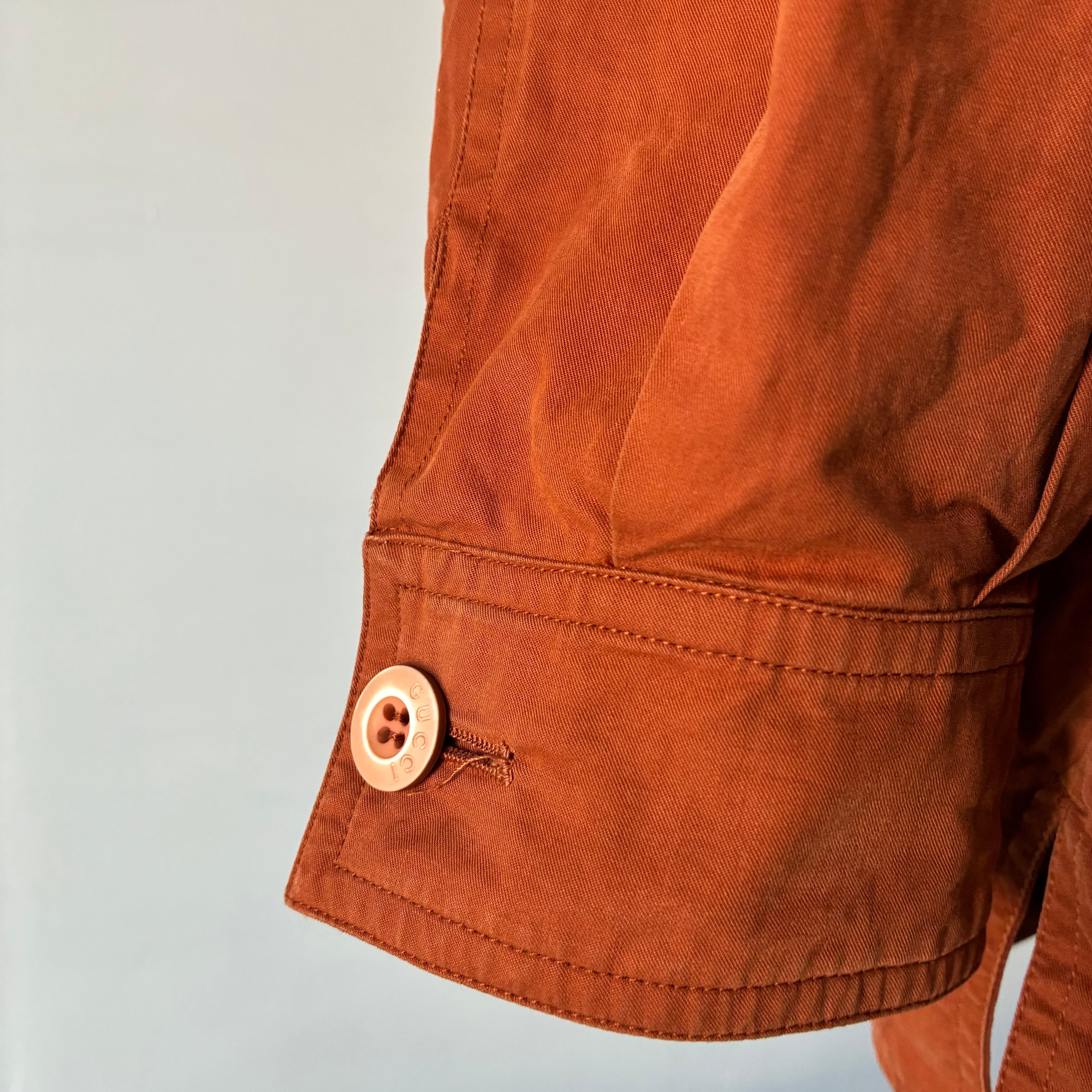深みのあるオレンジブラウンカラーが印象的な一着で、両面着用可能なリバーシブル仕様