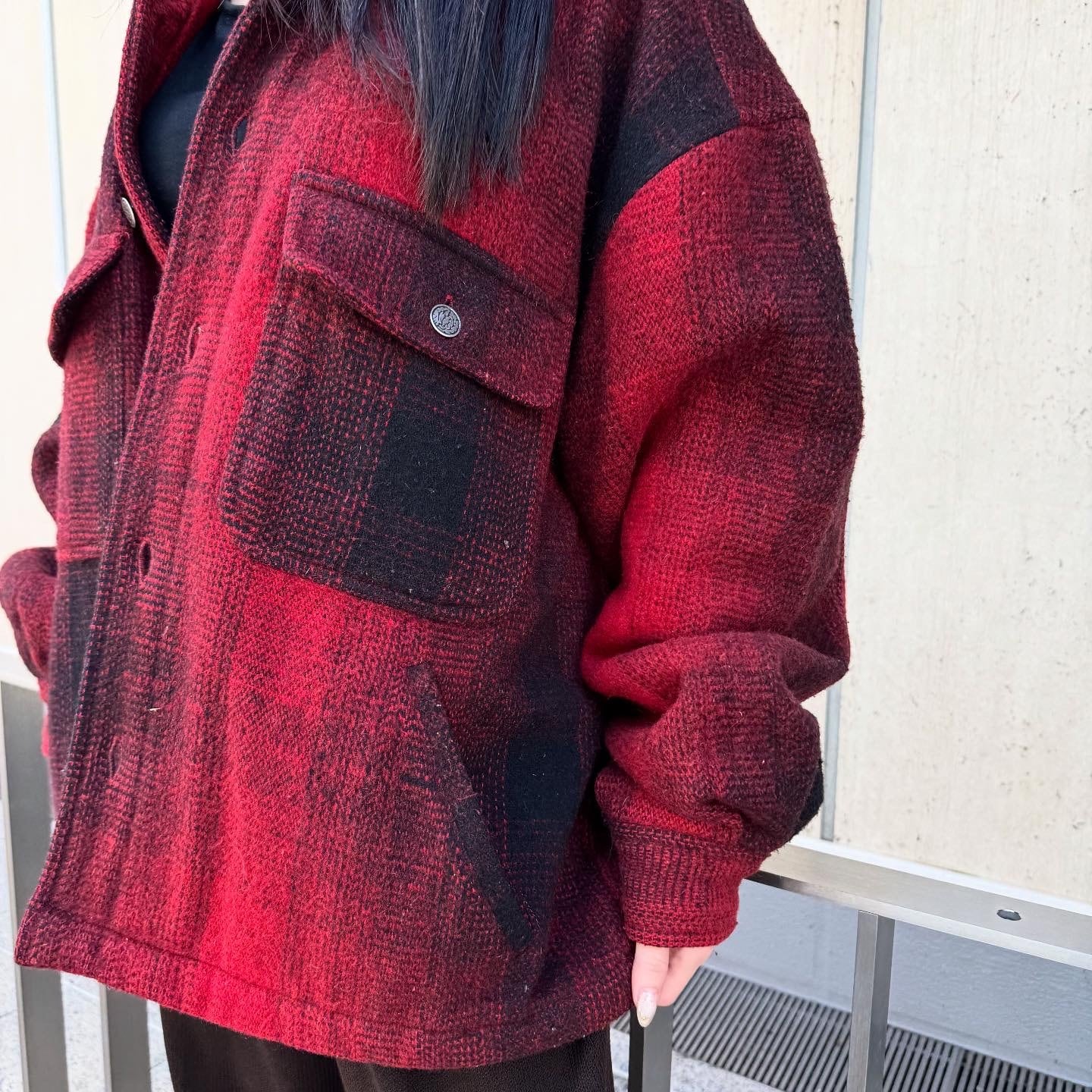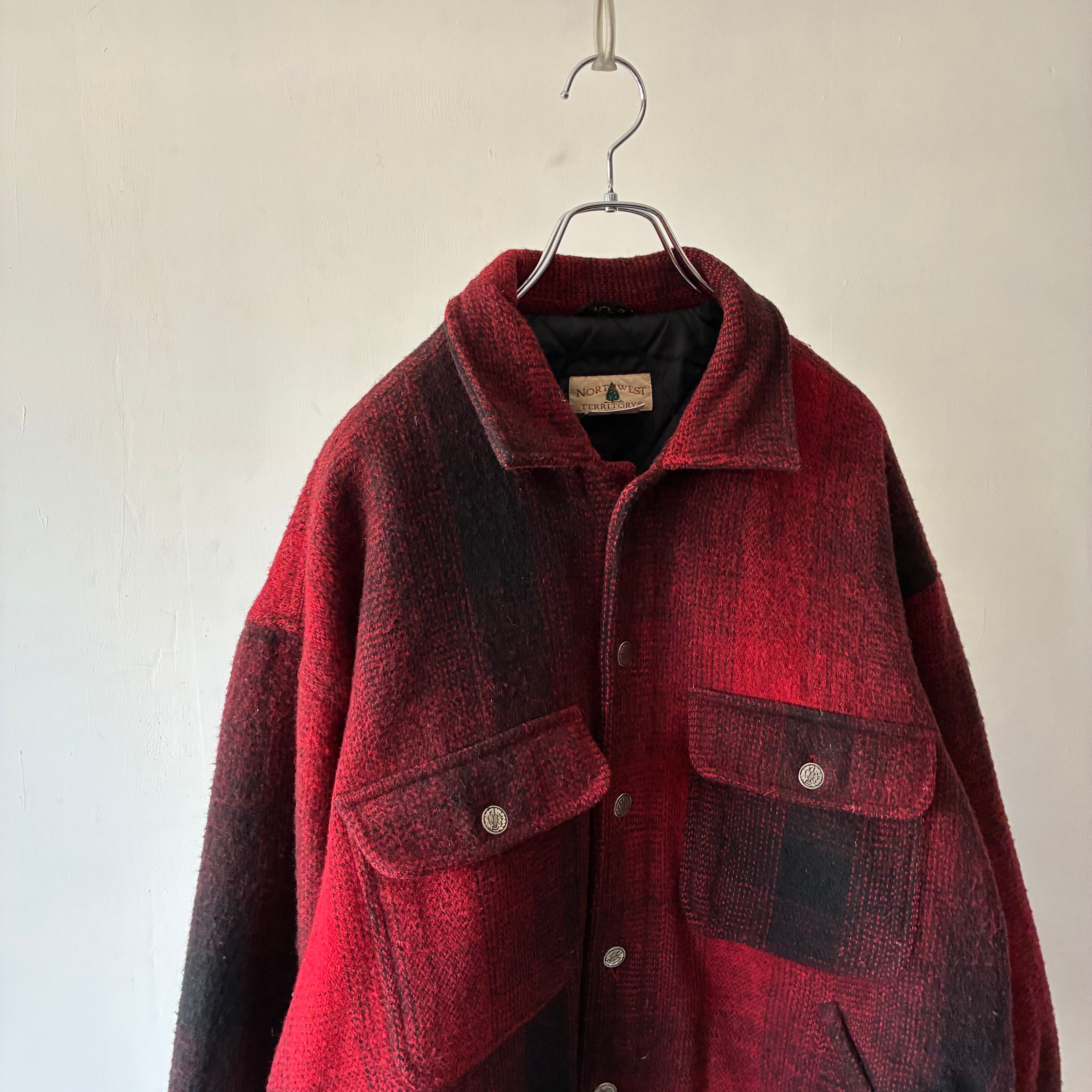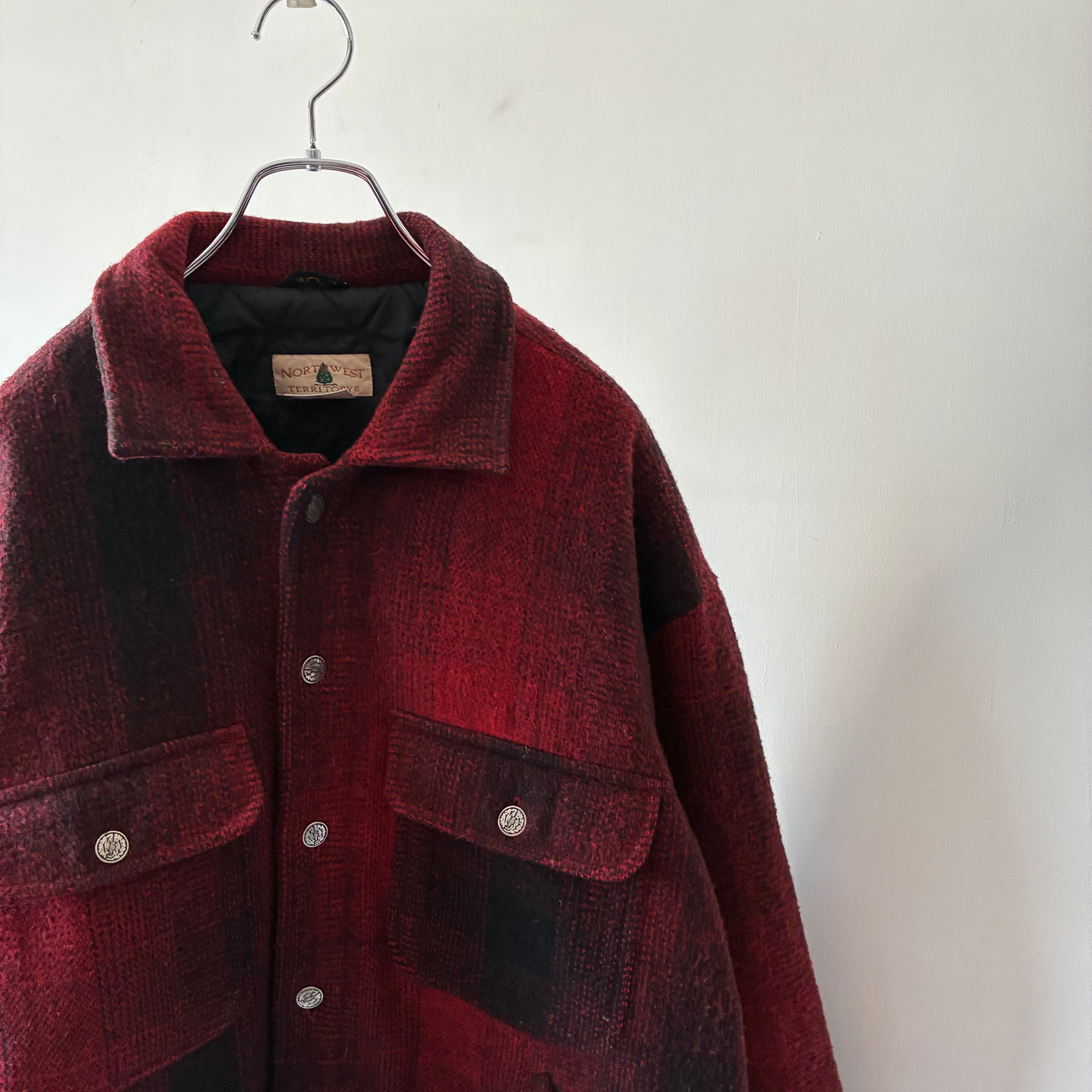 赤×黒の大胆なブロックチェック柄が印象的なNORTH WEST TERRITORYの珍しいウールジャケット