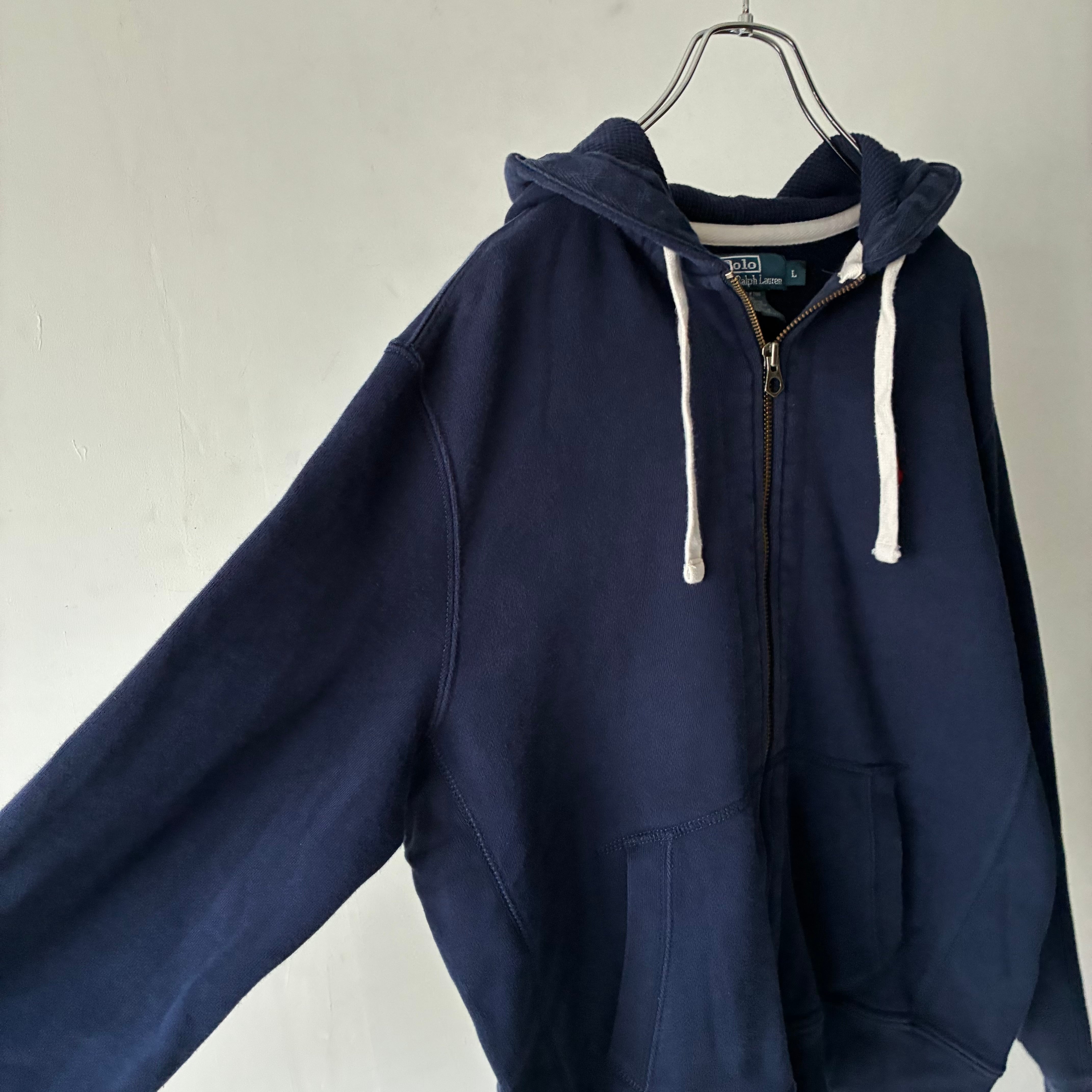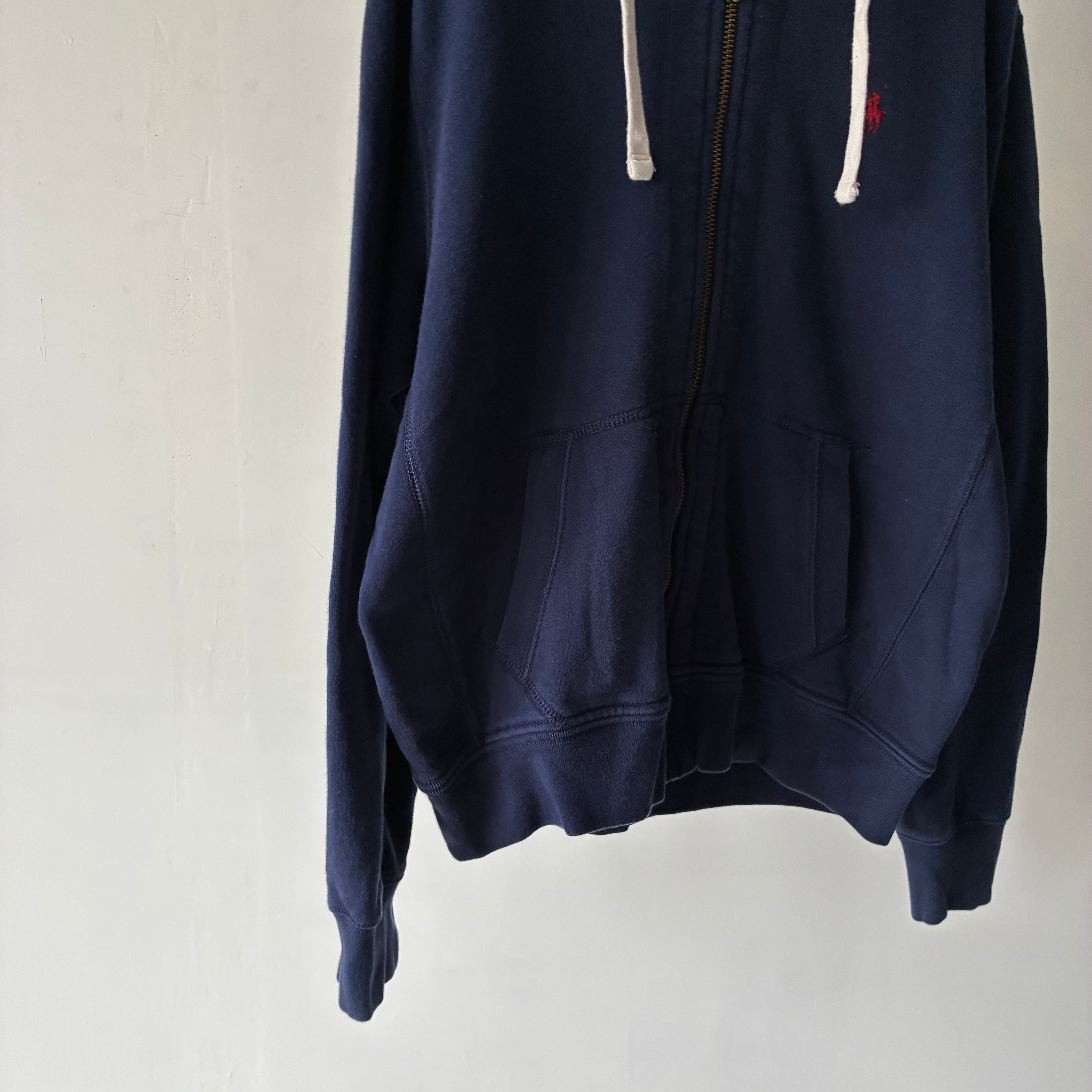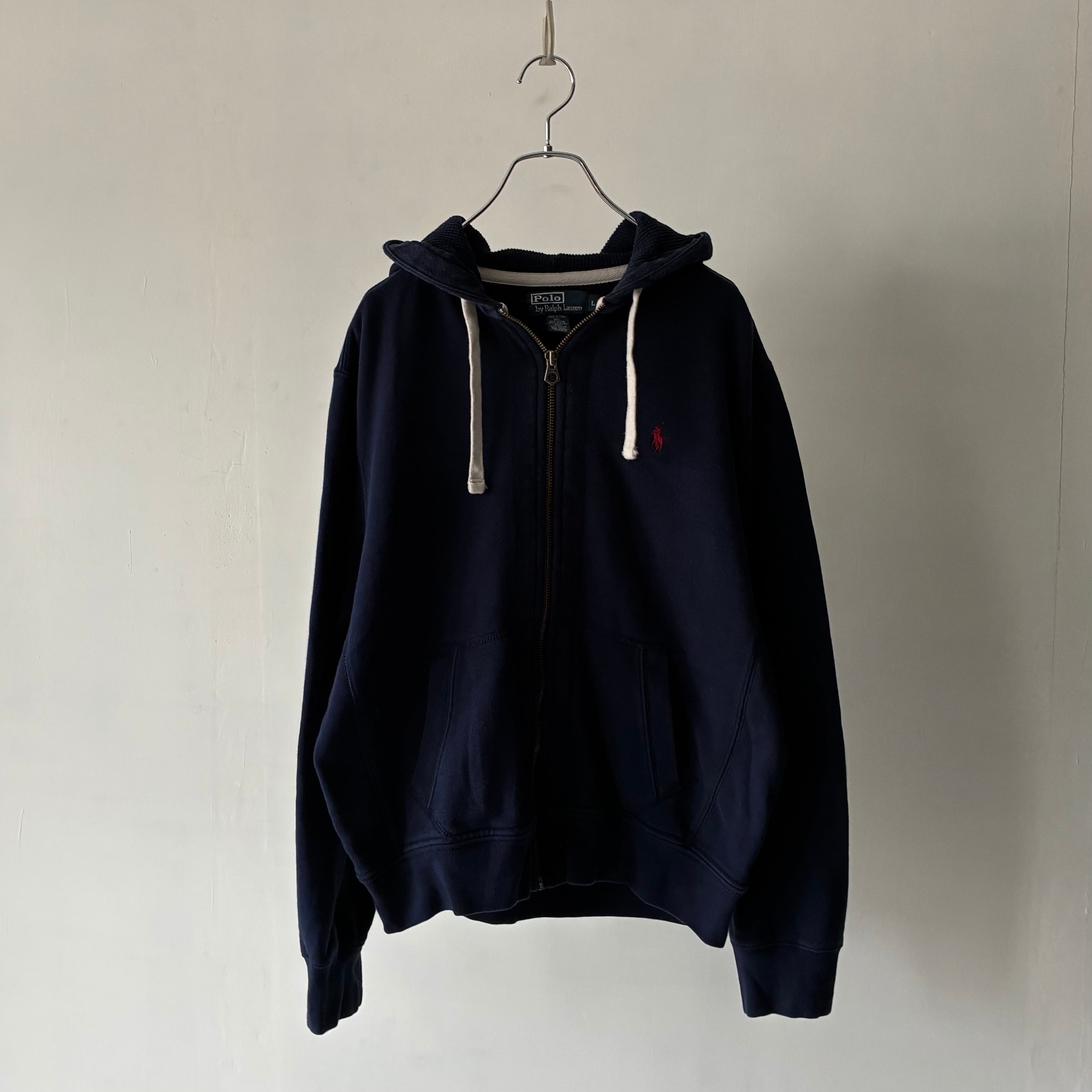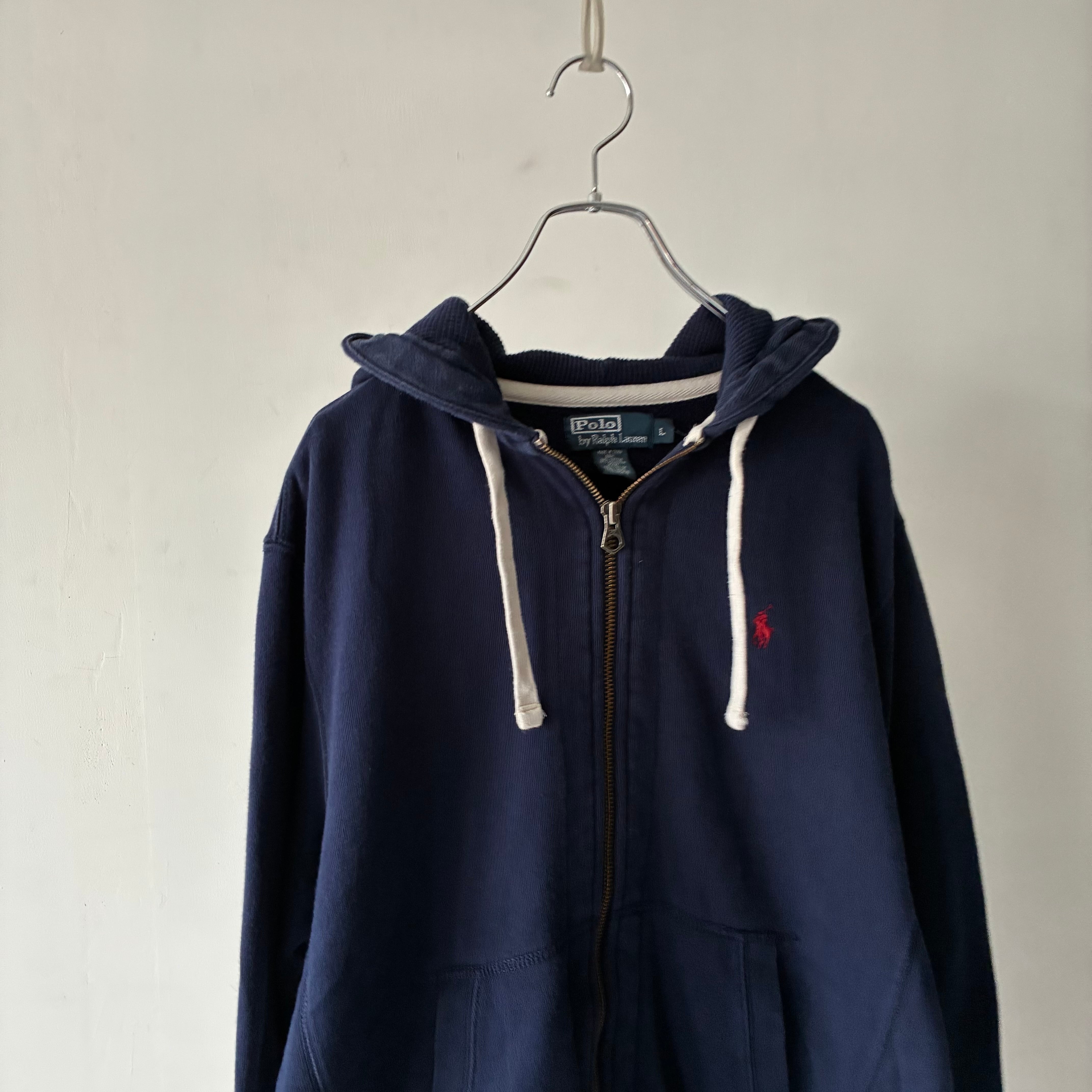 ネイビーカラーを基調に、左胸の赤いポロプレイヤー刺繍が映えるデザイン