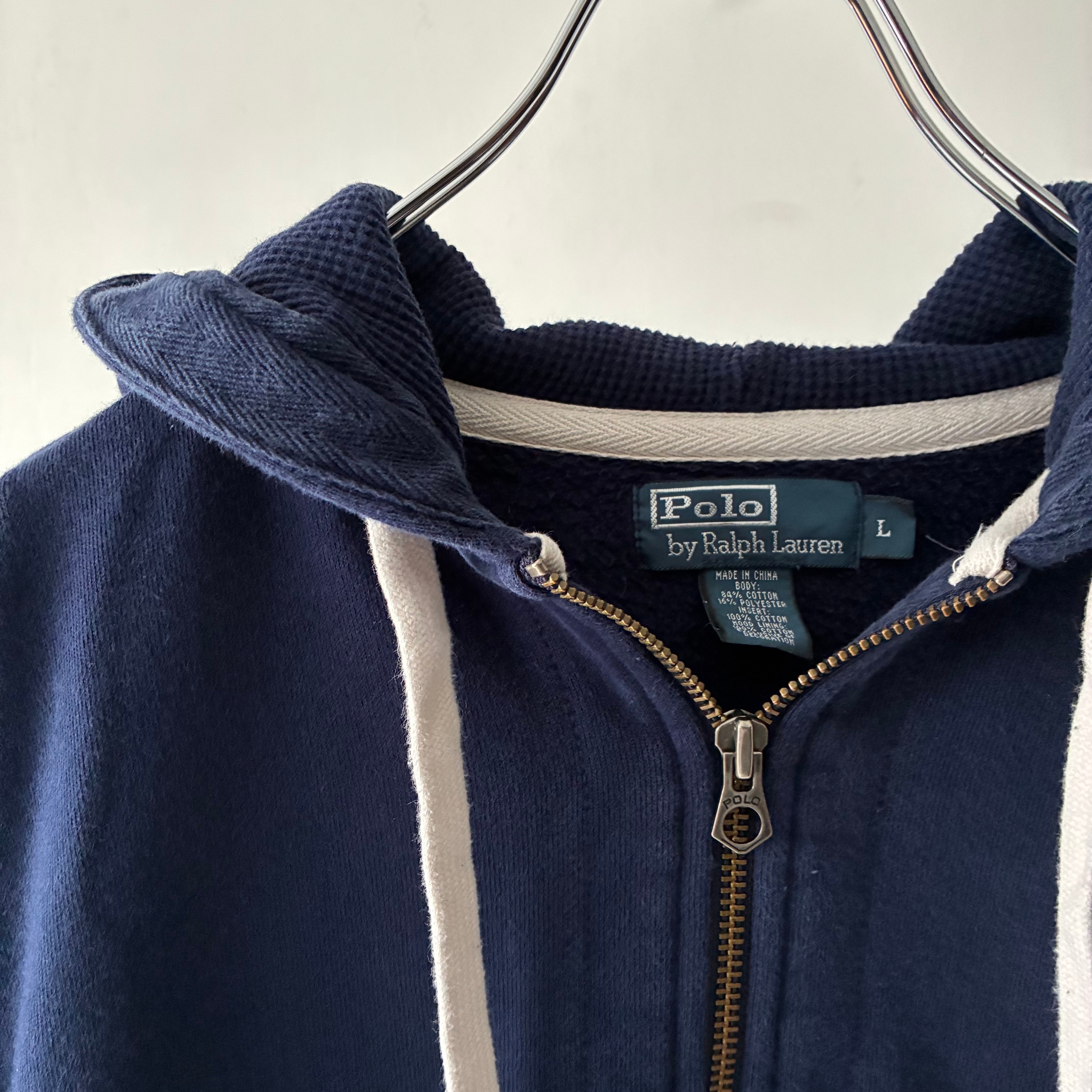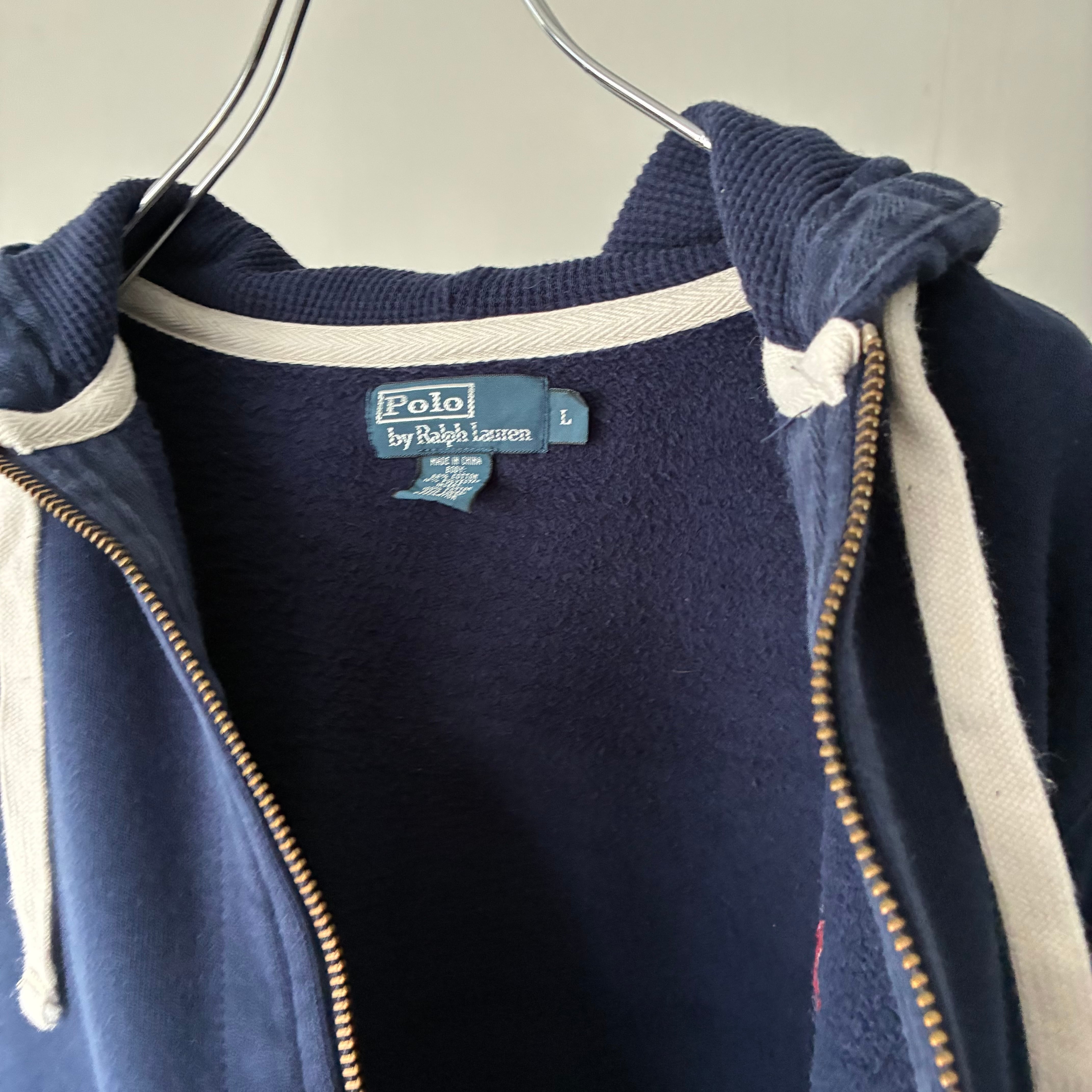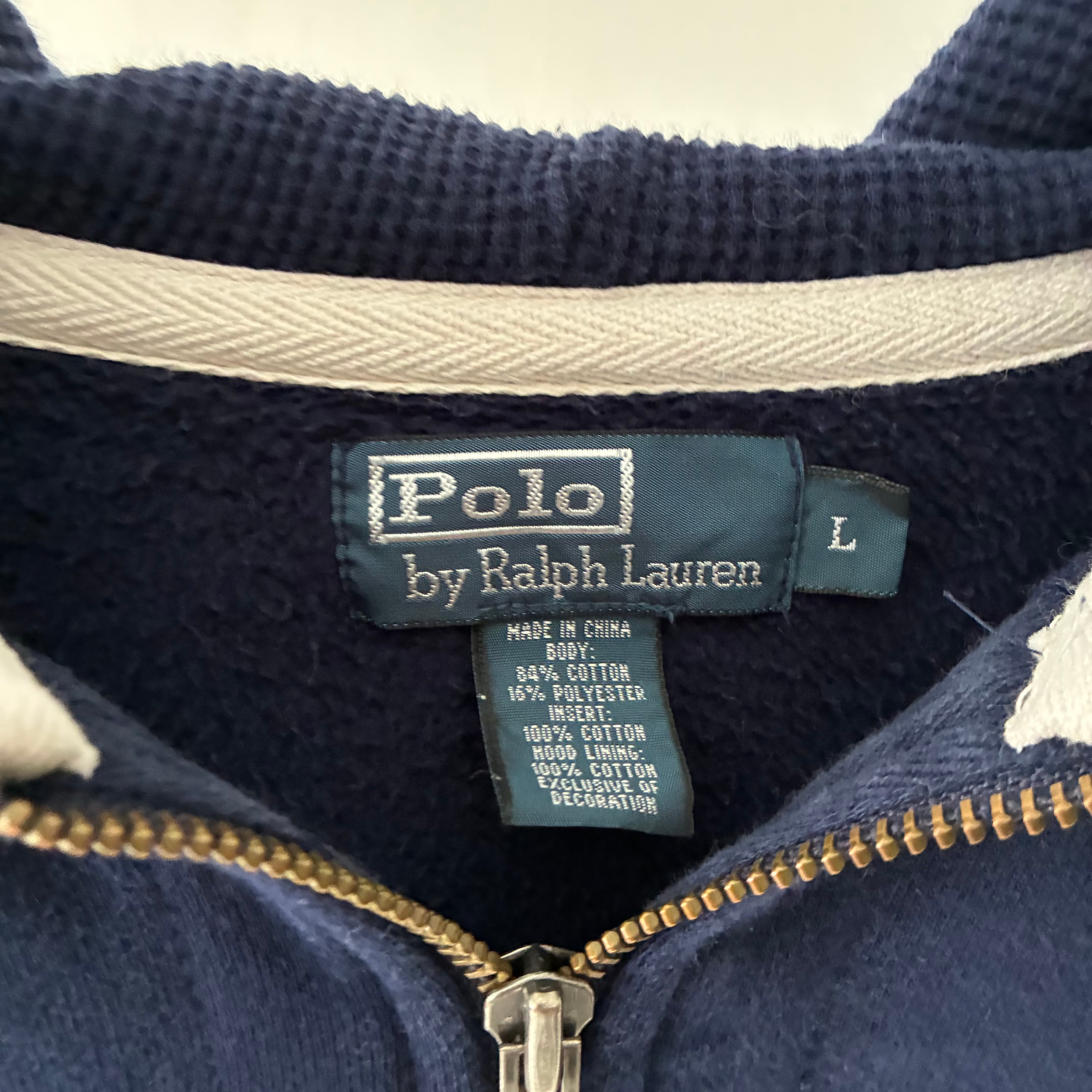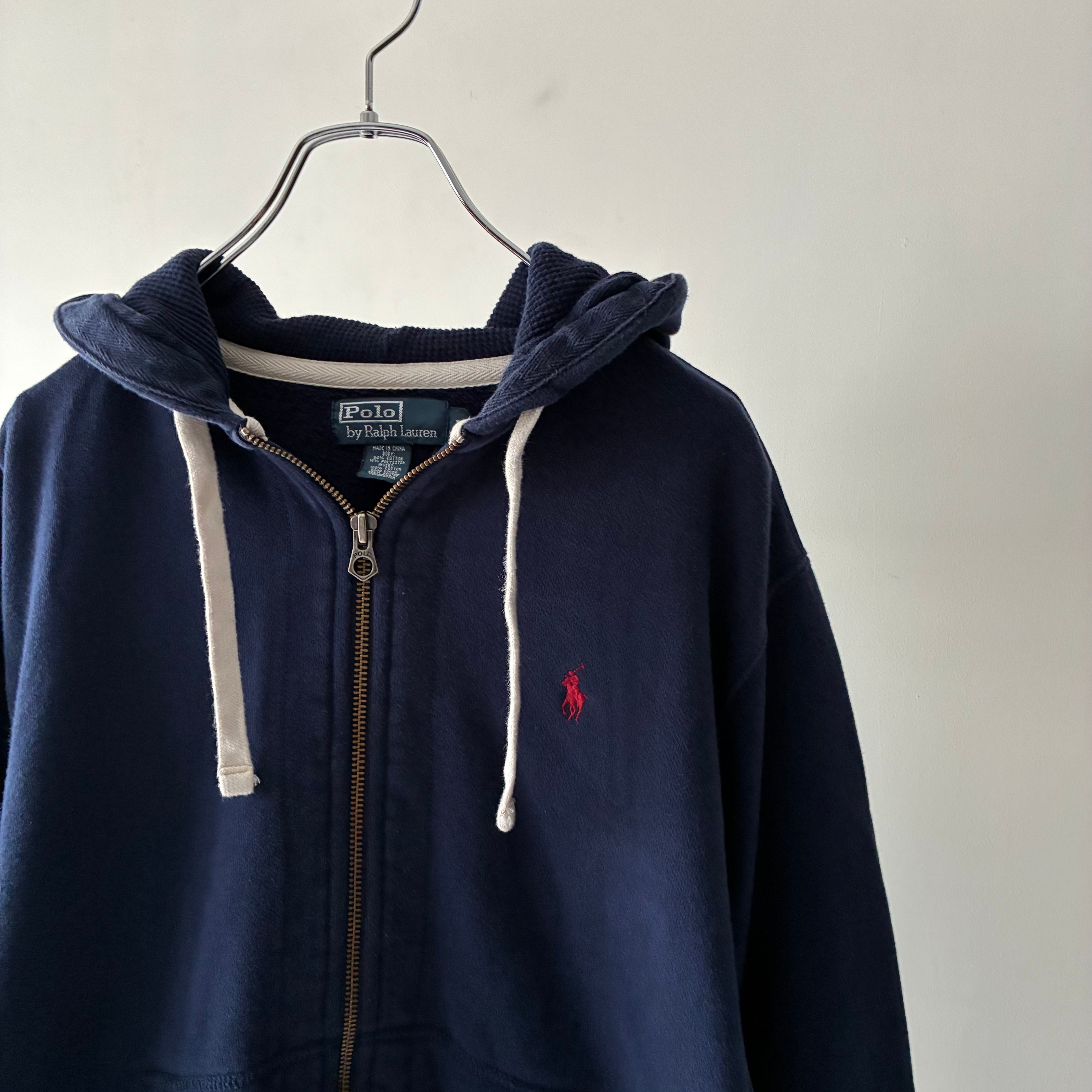ネイビーカラーを基調に、左胸の赤いポロプレイヤー刺繍が映えるデザイン