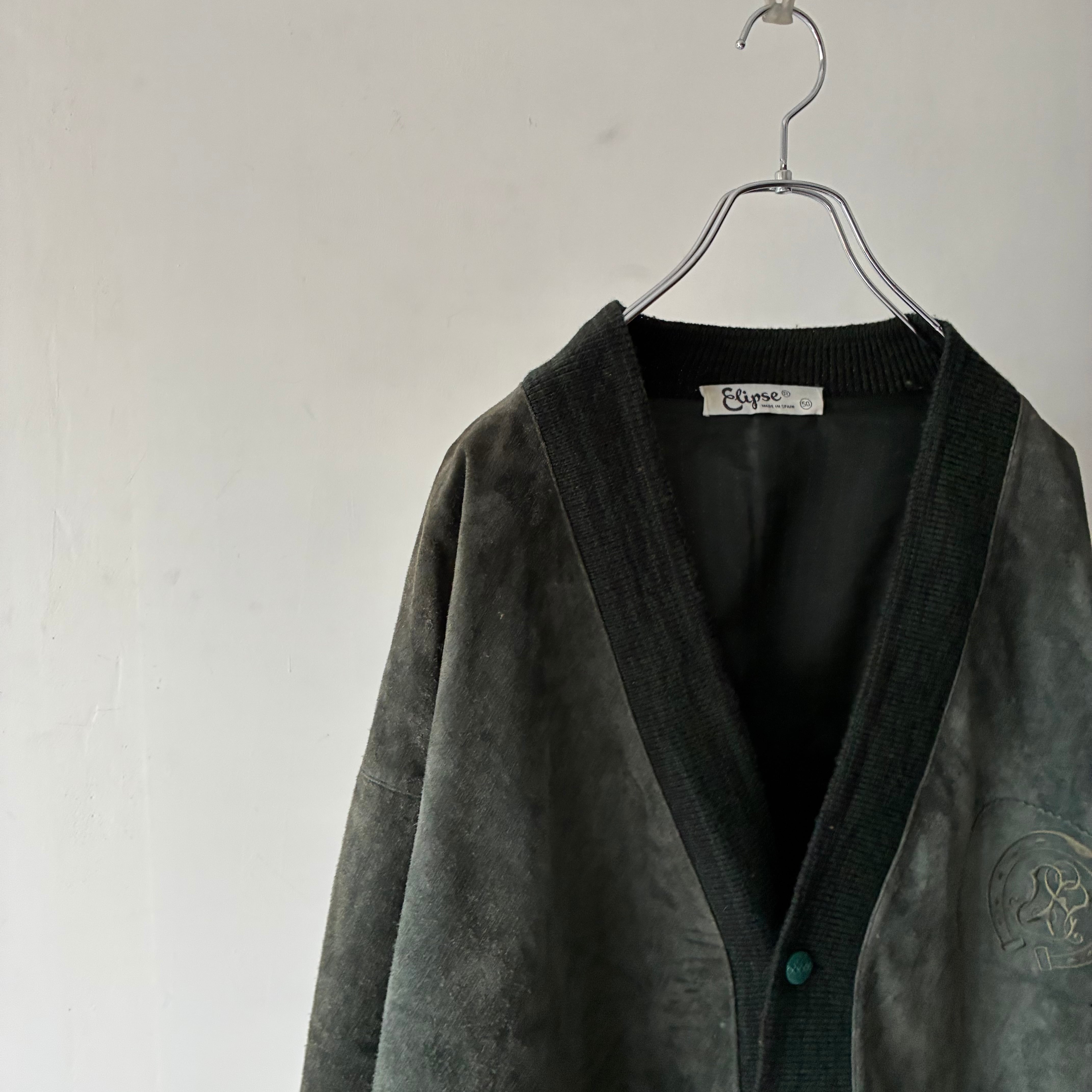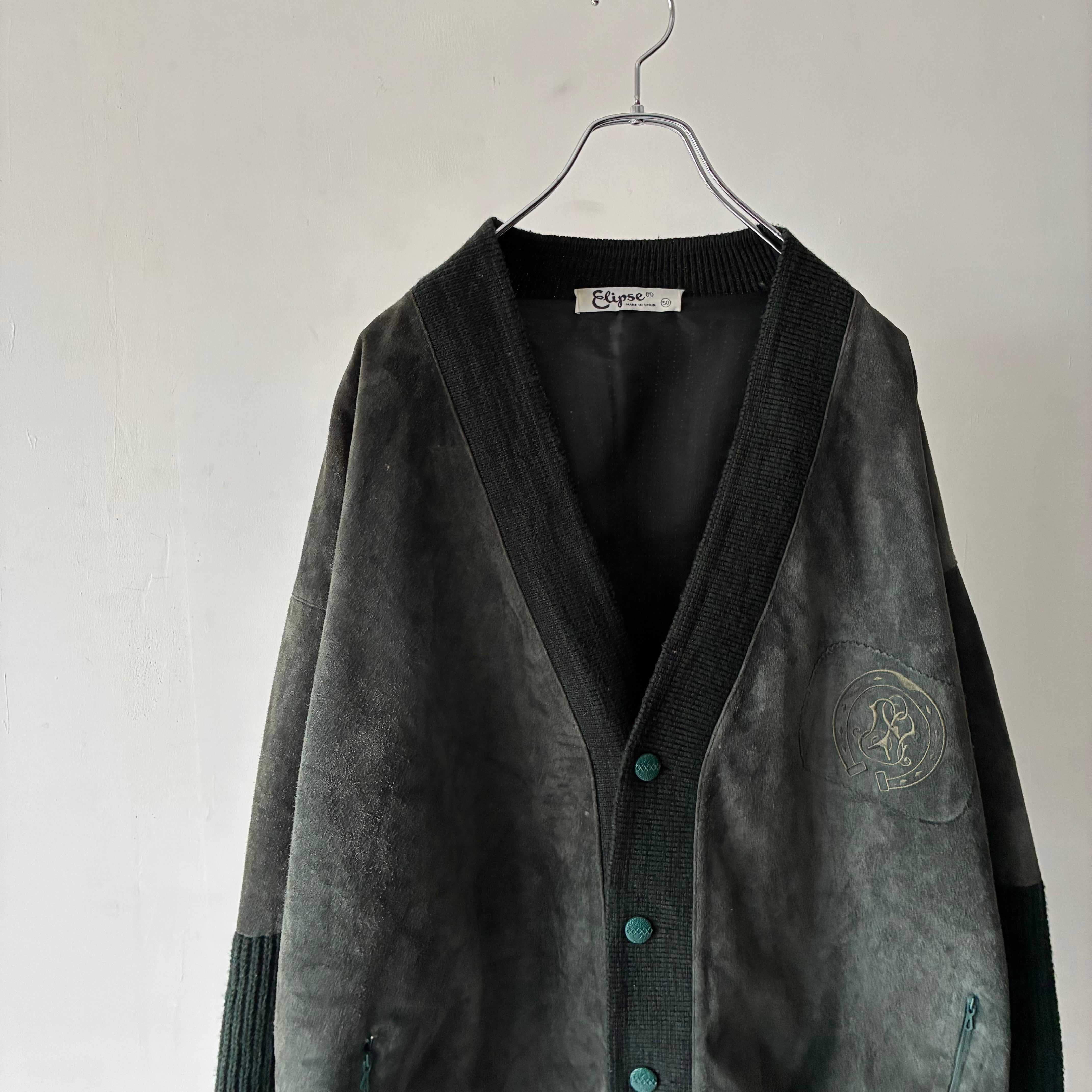 スペイン製 Elipseのスエード切り替えニットカーディガンブルゾン