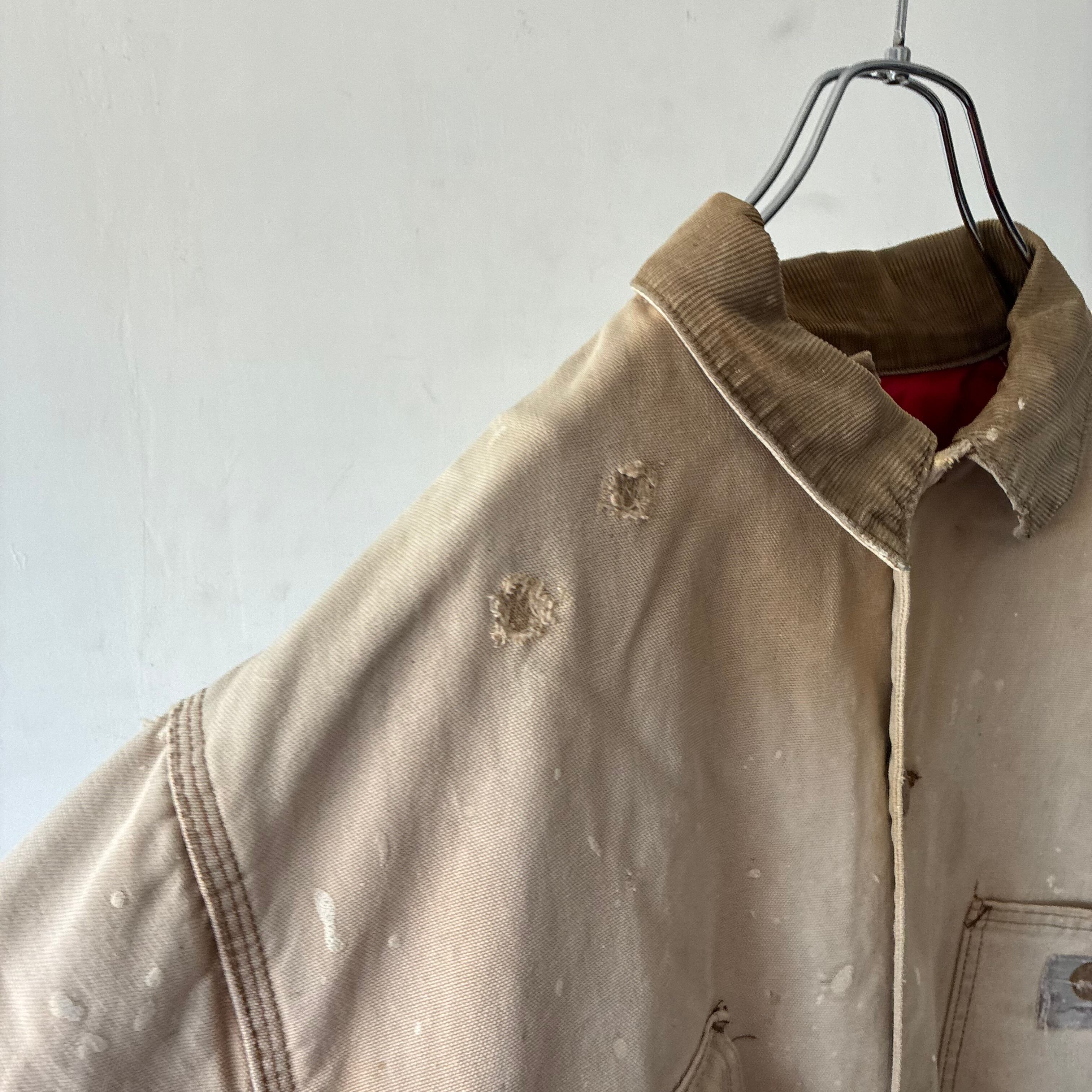 コーデュロイ襟、トリプルステッチ、刻印入りメタルボタンなど、当時のCarharttらしいディテール