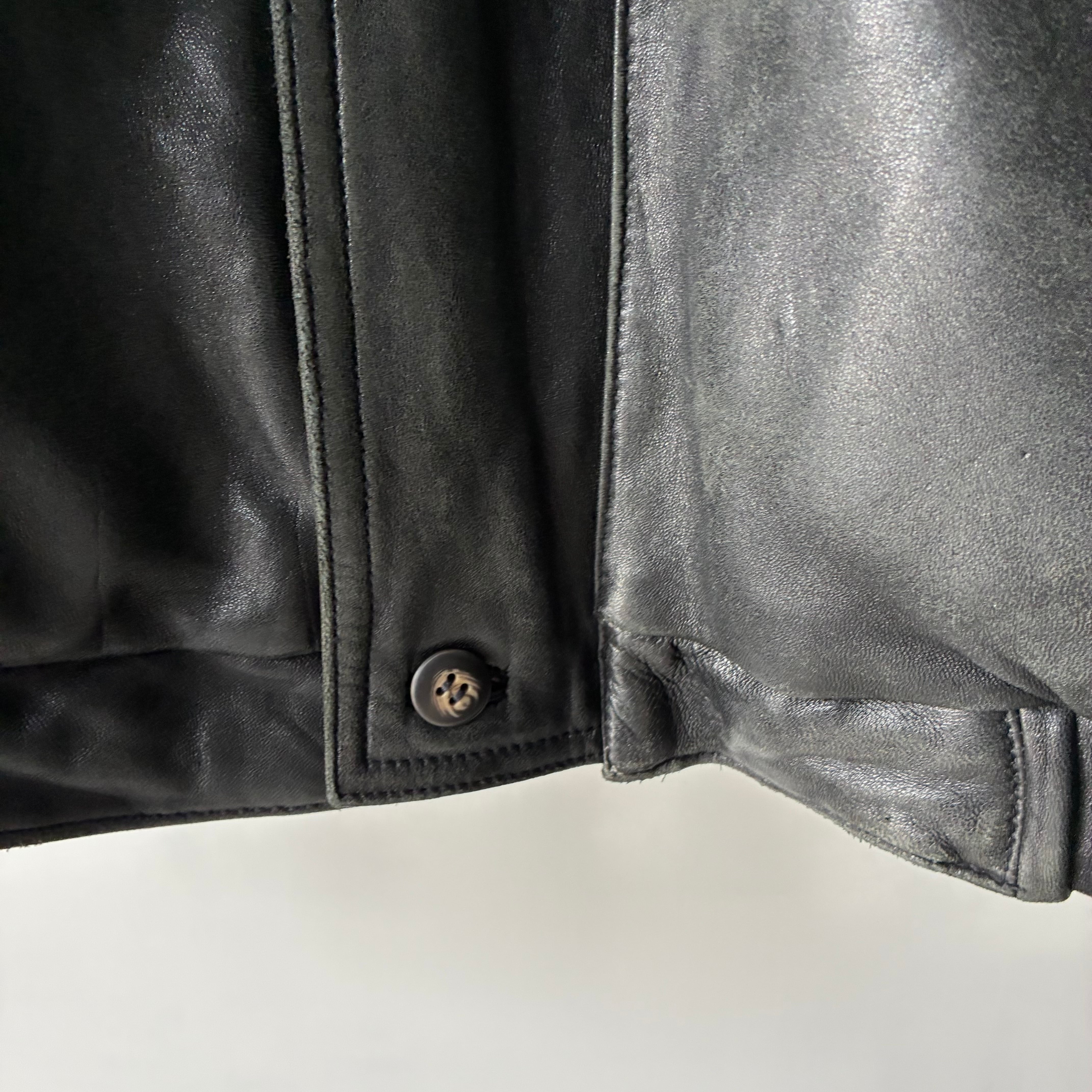 肉厚で上質な本革(Genuine Leather)を使用し、なめらかで深みのある光沢感が魅力の一着
