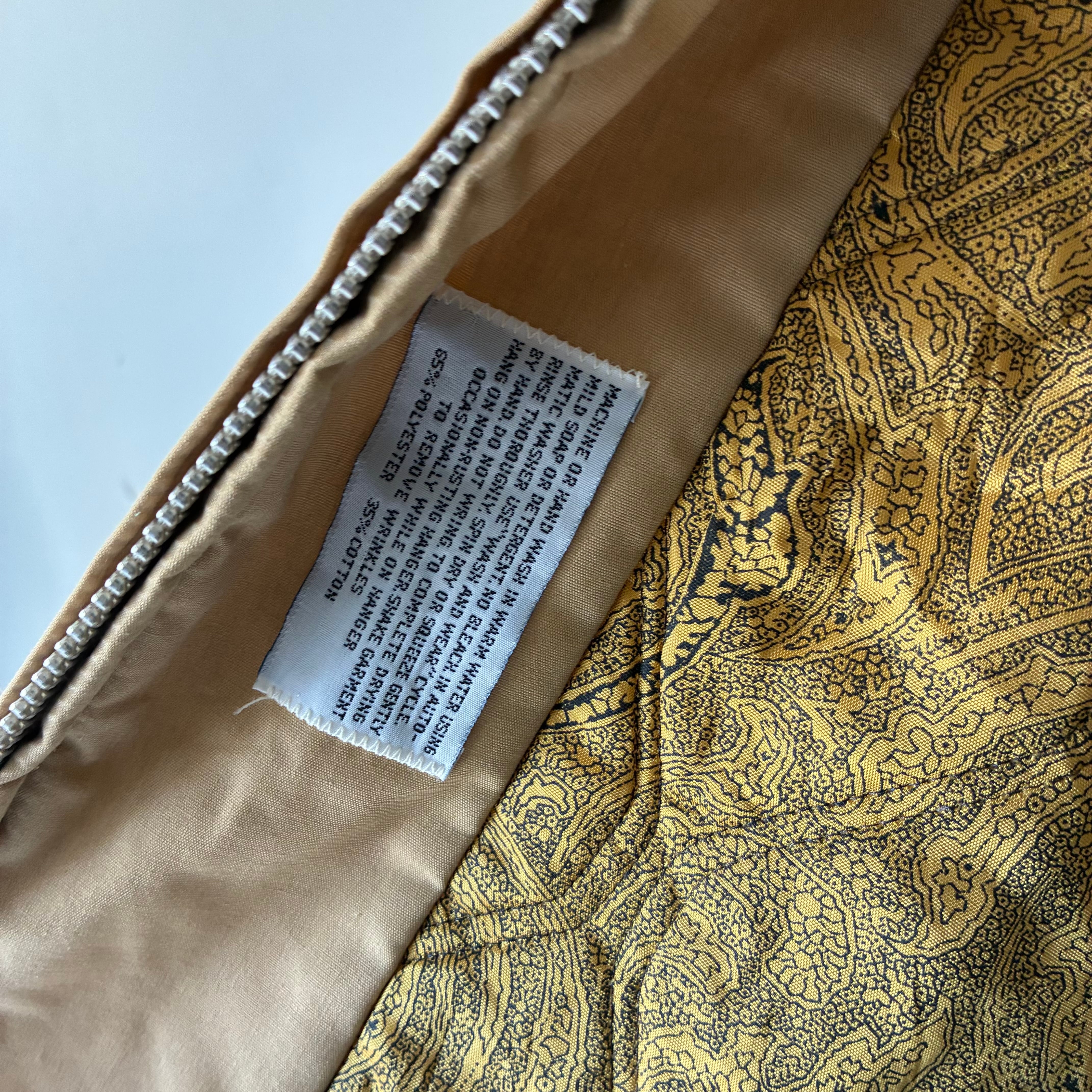 裏地はペイズリー柄、中綿入りのキルティング仕様