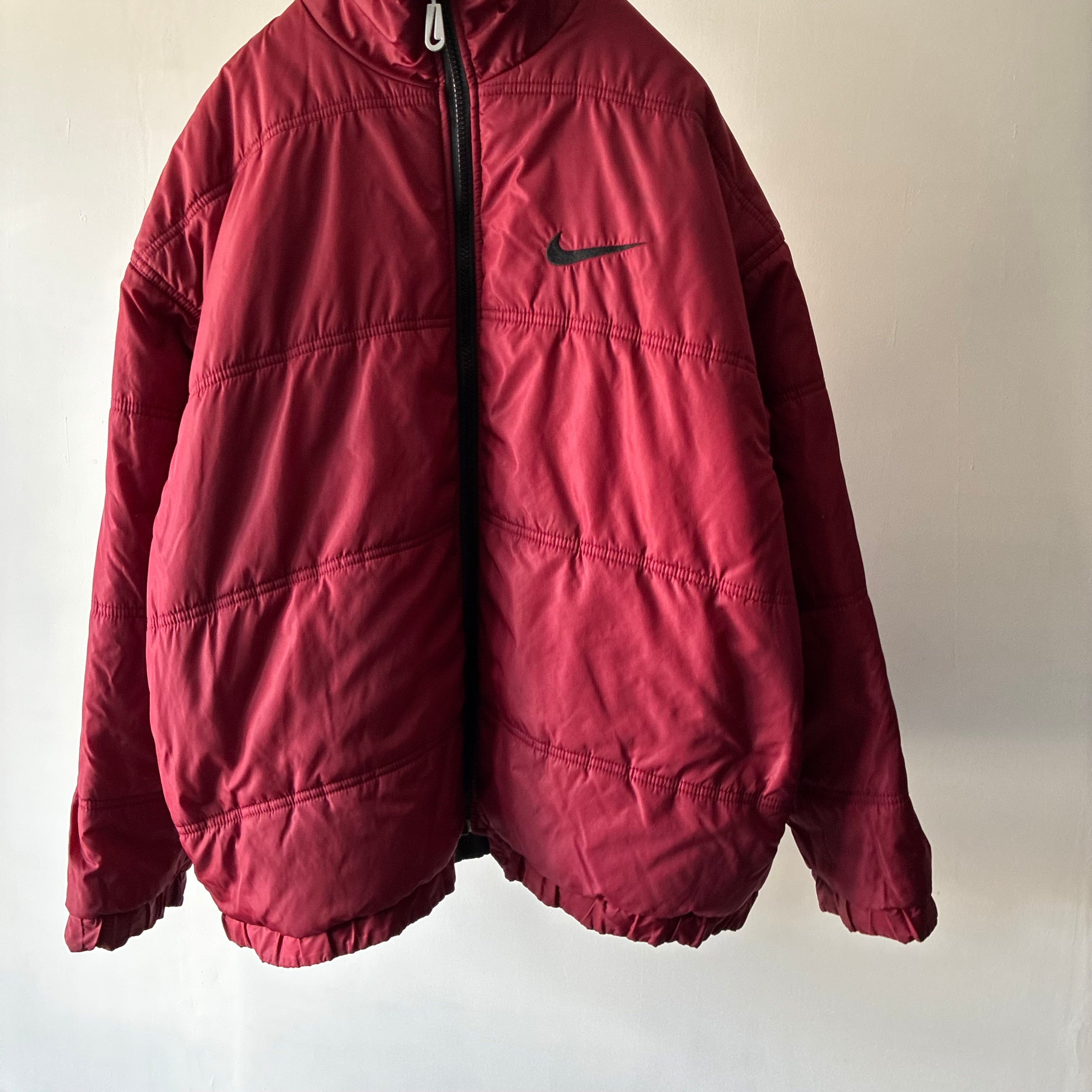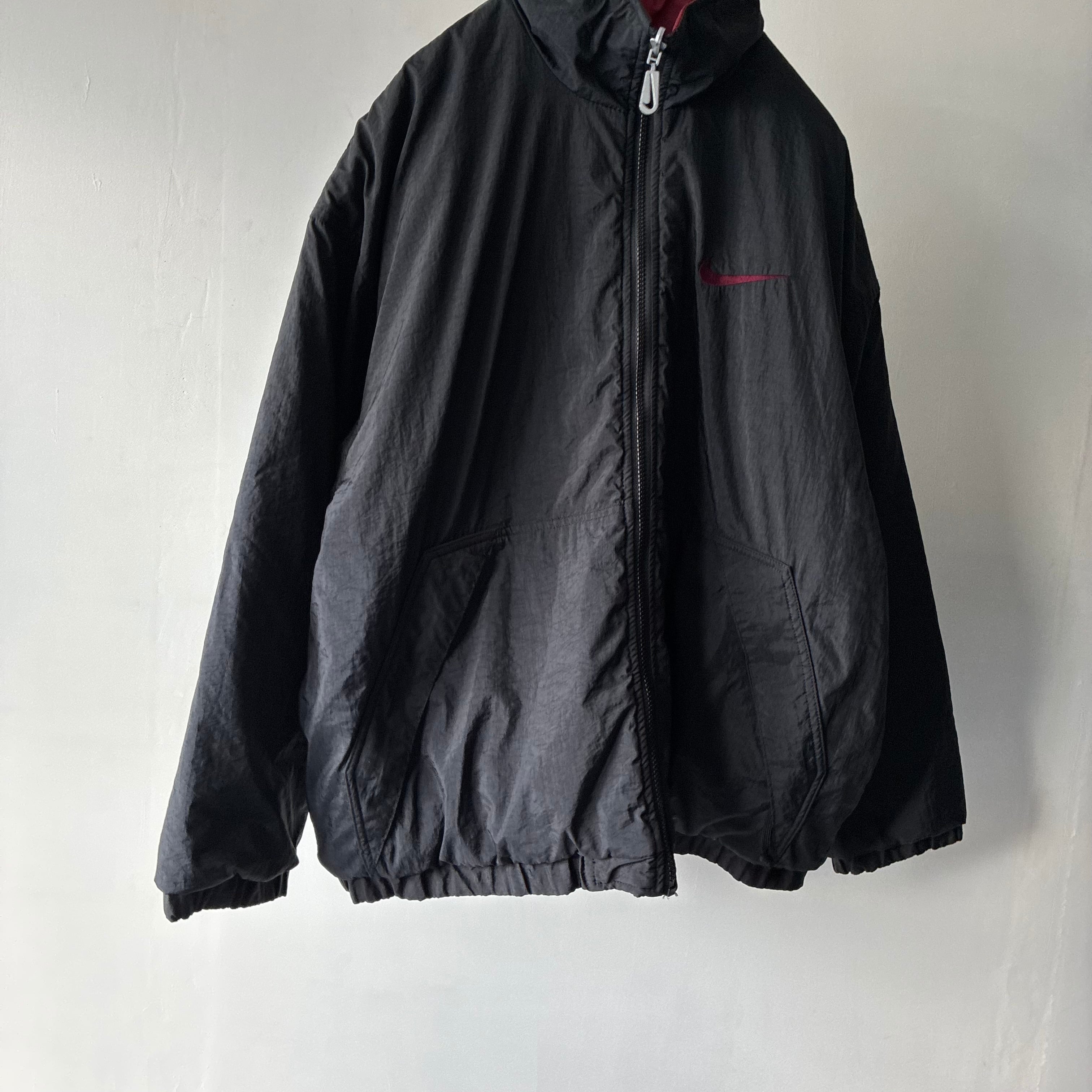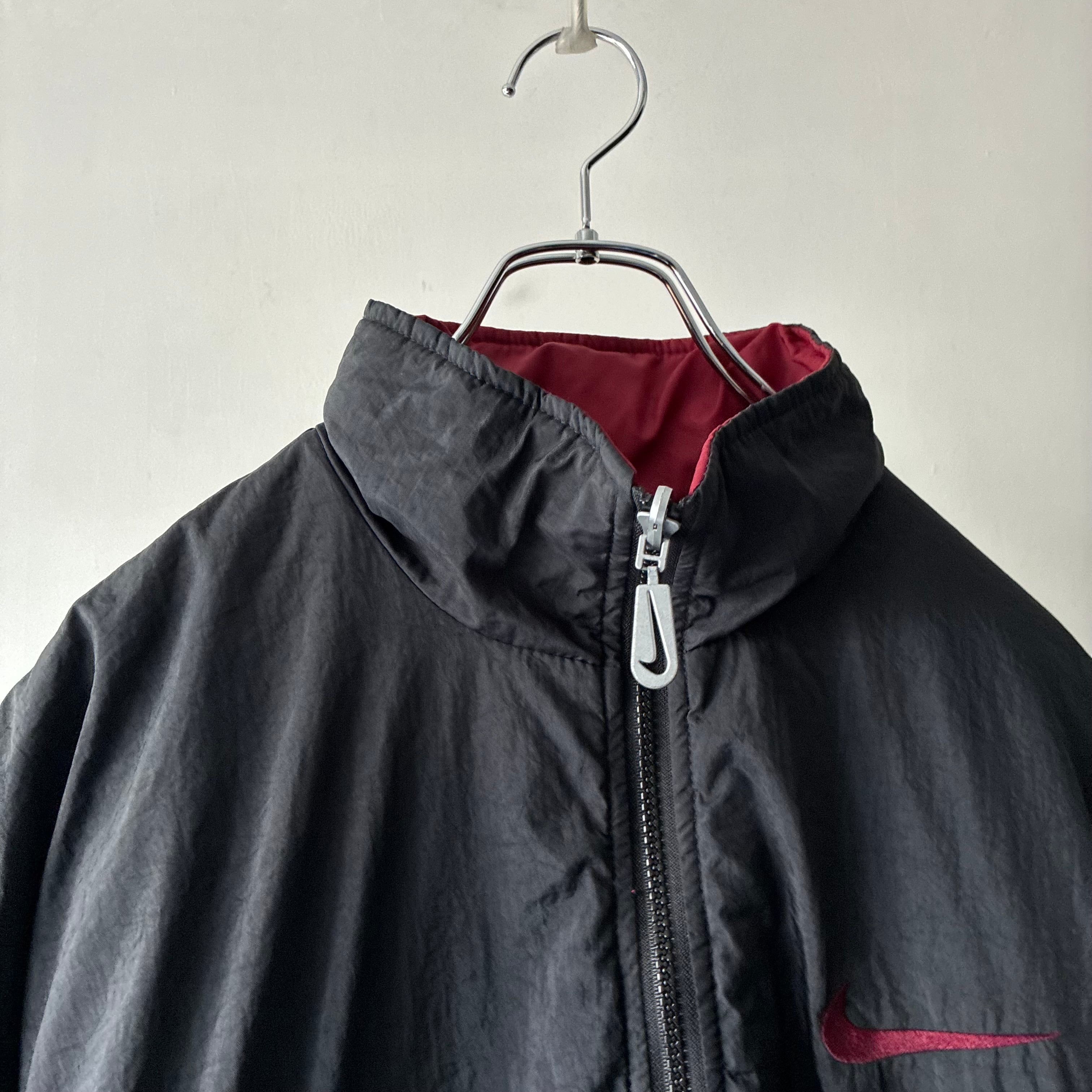 片面はシンプルなブラックボディにバーガンディのスウッシュロゴ刺繍、もう片面は深みのあるバーガンディにブラックスウッシュを配した両面で全く異なる印象を楽しめる一着