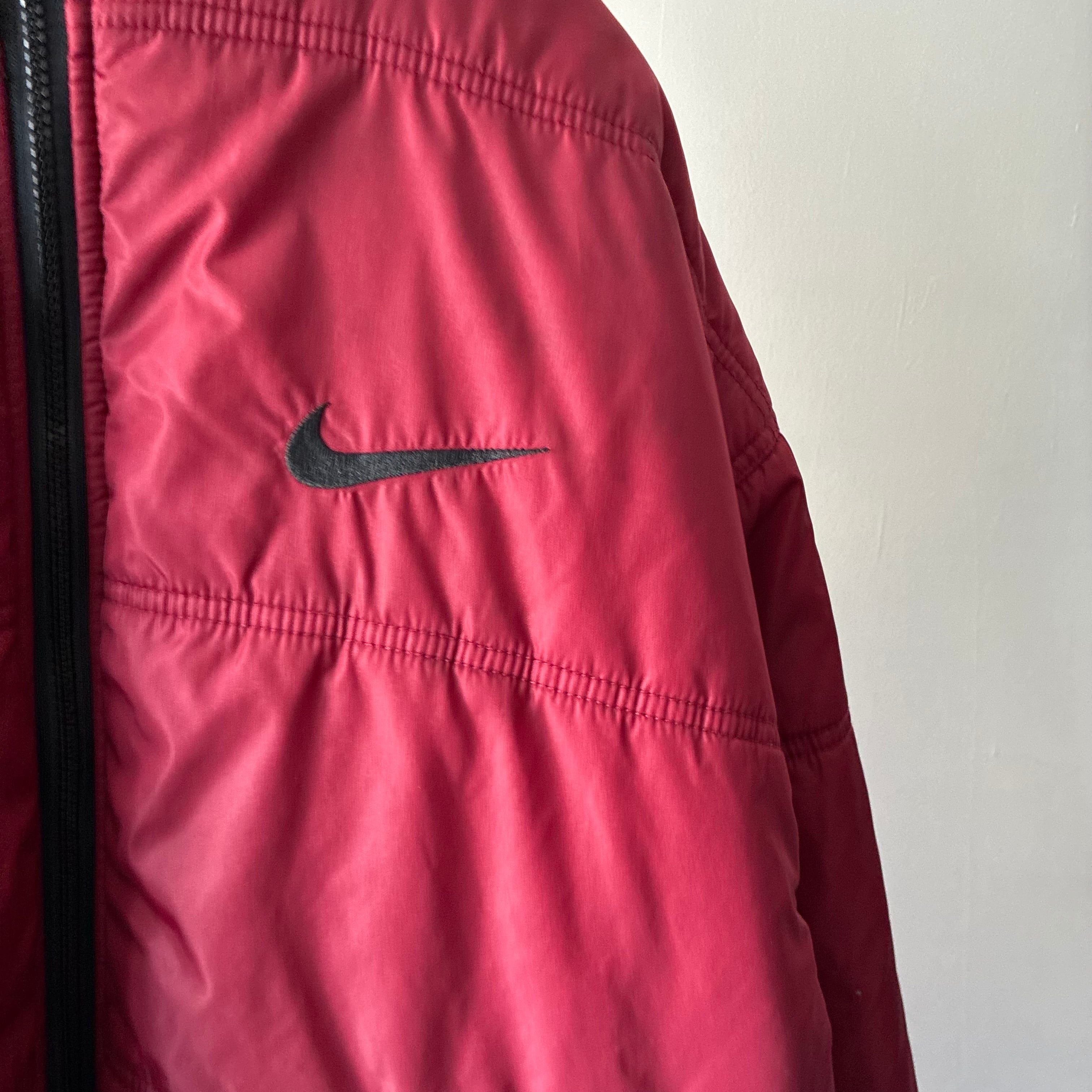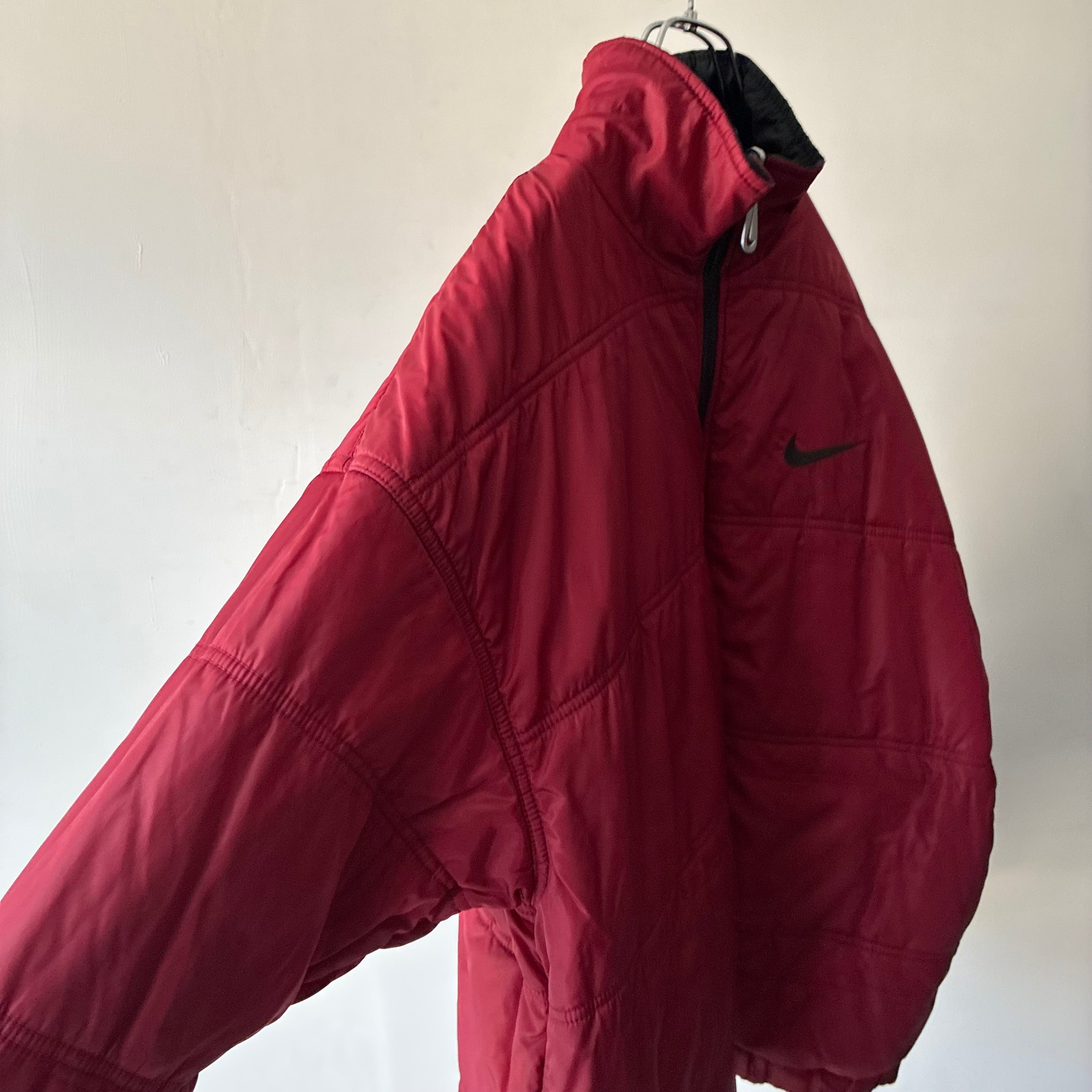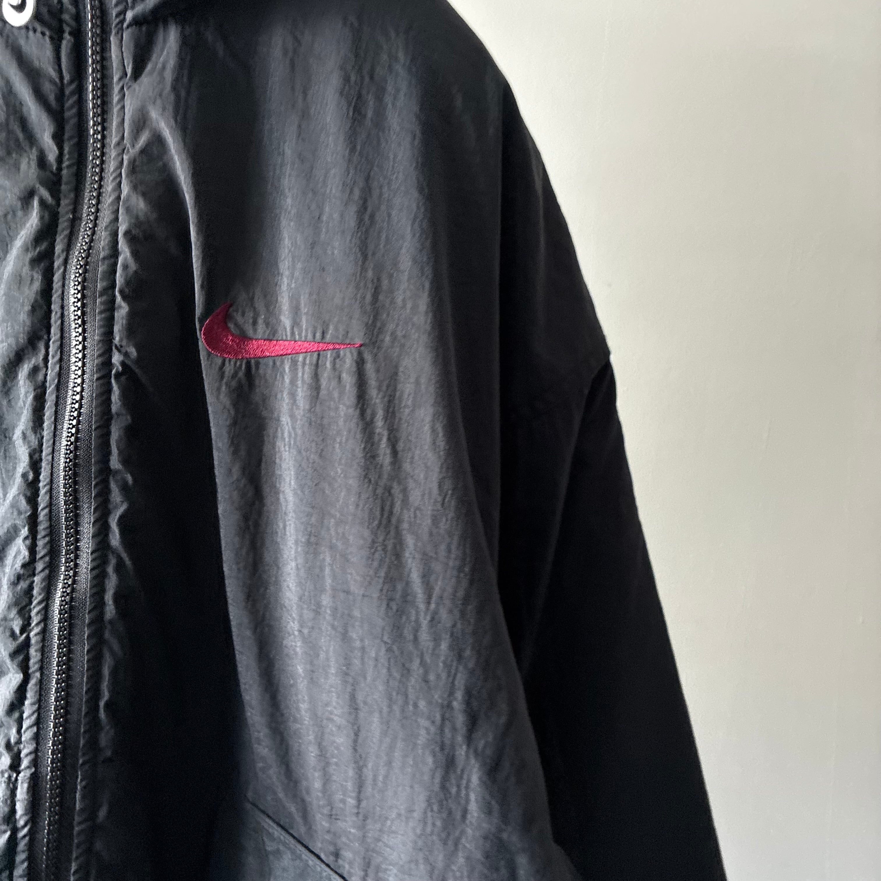 片面はシンプルなブラックボディにバーガンディのスウッシュロゴ刺繍、もう片面は深みのあるバーガンディにブラックスウッシュを配した両面で全く異なる印象を楽しめる一着