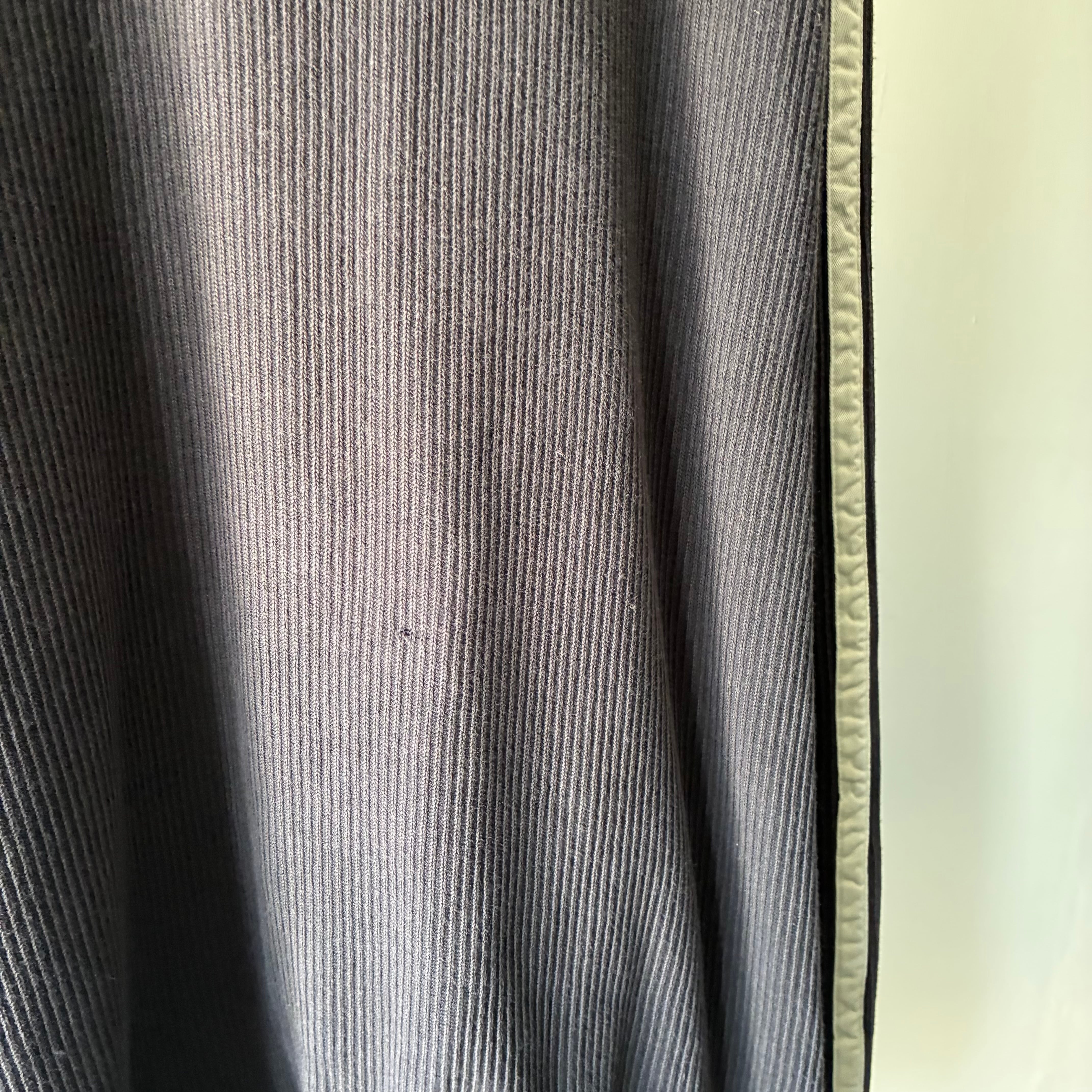 ややフェードがかったチャコールグレーのボディに、袖のホワイトラインが映えるデザイン