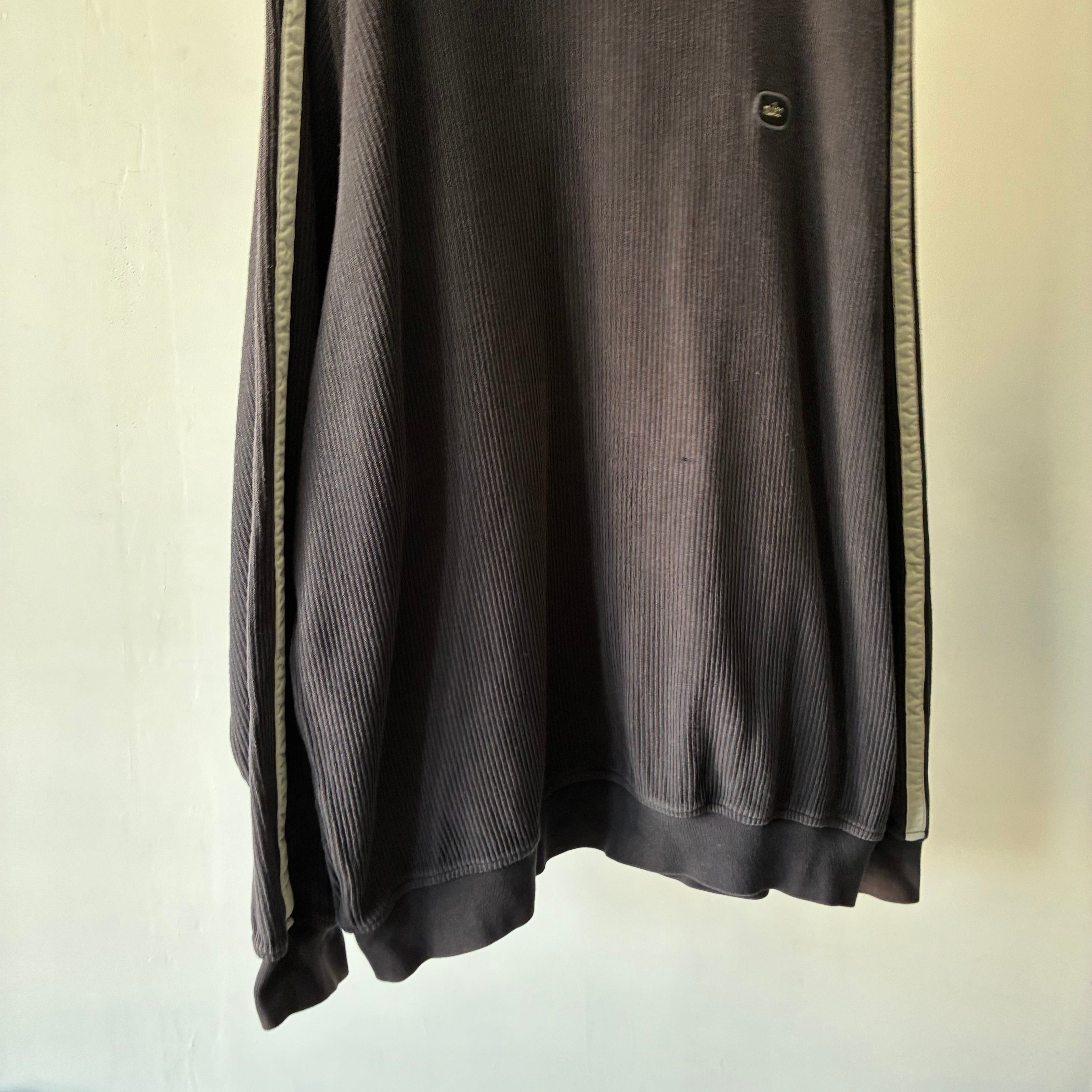 リブ編みのようなワッフル生地で、柔らかく着心地も抜群でラグランスリーブ仕様で肩の落ちたリラックスシルエットが魅力